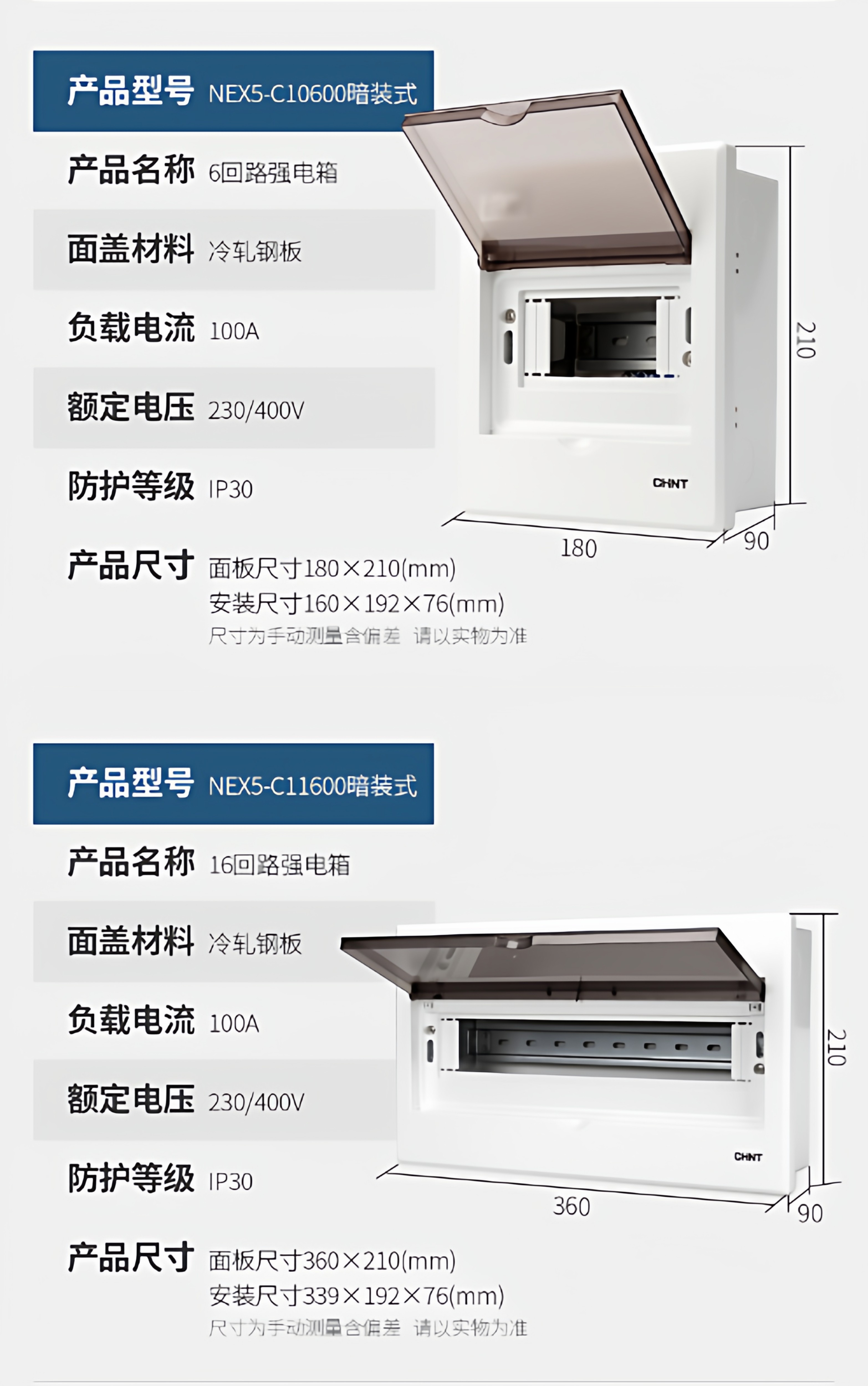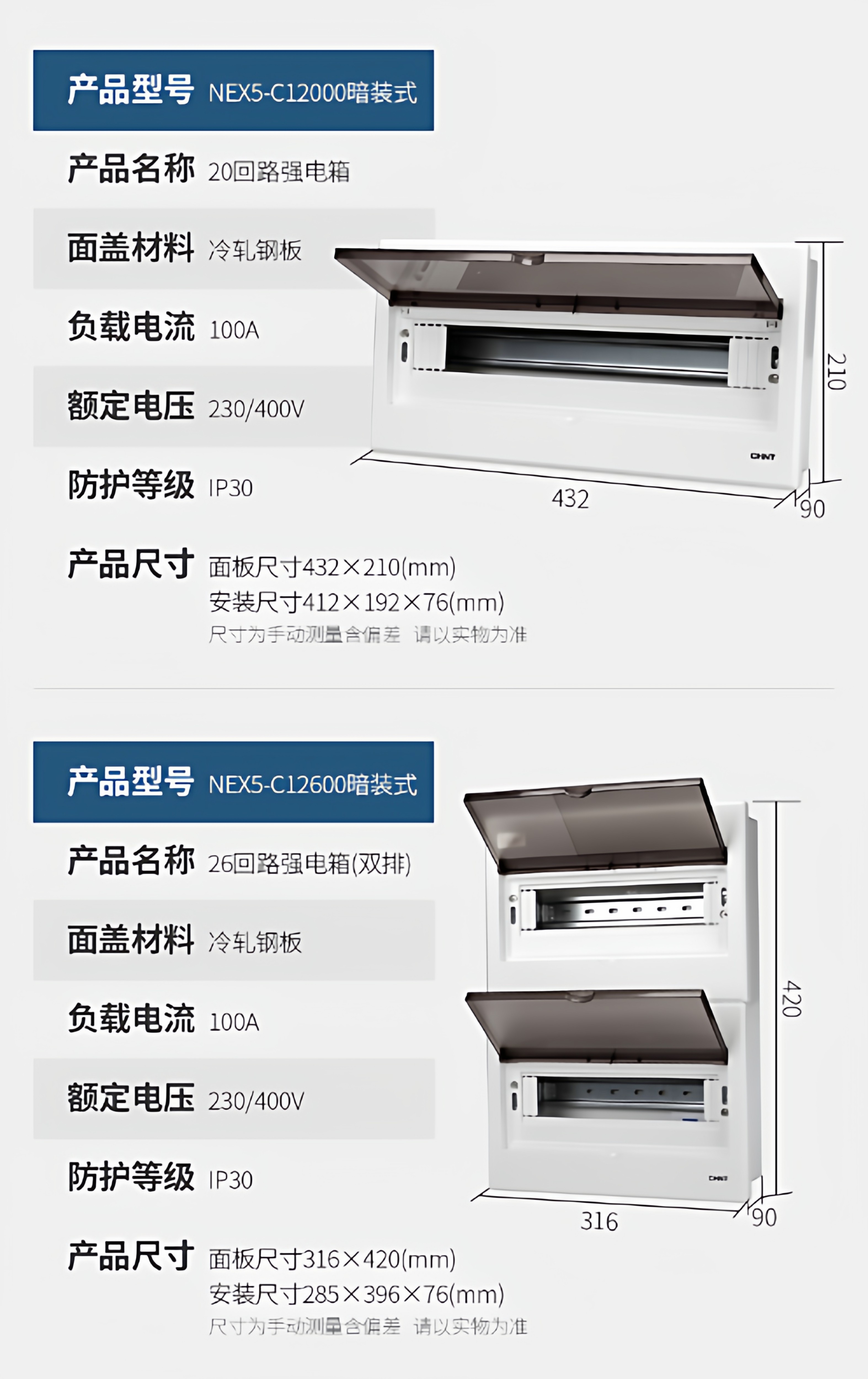 Chint Double-Row Double-Layer Household Circuit Breaker Distribution Box 26/32/40 Circuit Surface-Mounted or Concealed Installation Empty Box Pz Rural 220V