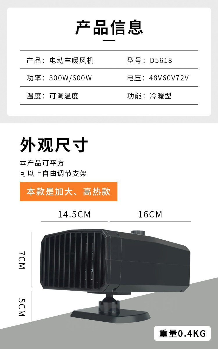 Electric Three-Wheel Heater, Four-Wheel Vehicle Heater, 48V60V70V New Energy Defrosting and Defogging Heater
