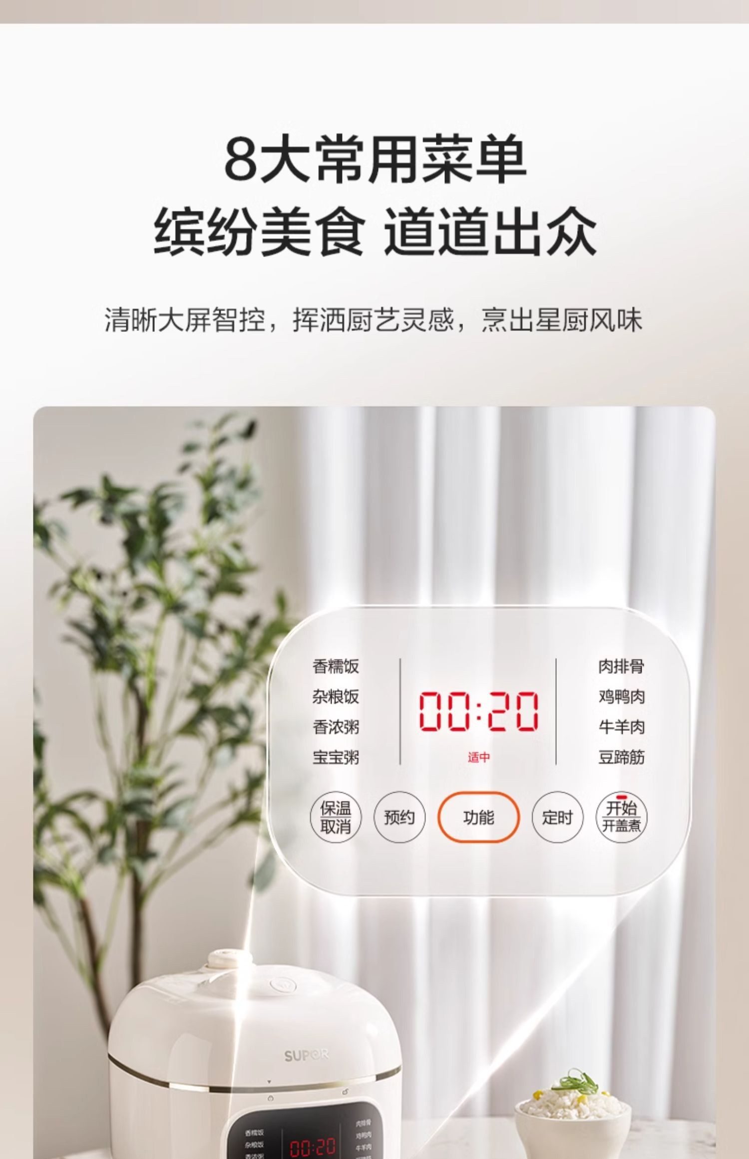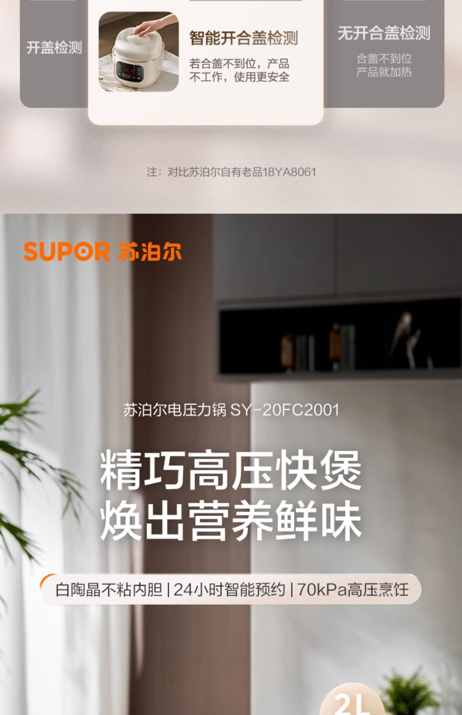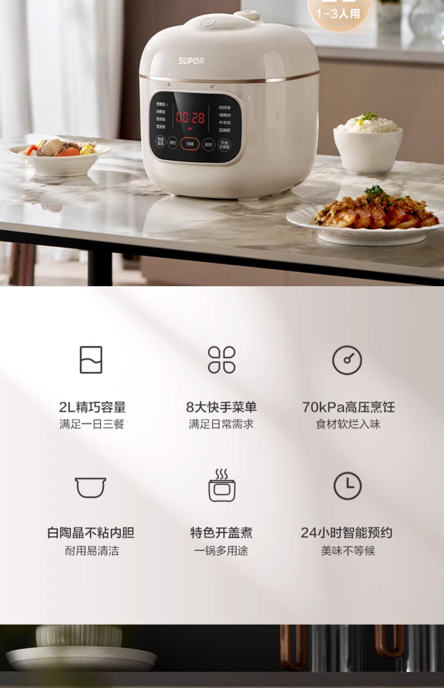 Supor 2024 New Model Household 2L Small Electric Pressure Cooker Fully Automatic Intelligent Mini Multi-Functional High-Pressure Rice Cooker