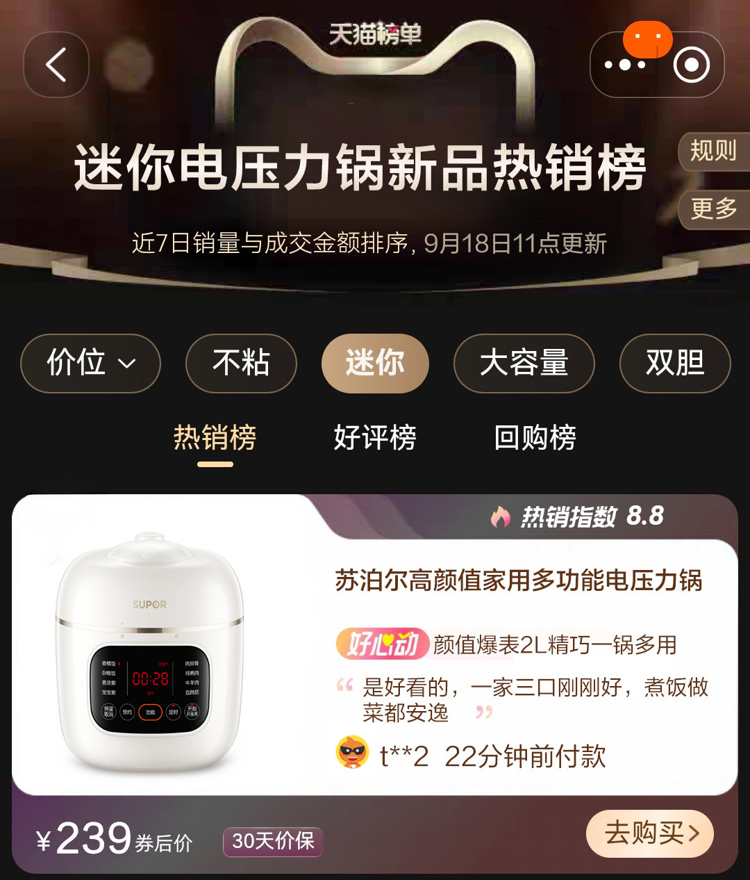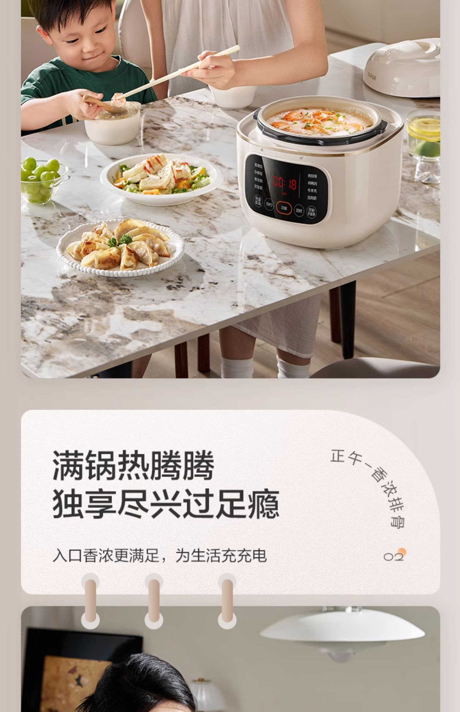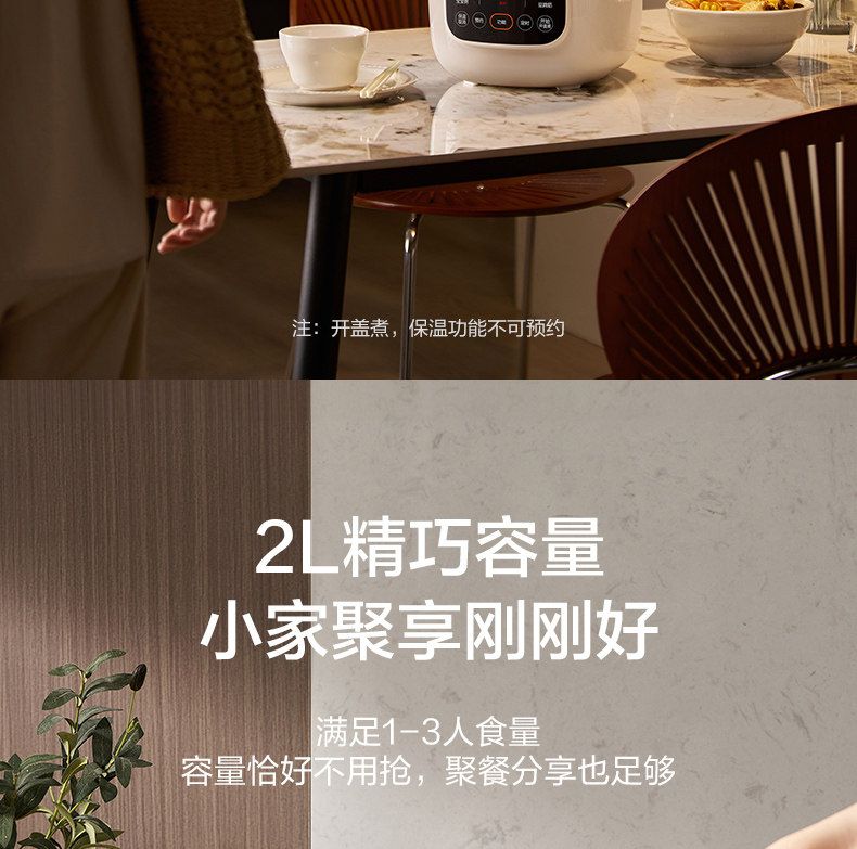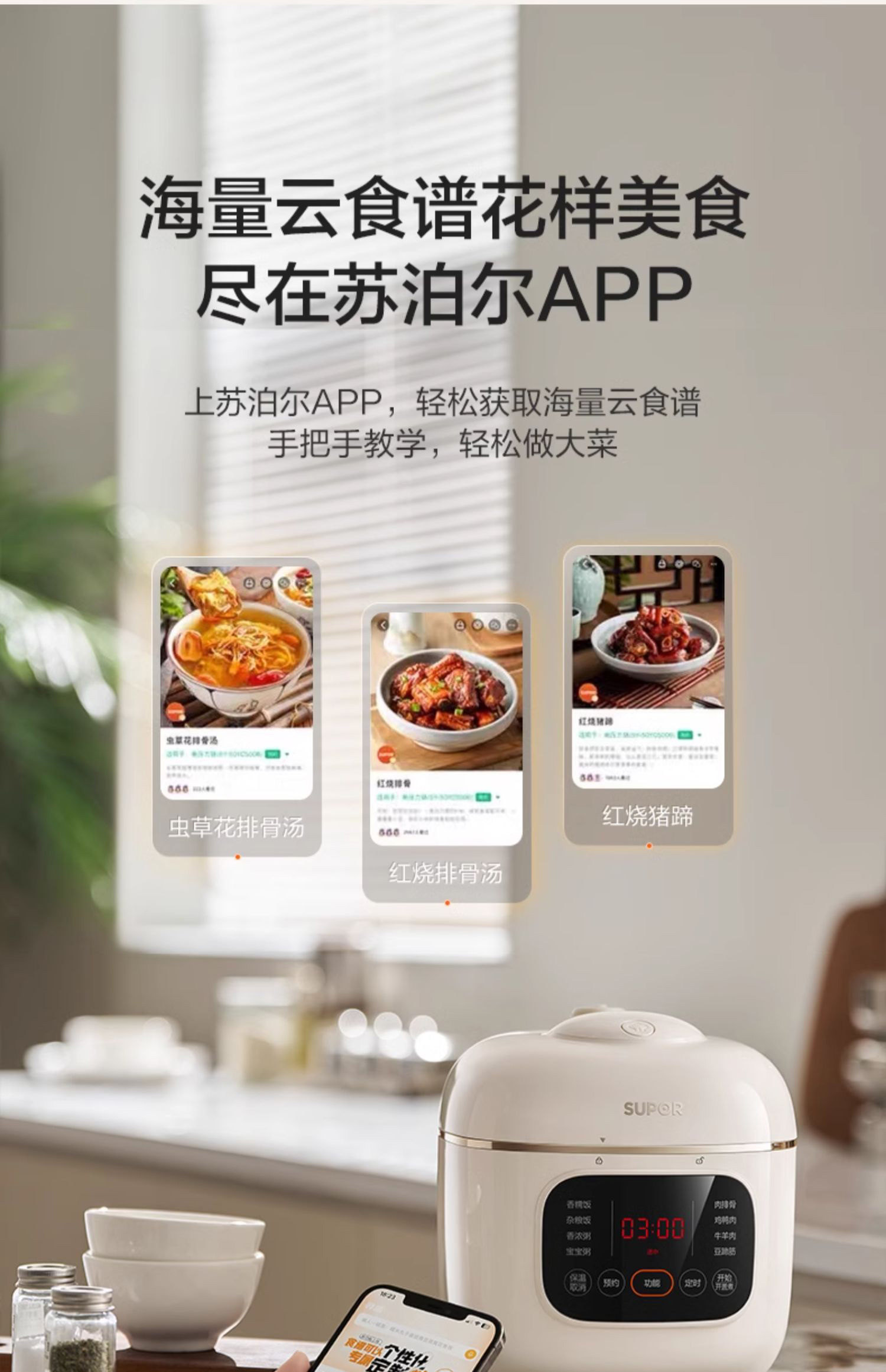 Supor 2024 New Model Household 2L Small Electric Pressure Cooker Fully Automatic Intelligent Mini Multi-Functional High-Pressure Rice Cooker