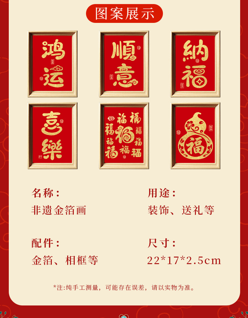 | Color Classification | Text Version-Peace and Joy-Gold Foil Painting Material Package,Text Version - Wealth and Blessing - Gold Foil Painting Material Package,Text Version-Shunyi Kang'An-Gold Foil Painting Material Package,Text Version-Lucky Gold Foil Painting Material Pack,Text Version-Fulu Gourd-Gold Foil Painting Material Package,Text Version-Baifu Pictures-Gold Foil Painting Material Pack,Color Illustrated Kit - Auspicious Horse Welcomes the Spring - Gold Foil Painting Material Pack,Colorful Version - Good Luck in the Year of the Horse - Gold Foil Painting Material Package,Colorful Version - Immediately Blessed - Gold Foil Painting Material Package,Color Picture Version-Happy New Year-Gold Foil Painting Material Package,Colorful Version - Abundance Every Year - Gold Foil Painting Material Package,Color Picture Version-Shi Shi Ruyi-Gold Foil Painting Material Package,Collection,Add to Cart,Excellent,First,Send,Goods |
