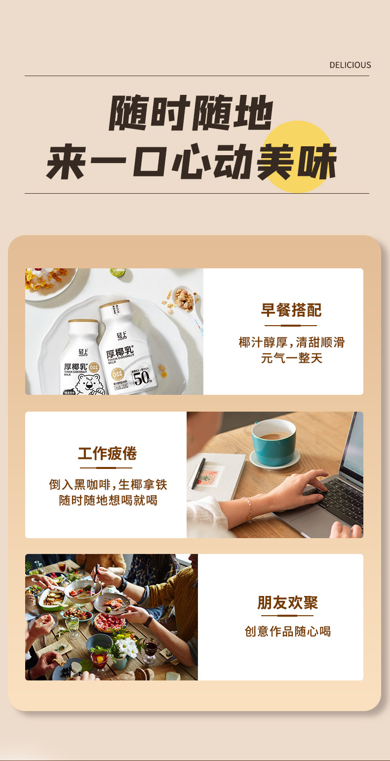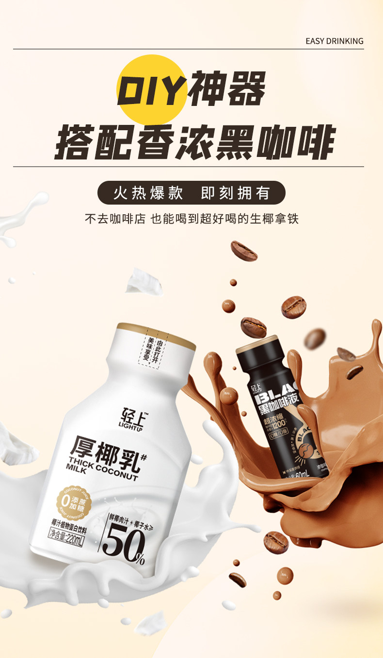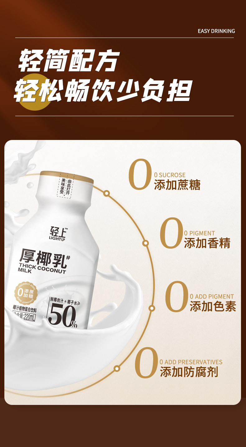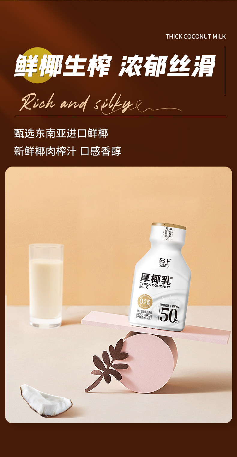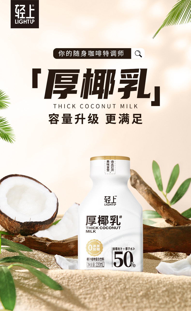 Light Coconut Milk 220ml, Coconut Cream, Raw Coconut Latte, Coconut Milk Coffee Special Ingredient, Home DIY Beverage, Portable Pack