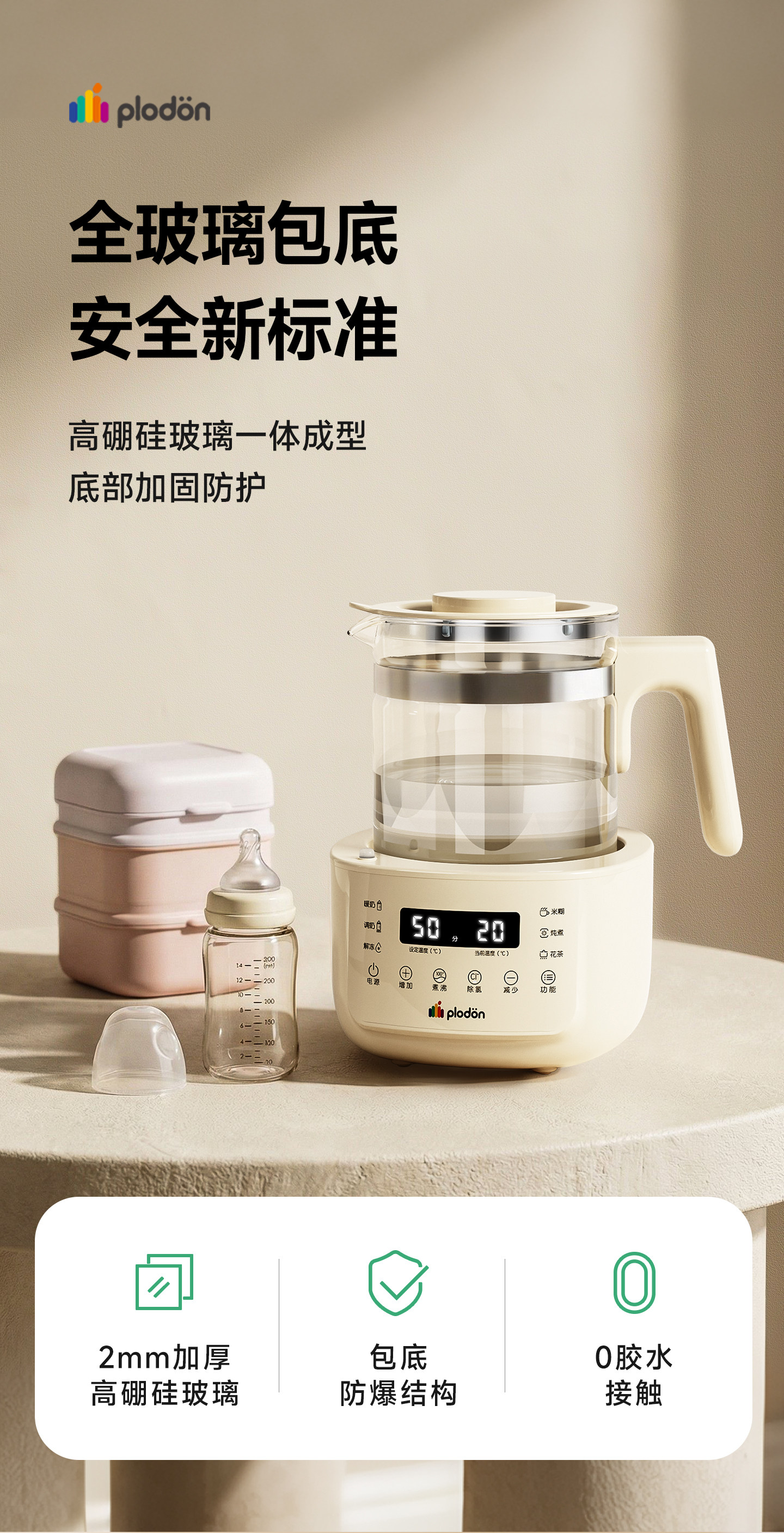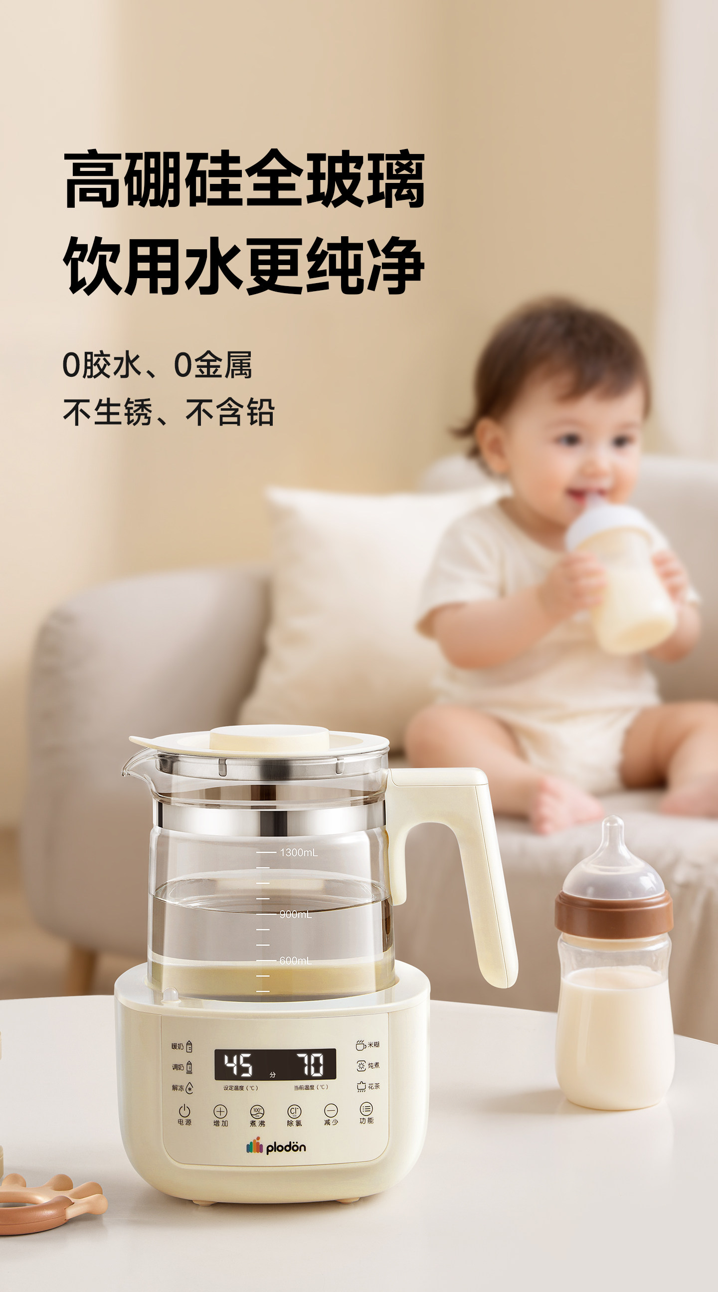 Plodon Anti-Crack All-Glass Milk Mixer 0 Glue Baby-Specific Milk Maker Home Constant Temperature Electric Kettle