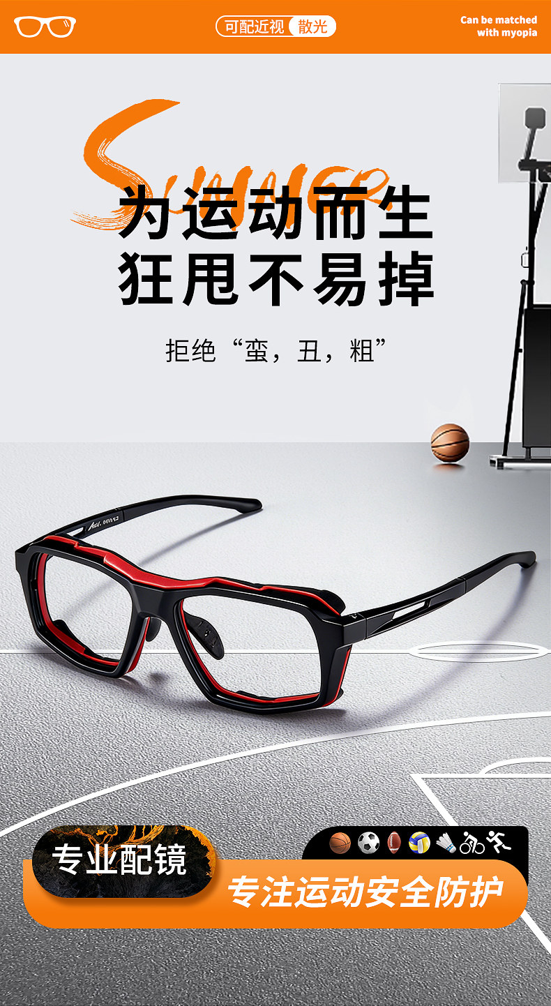 Ultra-Light Professional Sports Myopia Glasses Frame for Men, Basketball Goggles, Football-Specific Anti-Collision and Anti-Fog Frame for Women