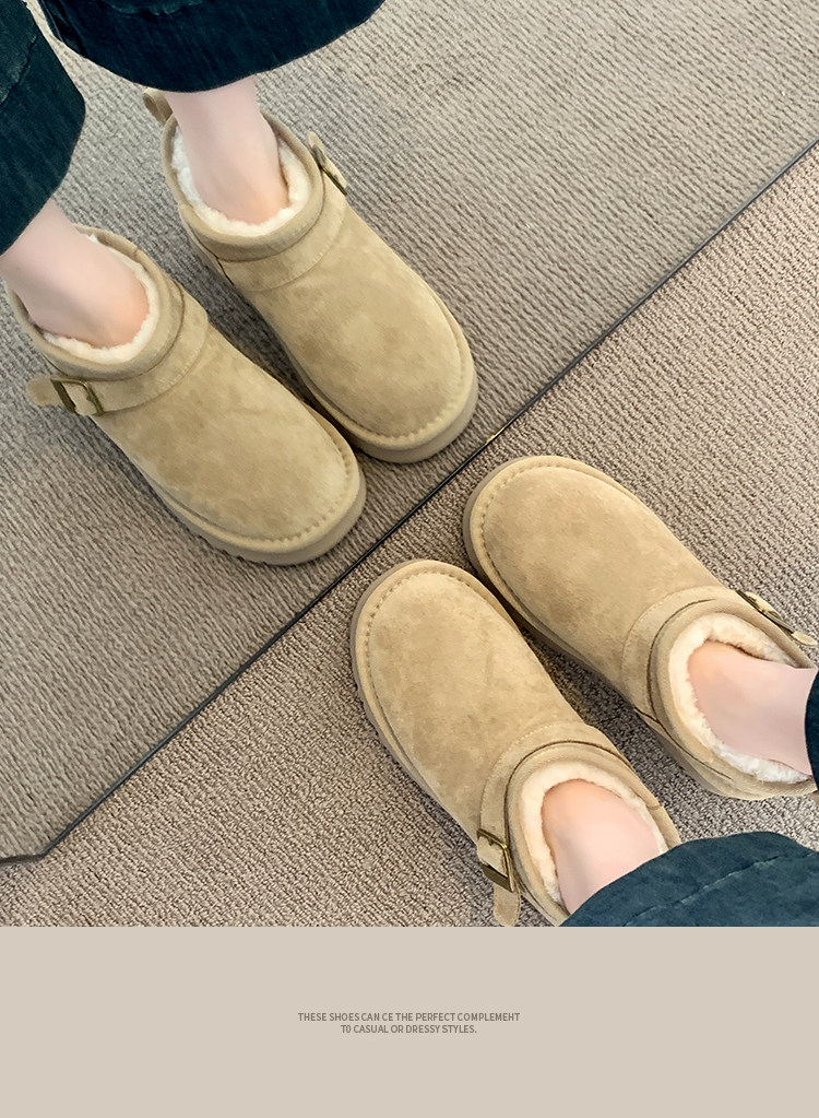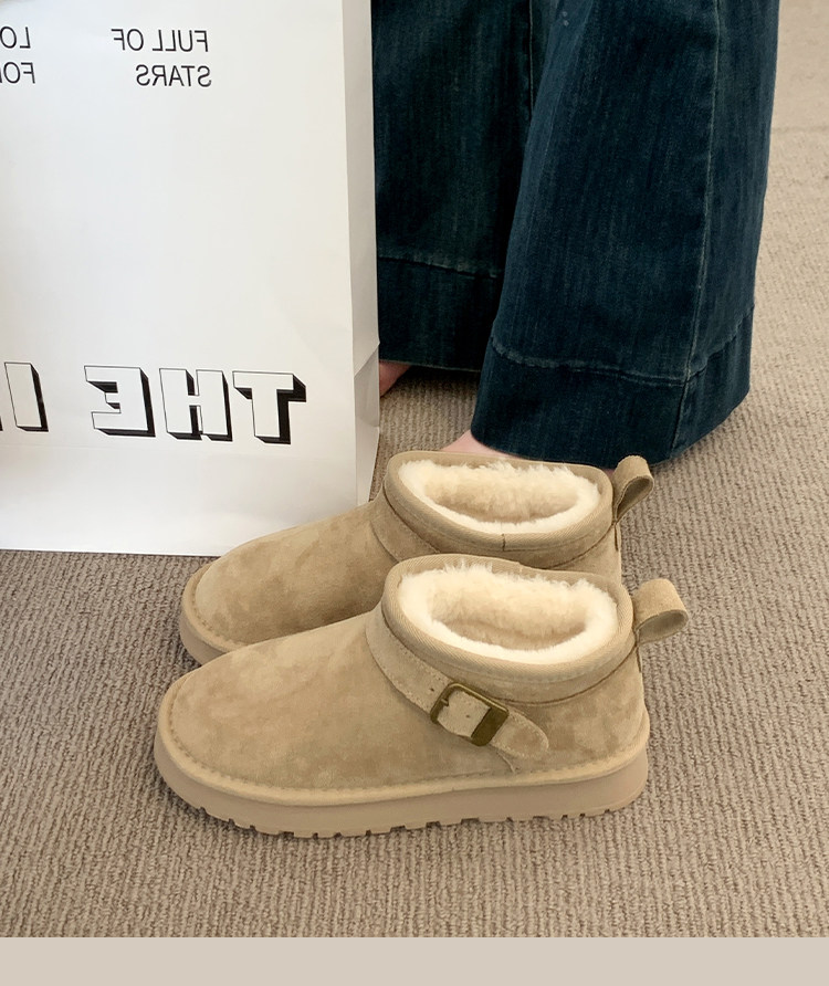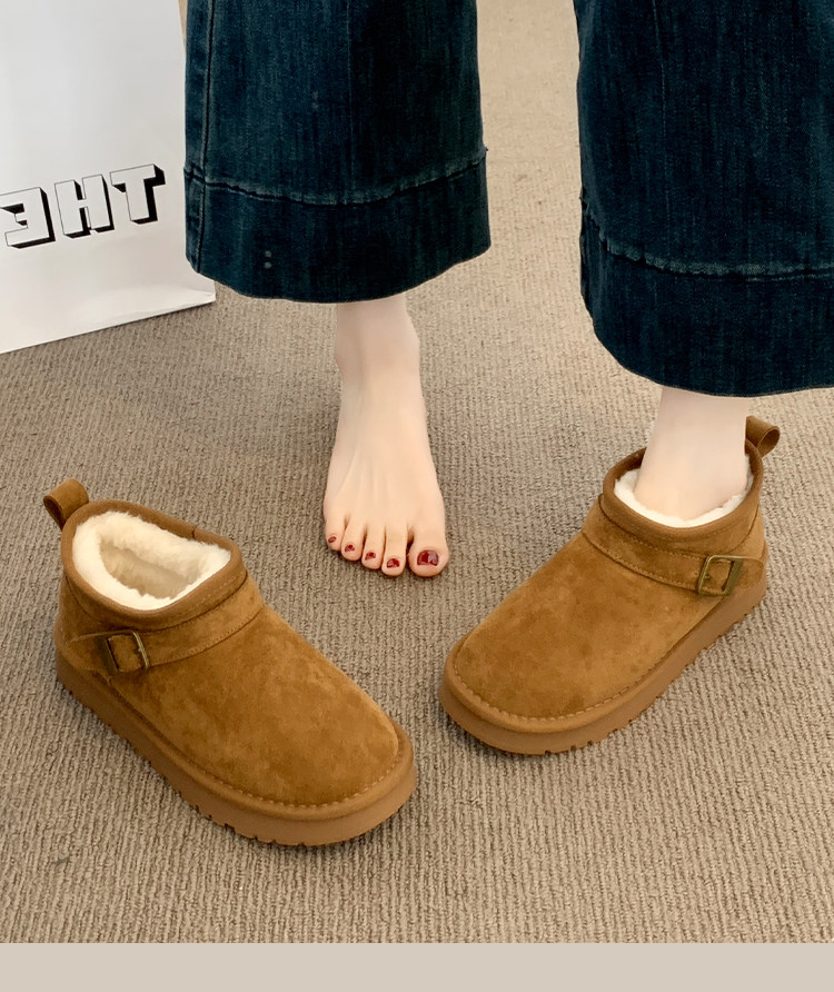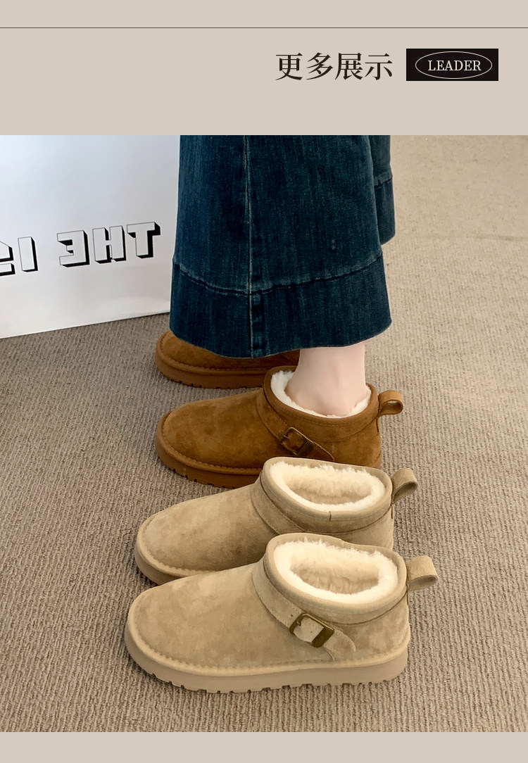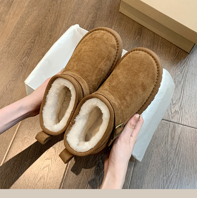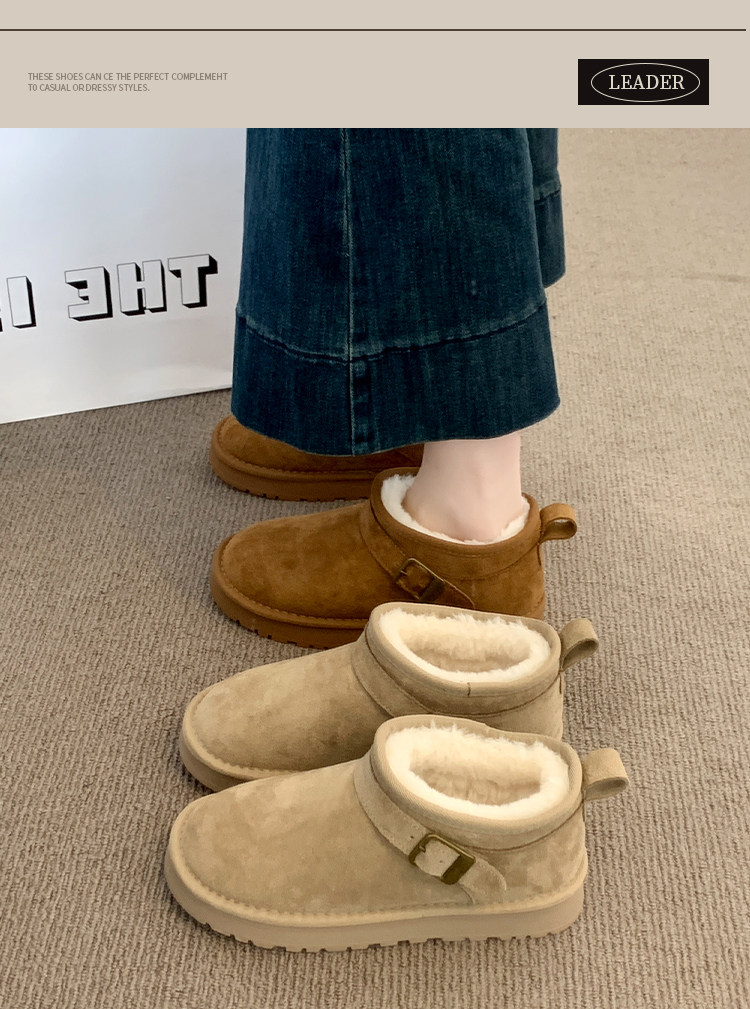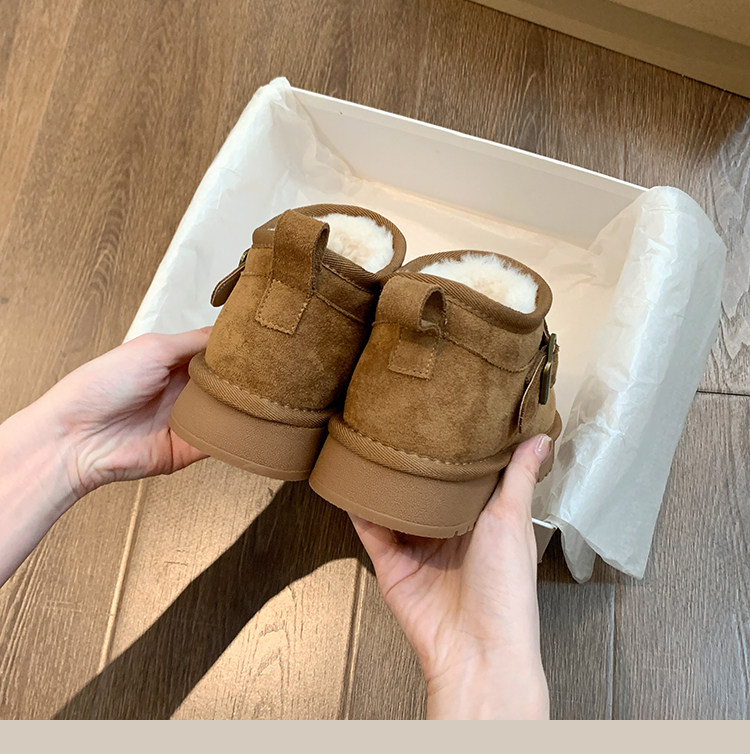 Thick-Soled Birkenstock-Style Leather and Fur Integrated Snow Boots for Women, Winter 2025 New Model, Fleece-Lined Cotton Boots, Large Cotton Shoes for Northeast, Size 34