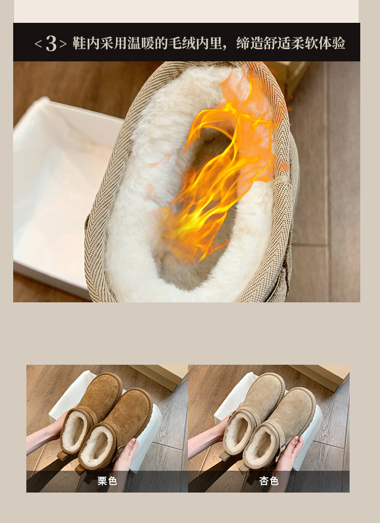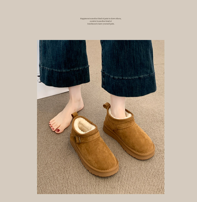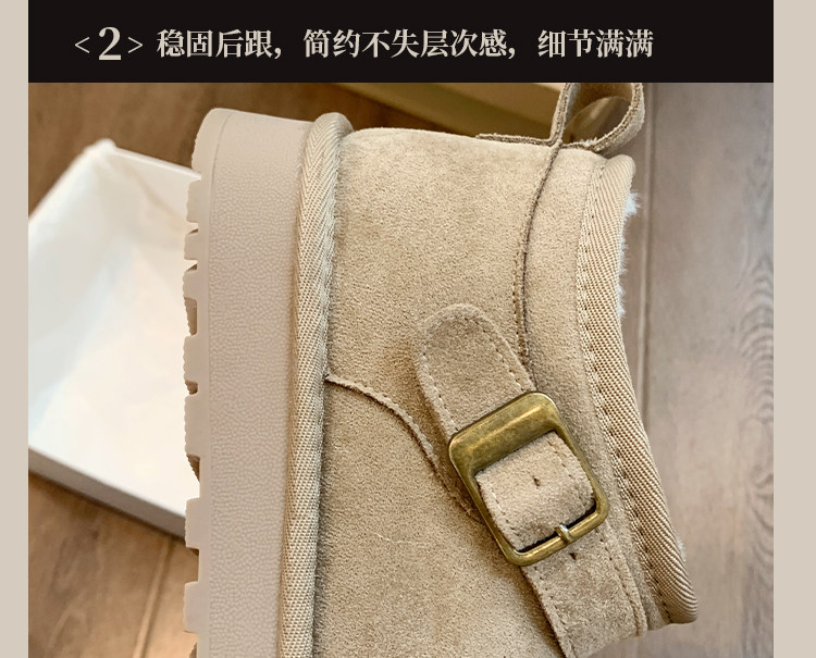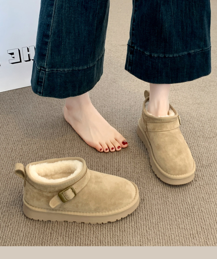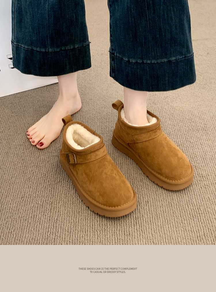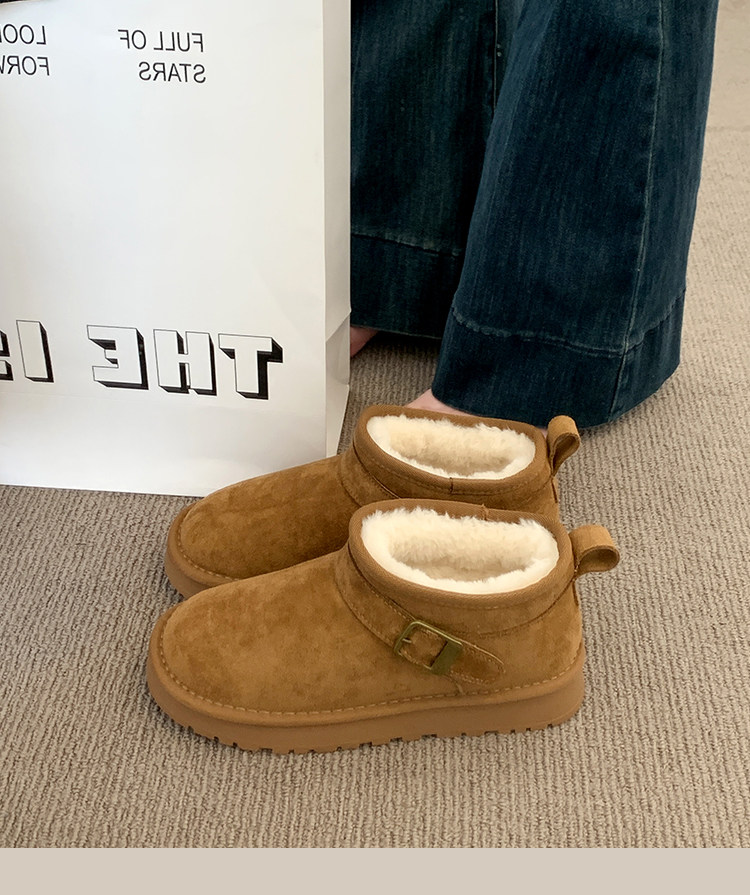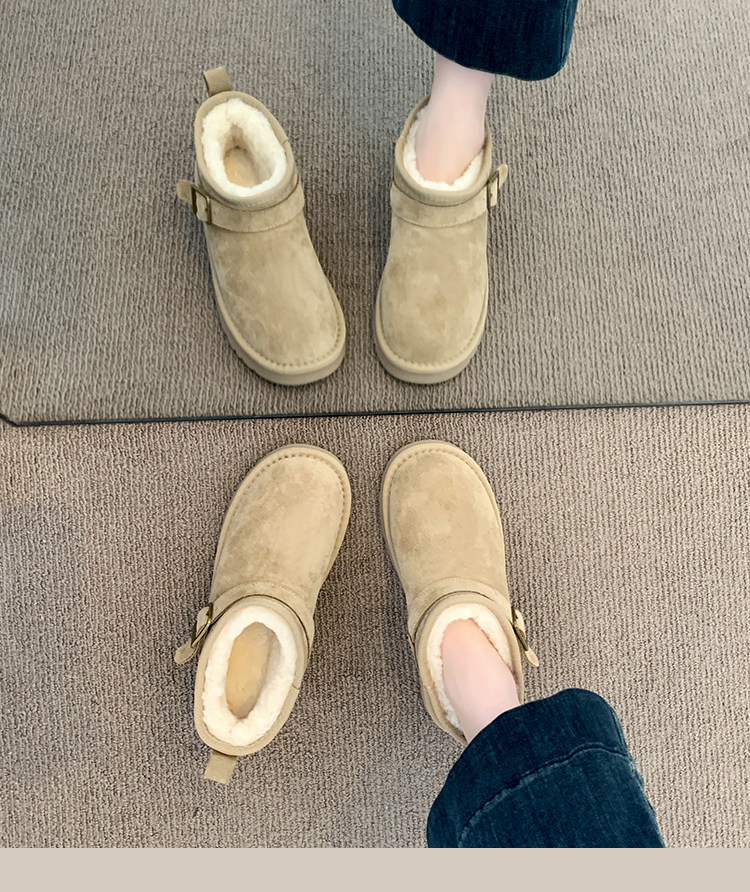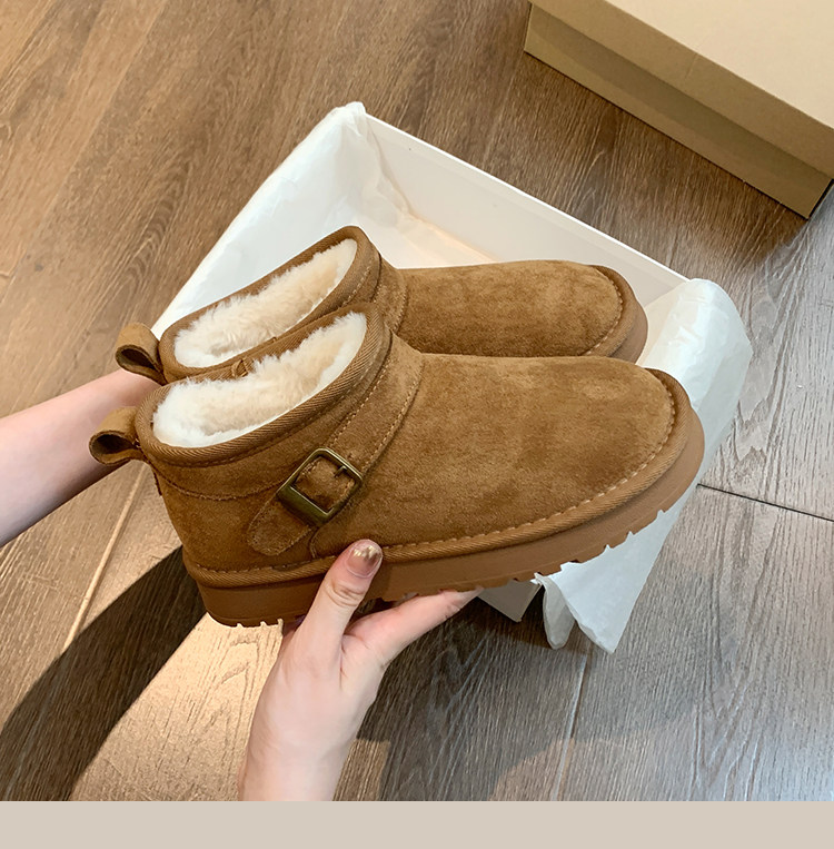 Thick-Soled Birkenstock-Style Leather and Fur Integrated Snow Boots for Women, Winter 2025 New Model, Fleece-Lined Cotton Boots, Large Cotton Shoes for Northeast, Size 34