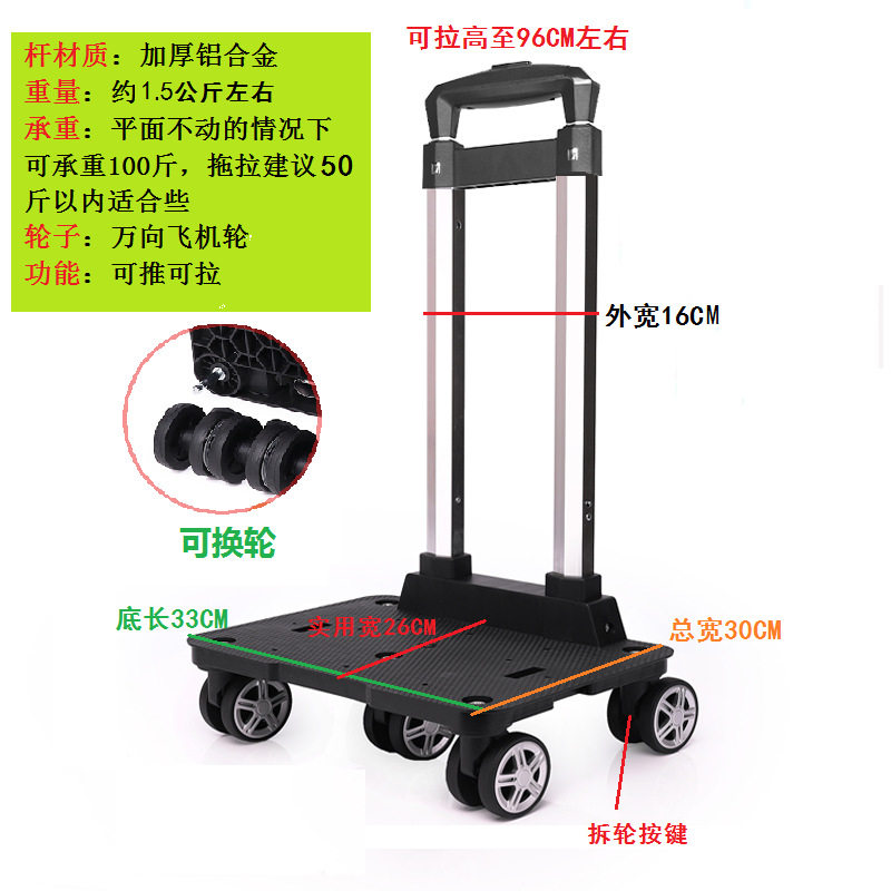 Luggage Accessories: Detachable Universal Wheels, Aluminum Alloy Folding Trolley Handle, Suitcase, Backpack, School Bag Trolley