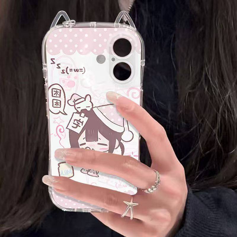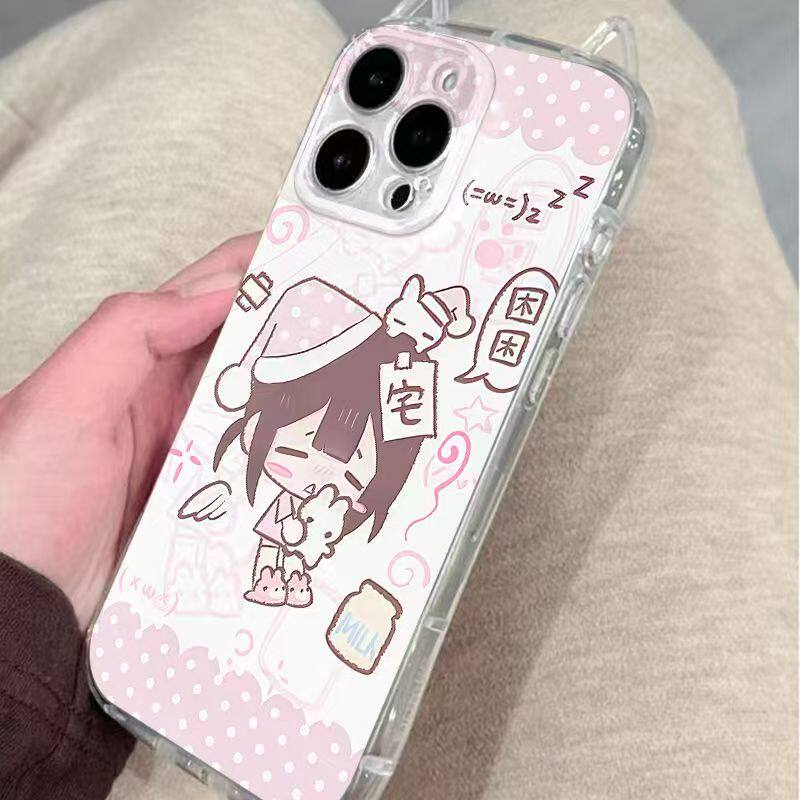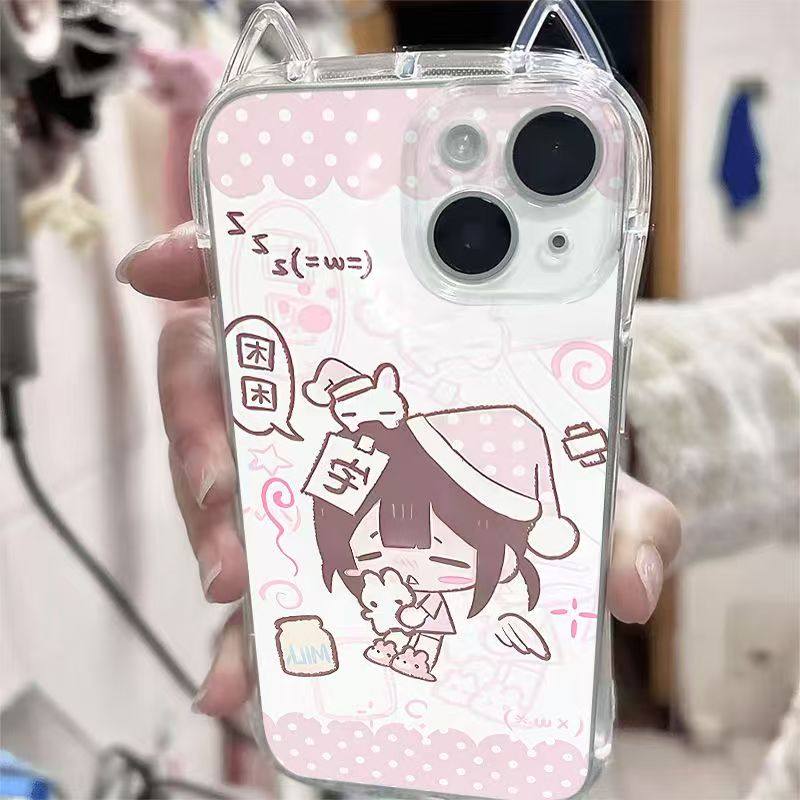 Pink Sleepy Girl Ins Cartoon Cat Ears Phone Case Suitable for Iphone17 Apple 16Promax Iphone15 Cute 14/13X Case Xsxr Female Model Promax Full Coverage Niche 12