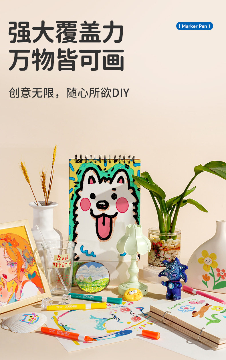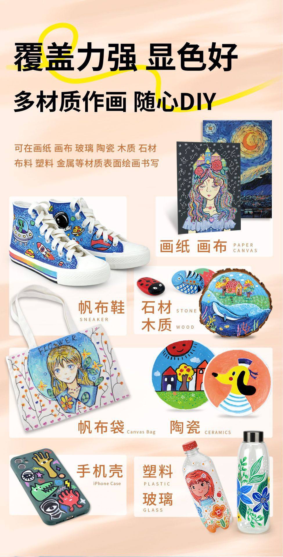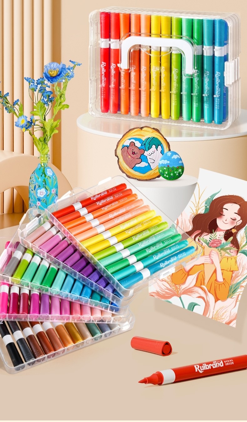 Direct Liquid Acrylic Marker Pen with Soft Tip, 12 Colors for Kindergarten, 24 Colors for Elementary School Students, Graffiti Art Pens, Washable, Lead-Free, Non-Toxic, Specially Designed for Children, Can Be Layered and Does Not Bleed through