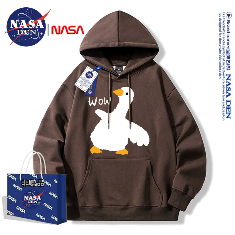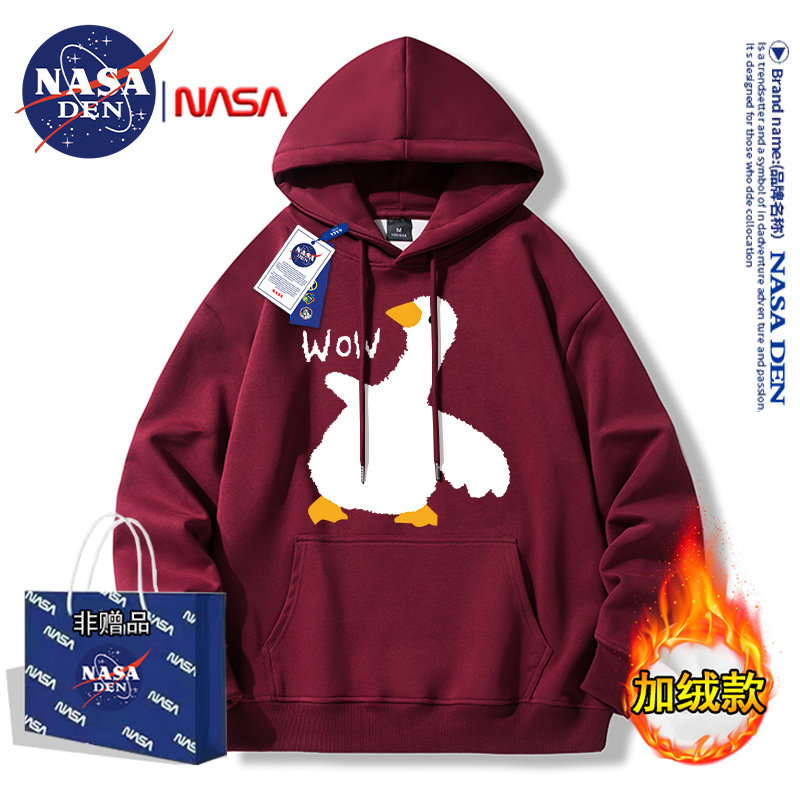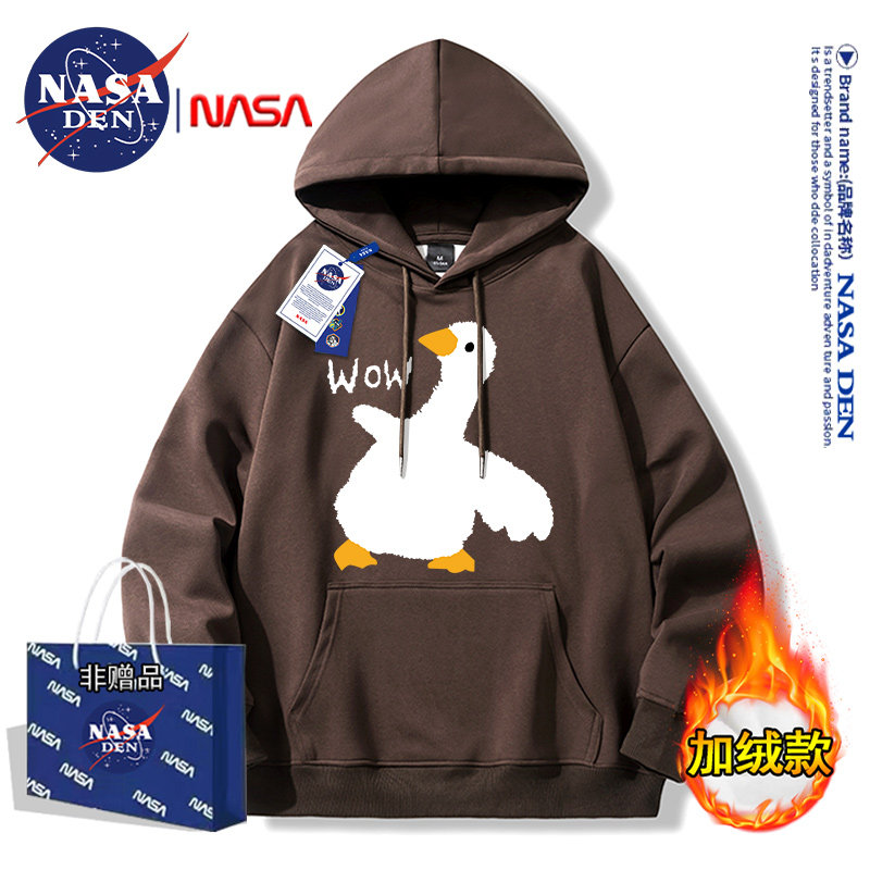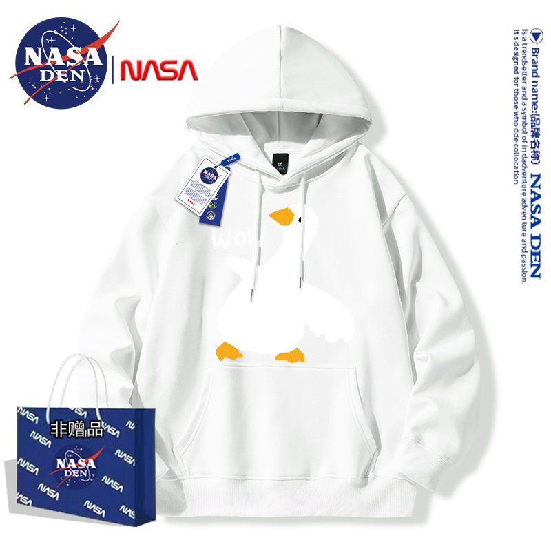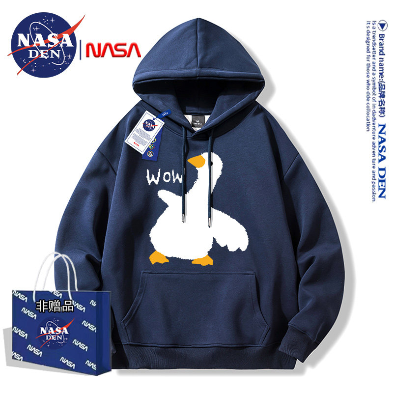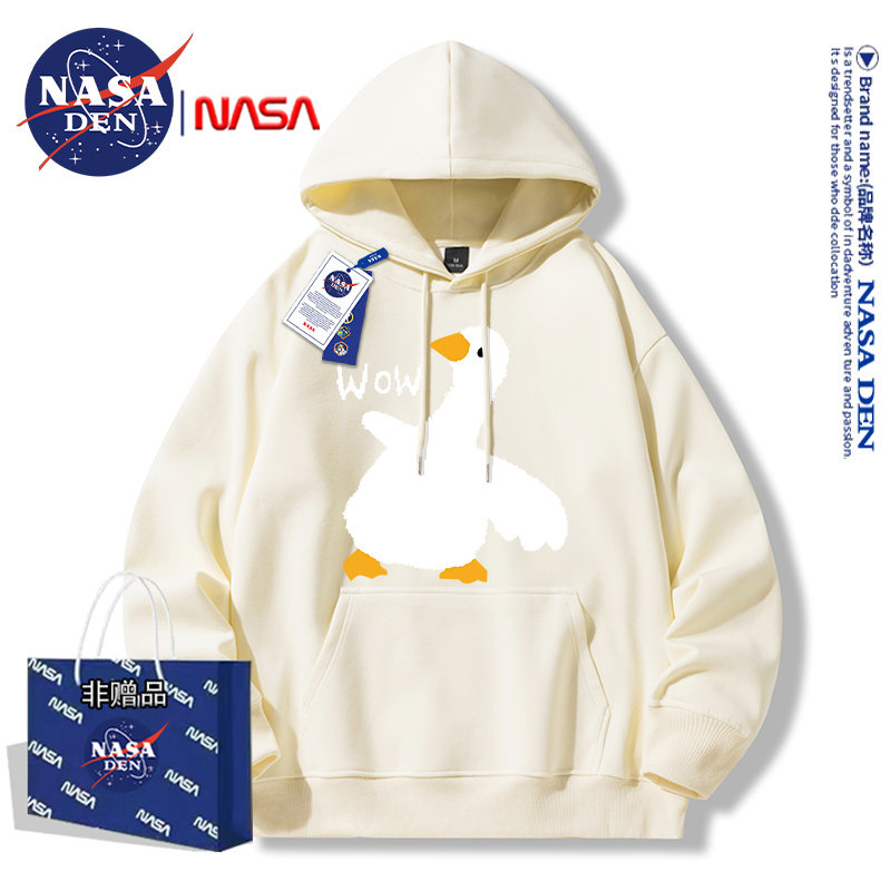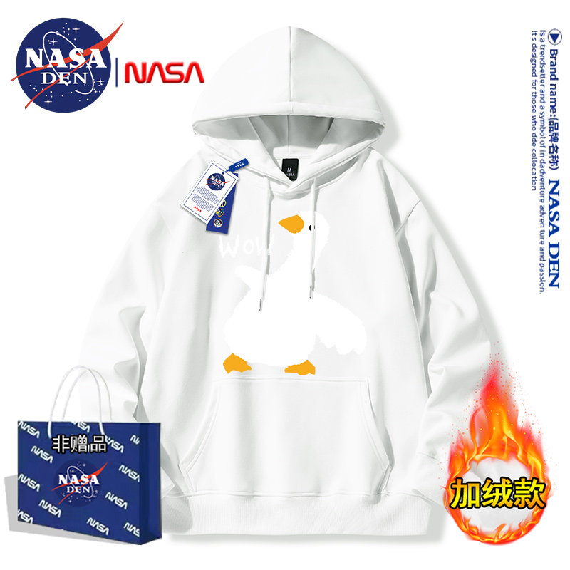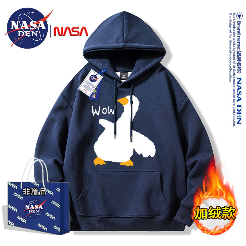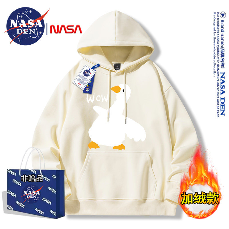Nasa Collaboration Japanese-Style Simple Heavyweight Fleece-Lined Long-Sleeve Sweatshirt for Men and Women, Fashionable Casual Versatile Hooded Top