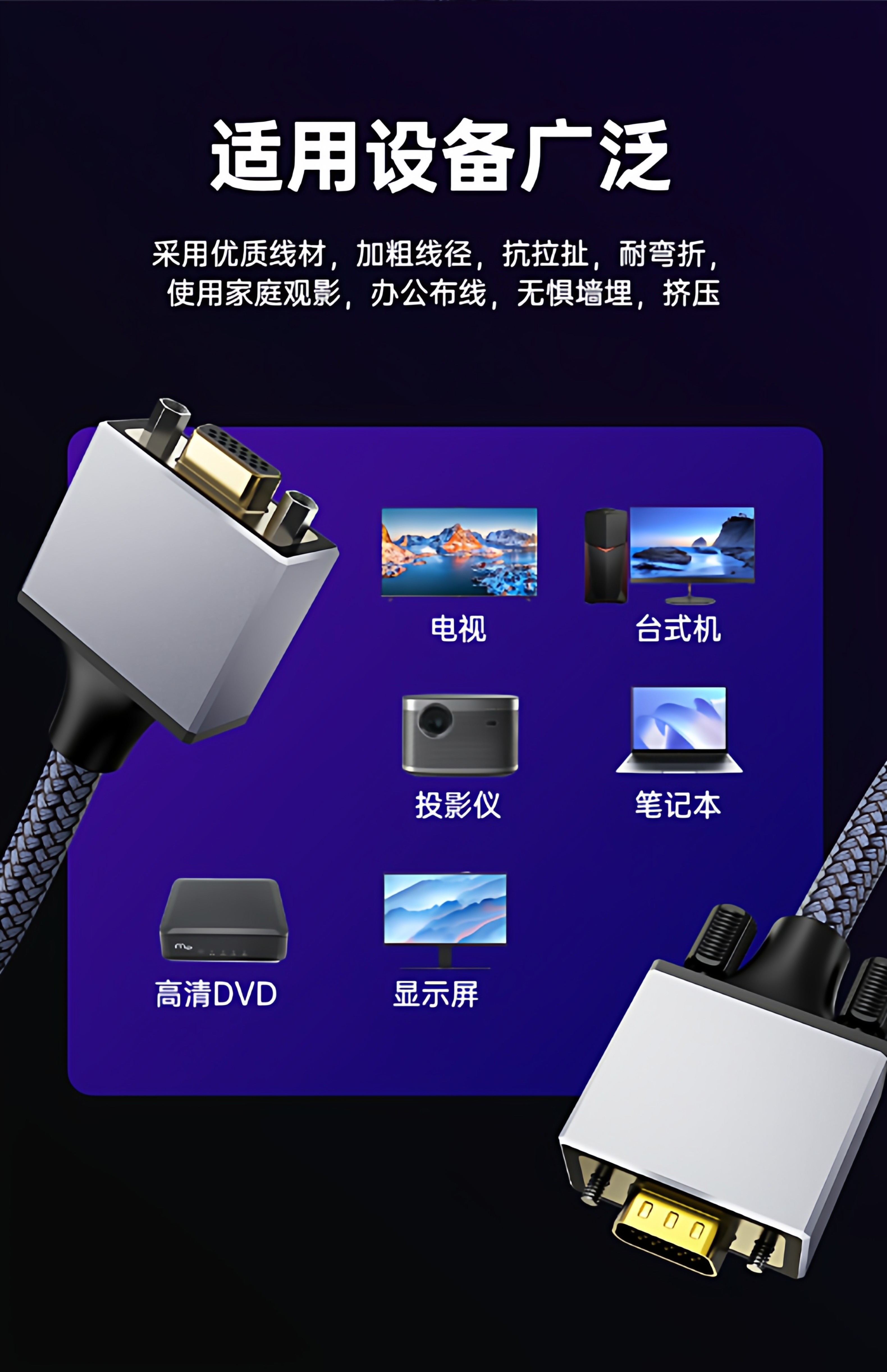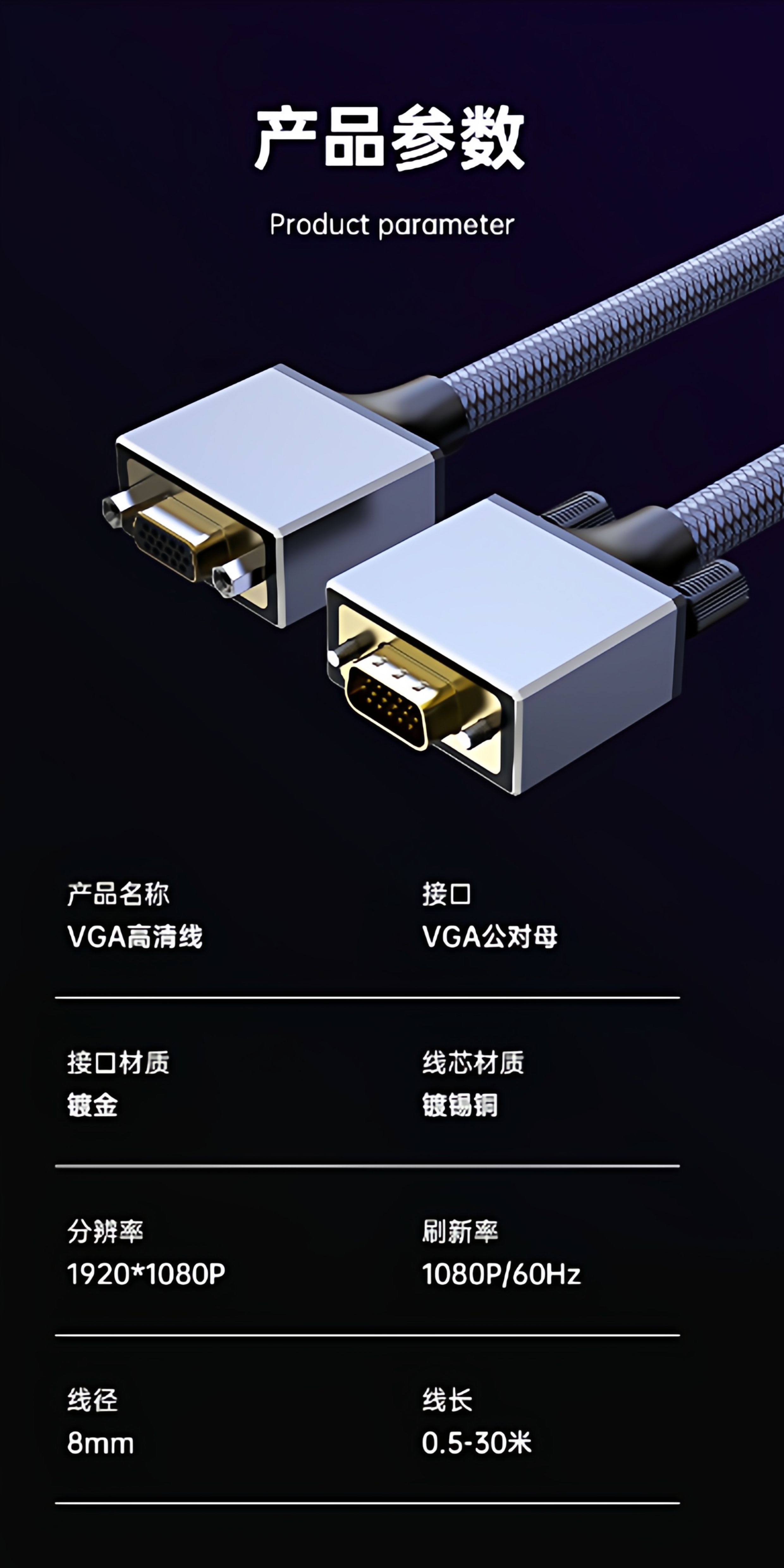 | Color Classification | Silver Gray Vga Male to Female High Definition Video Cable |