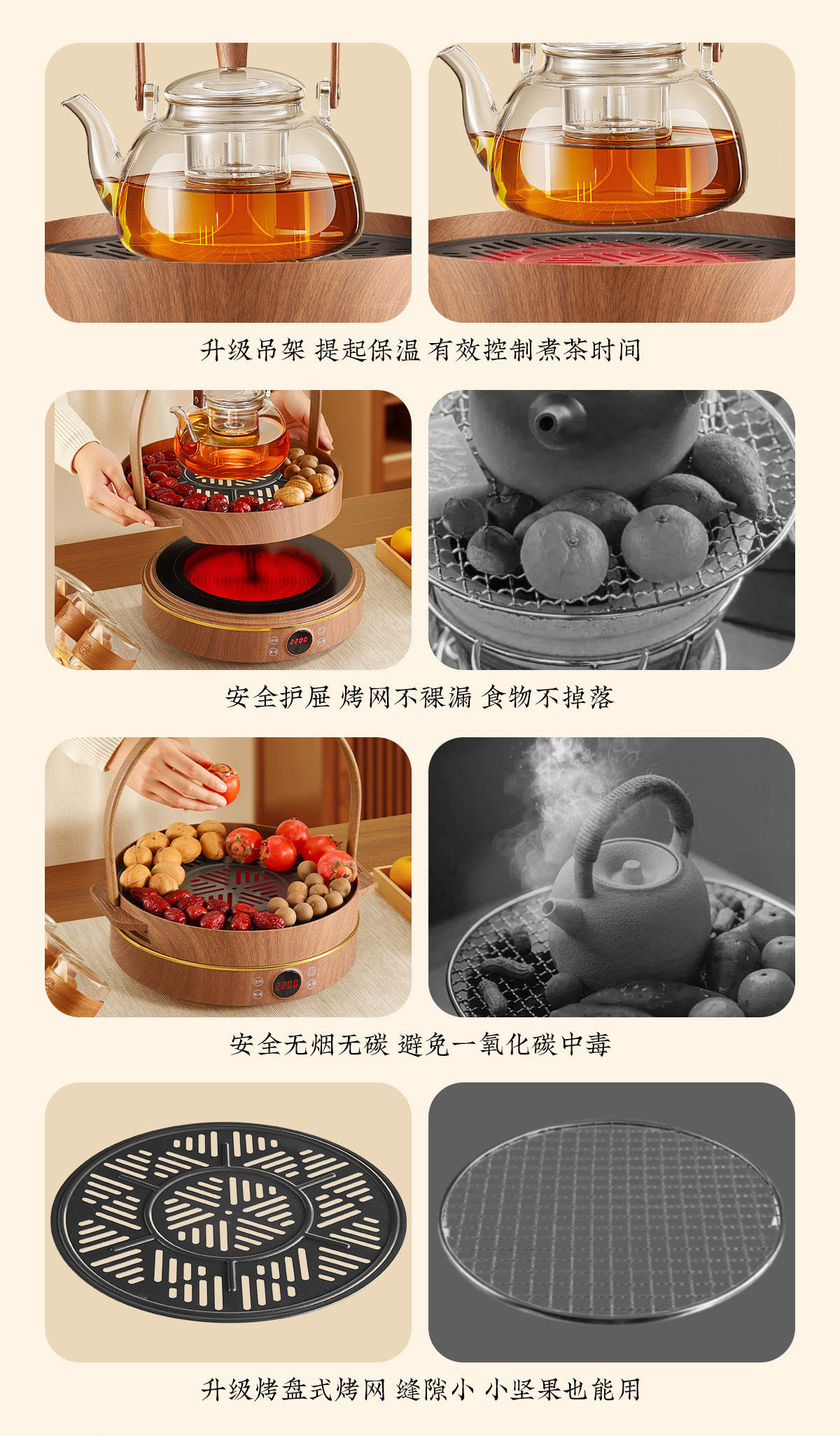 Baoxuan Tea-Making and Fire-Roasting Stove Set, Electric Ceramic Stove 2025 New Model, Household Indoor Hanging Rack for Mulled Wine
