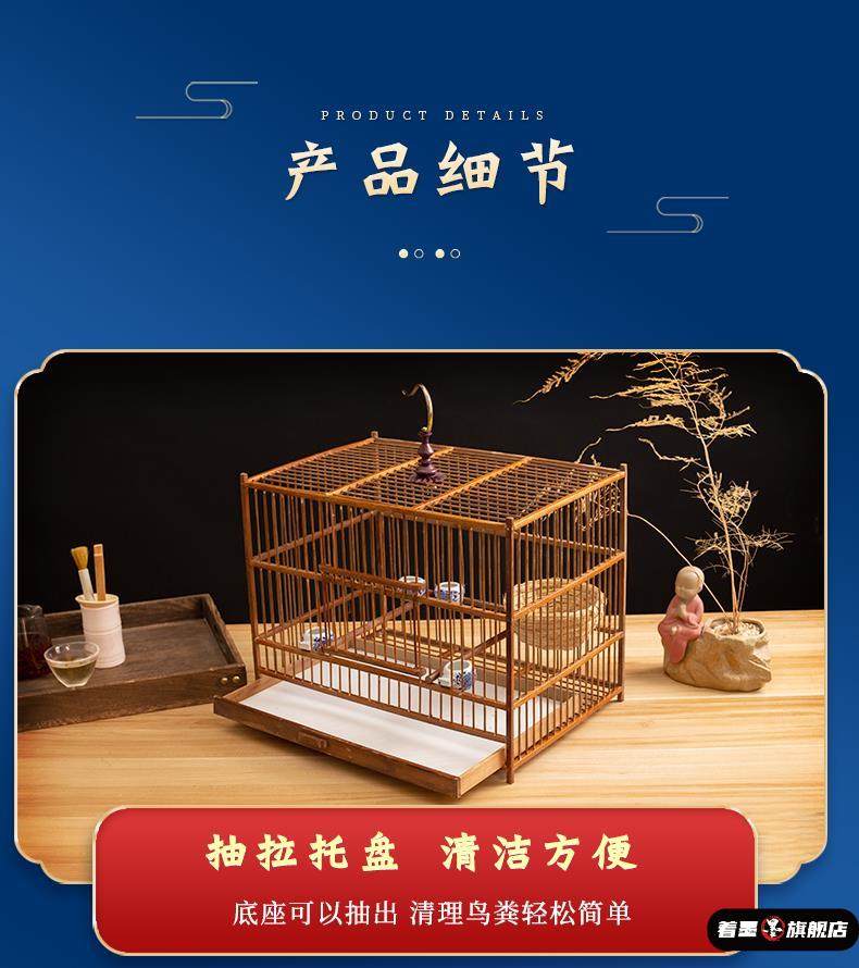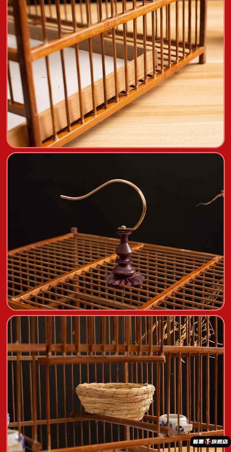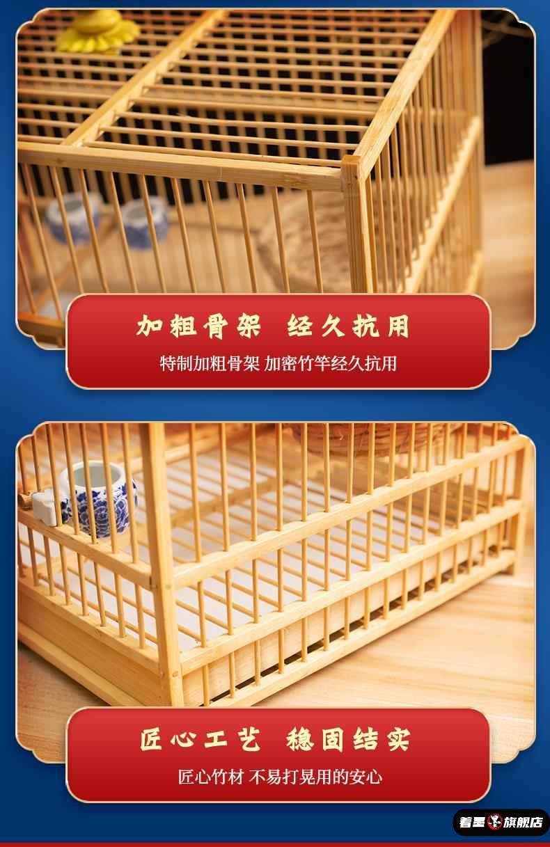Handmade Bamboo Square Bird Cage, Large Jade Bird Breeding Cage, Finch Cage, Can Bathe, Suitable for Finches, Waxwings, and Blue-Tailed Orioles