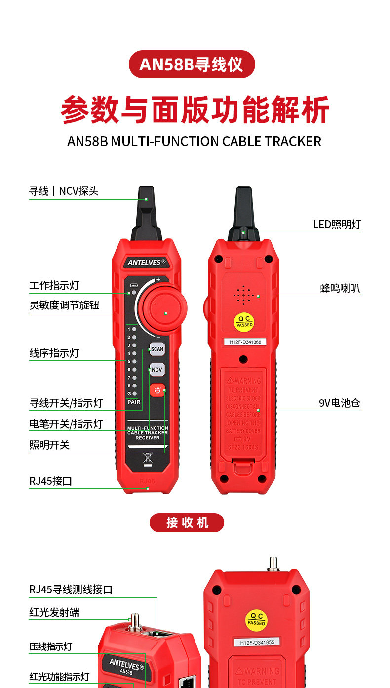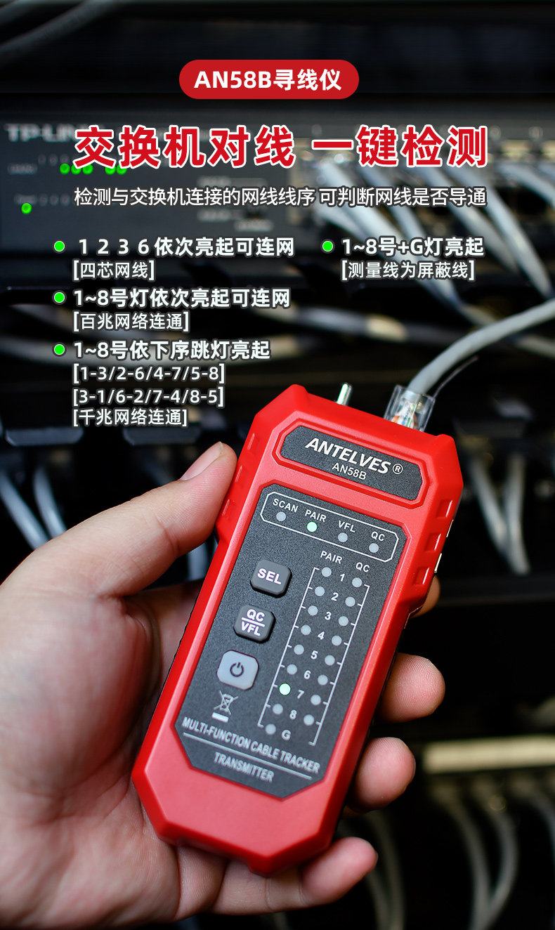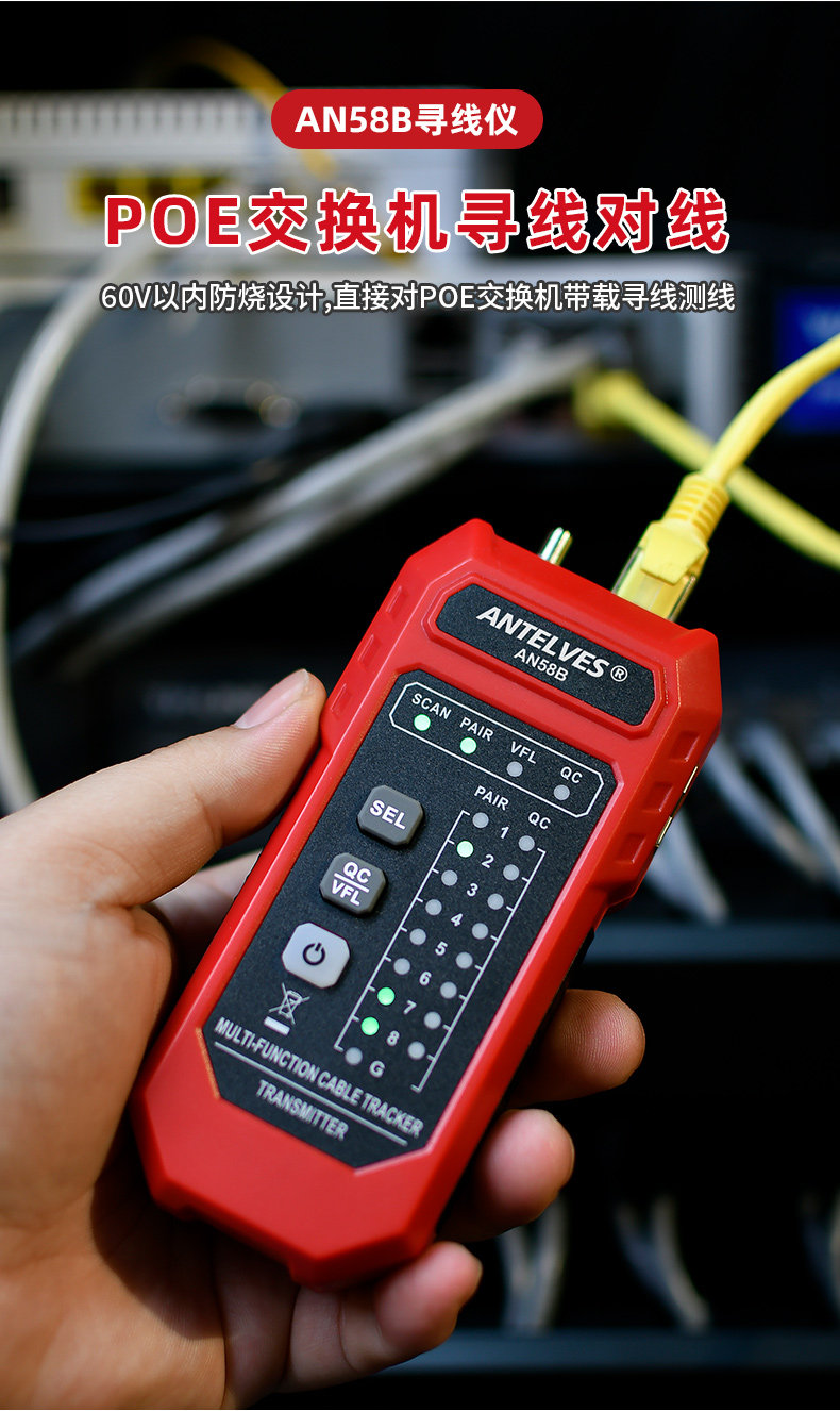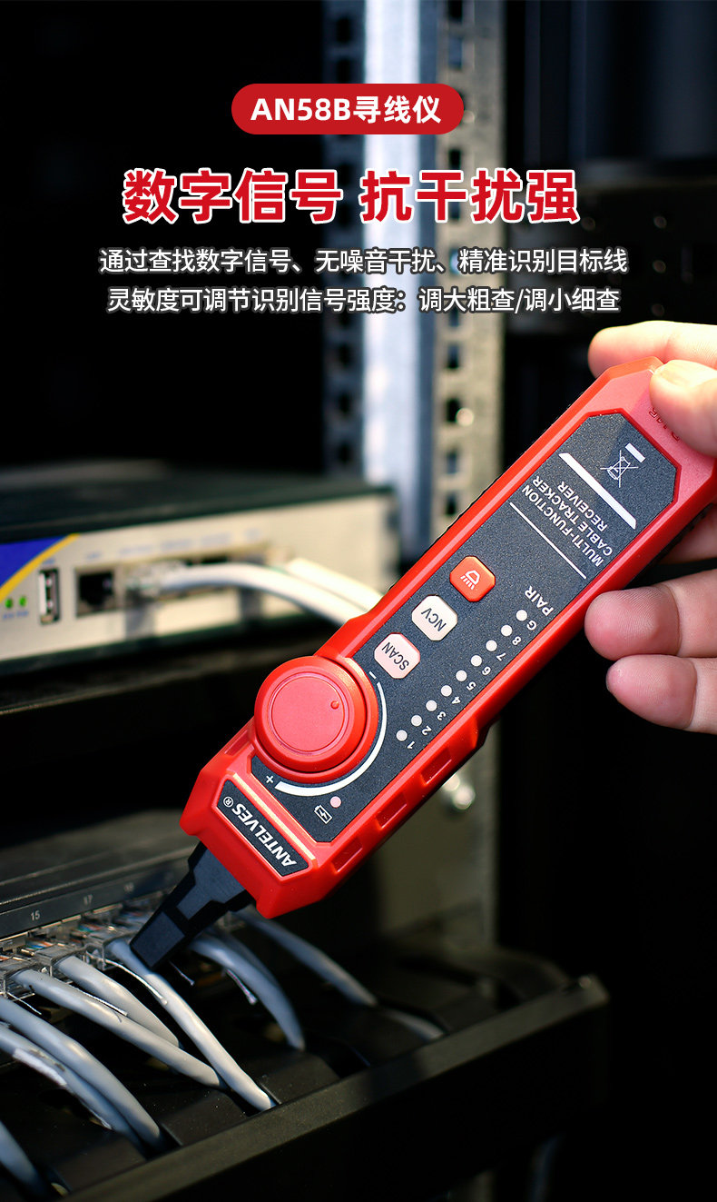 An58B Network Line Finder, Line Tester, Network Cable Crimping Detector, Poe Live Line Inspection Instrument, Anti-Interference Line Checker