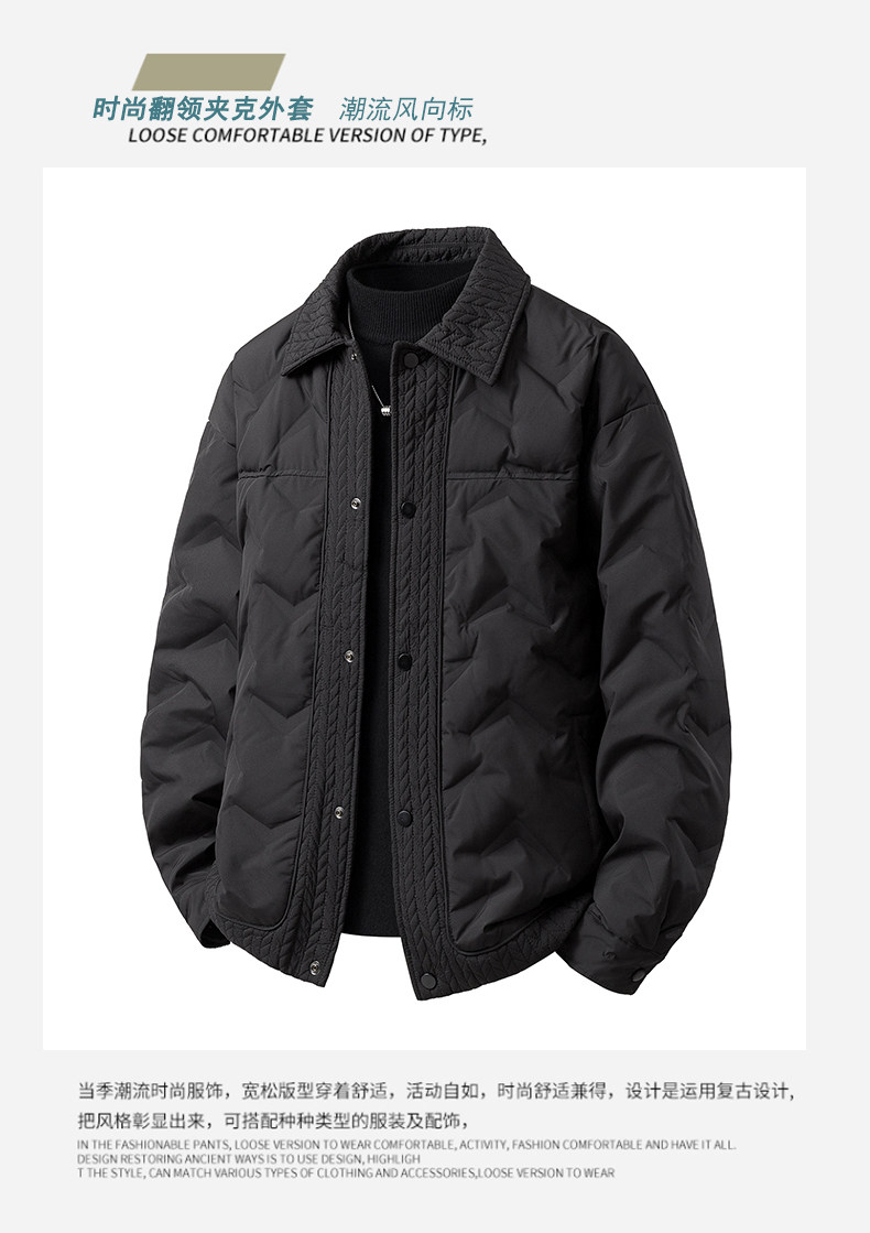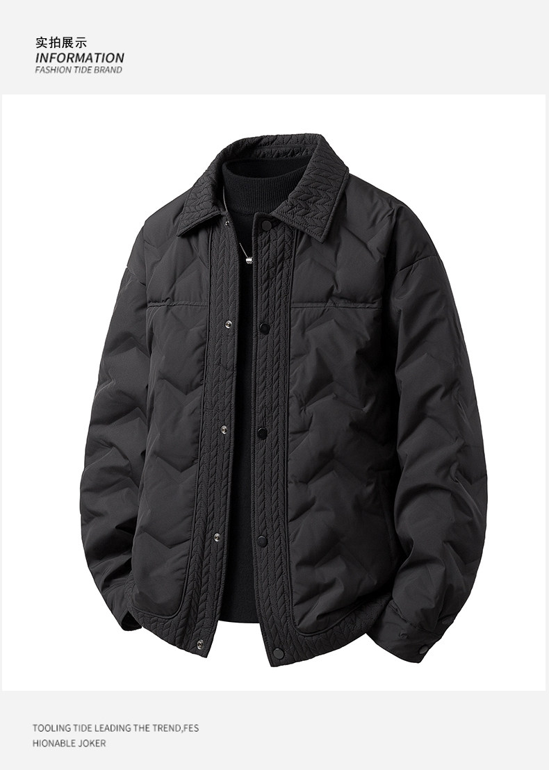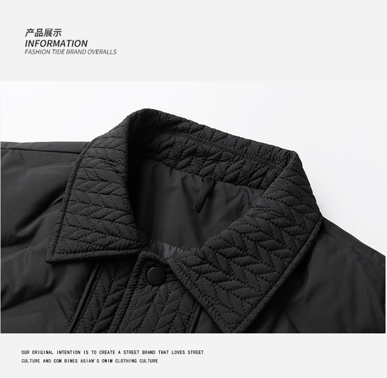 Geniolamode down Jacket Winter Men's Warm Simple Versatile Trendy American Casual Lapel Couple Coat