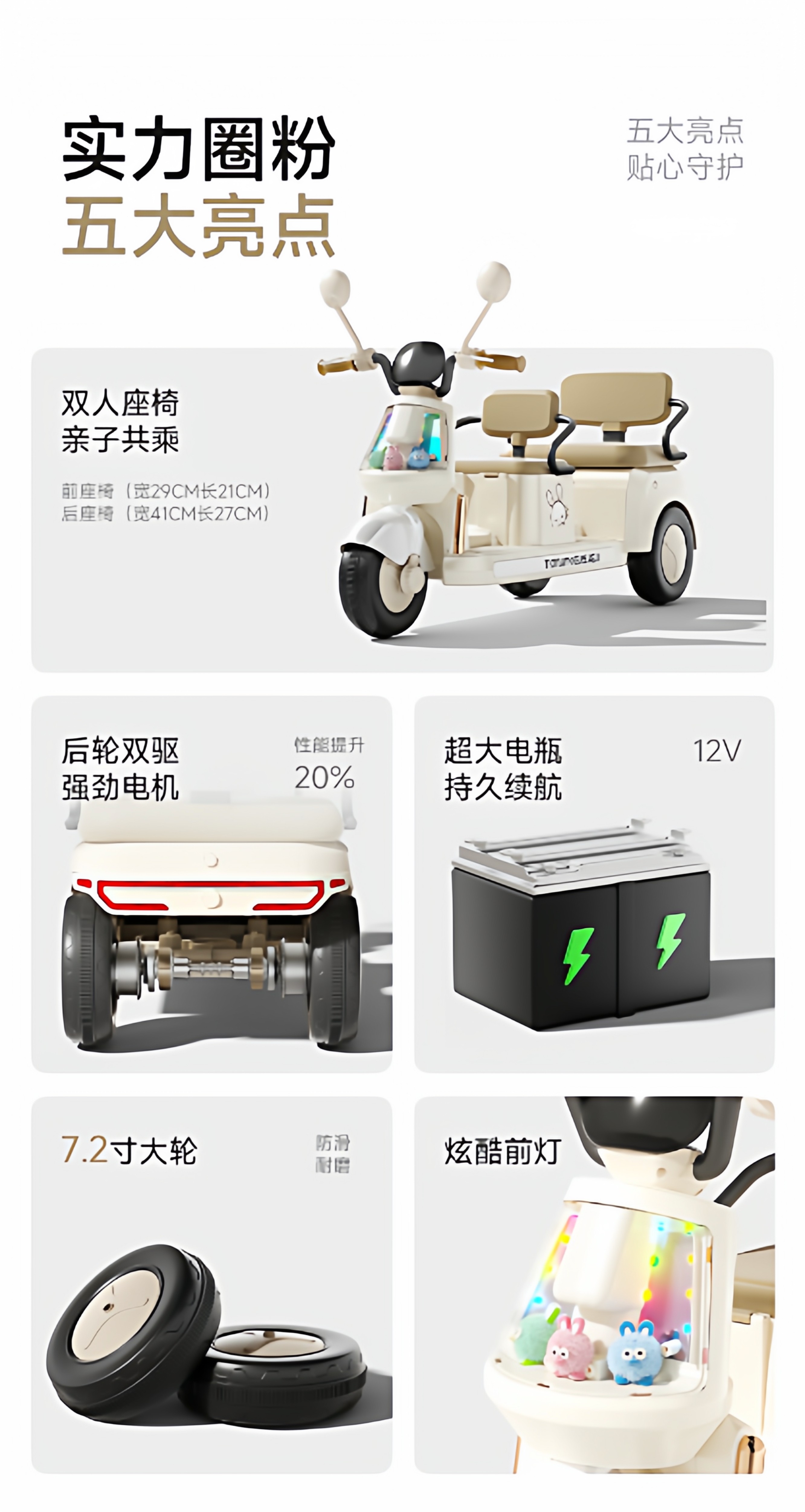 | Color Classification | No. 9 Cream Coffee [Standard Edition - No Remote Control] 6V7A Large Battery + Two-Wheel Drive + Early Education Music,No. 9 Cream Coffee [High-End Edition - with Remote Control] 6V7A Large Battery + Two-Wheel Drive + Early Education Music,No. 9 Cream Coffee [Deluxe Edition - with Remote Control] 12V4A Super Large Battery + Two-Wheel Drive + Early Education Music + Bluetooth,No. 9 Cream Coffee [Extreme Edition - with Remote Control] 12V7A Extra Large Battery + Two-Wheel Drive + Early Education Music + Bluetooth,No. 9 Cool Black [Standard Version - No Remote Control] 6V7A Large Battery + Two-Wheel Drive + Early Education Music,No. 9 Cool Black [High-End Version - with Remote Control] 6V7A Large Battery + Two-Wheel Drive + Early Education Music,No. 9 Cool Black [Deluxe Edition - with Remote Control] 12V4A Super Large Battery + Two-Wheel Drive + Early Education Music + Bluetooth,No. 9 Cool Black [Extreme Edition - with Remote Control] 12V7A Extra Large Battery + Two-Wheel Drive + Early Education Music + Bluetooth,No. 9 Sakura Pink [Standard Edition - No Remote Control] 6V7A Large Battery + Two-Wheel Drive + Early Education Music,No. 9 Sakura Pink [High-End Version - with Remote Control] 6V7A Large Battery + Two-Wheel Drive + Early Education Music,No. 9 Sakura Pink [Deluxe Edition - with Remote Control] 12V4A Super Large Battery + Two-Wheel Drive + Early Education Music + Bluetooth,No. 9 Sakura Pink [Extreme Edition - with Remote Control] 12V7A Extra Large Battery + Two-Wheel Drive + Early Education Music + Bluetooth,No. 9 Pearlescent Blue [Standard Edition - No Remote Control] 6V7A Large Battery + Two-Wheel Drive + Early Education Music,No. 9 Pearlescent Blue [High-End Version - with Remote Control] 6V7A Large Battery + Two-Wheel Drive + Early Education Music,No. 9 Pearlescent Blue [Deluxe Edition - with Remote Control] 12V4A Super Large Battery + Two-Wheel Drive + Early Education Music + Bluetooth,No. 9 Pearlescent Blue [Extreme Edition - with Remote Control] 12V7A Extra Large Battery + Two-Wheel Drive + Early Education Music + Bluetooth,No. 9 Fresh Green [Standard Edition - No Remote Control] 6V7A Large Battery + Two-Wheel Drive + Early Education Music,No. 9 Fresh Green [High-End Version - with Remote Control] 6V7A Large Battery + Two-Wheel Drive + Early Education Music,No. 9 Fresh Green [Deluxe Edition - with Remote Control] 12V4A Super Large Battery + Two-Wheel Drive + Early Education Music + Bluetooth,No. 9 Fresh Green [Extreme Edition - with Remote Control] 12V7A Extra Large Battery + Two-Wheel Drive + Early Education Music + Bluetooth,No. 9 Cream Coffee [Super Long Battery Life + Remote Control] 24V Super Large Battery + 550 Powerful Dual Motors + Bluetooth Music,No. 9 Cream Coffee [Super Long Battery Life + Remote Control] 24V Super Large Battery + 550 Powerful Dual Motors + Bluetooth Music + Silent Soft Wheels,No. 9 Cool Black [Super Battery Life + Remote Control] 24V Super Large Battery + 550 Powerful Dual Motors + Bluetooth Music,No. 9 Cool Black [Super Battery Life + Remote Control] 24V Super Large Battery + 550 Powerful Dual Motors + Bluetooth Music + Silent Soft Wheels,No. 9 Sakura Pink [Super Long Battery Life + Remote Control] 24V Super Large Battery + 550 Powerful Dual Motors + Bluetooth Music,No. 9 Sakura Pink [Super Battery Life + Remote Control] 24V Super Large Battery + 550 Powerful Dual Motors + Bluetooth Music + Silent Soft Wheels,No. 9 Pearlescent Blue [Super Battery Life + Remote Control] 24V Super Large Battery + 550 Powerful Dual Motors + Bluetooth Music,No. 9 Pearlescent Blue [Super Battery Life + Remote Control] 24V Super Large Battery + 550 Powerful Dual Motors + Bluetooth Music + Silent Soft Wheels,No. 9 Fresh Green [Super Battery Life + Remote Control] 24V Super Large Battery + 550 Powerful Dual Motors + Bluetooth Music,No. 9 Fresh Green [Super Battery Life + Remote Control] 24V Super Large Battery + 550 Powerful Dual Motors + Bluetooth Music + Silent Soft Wheels |