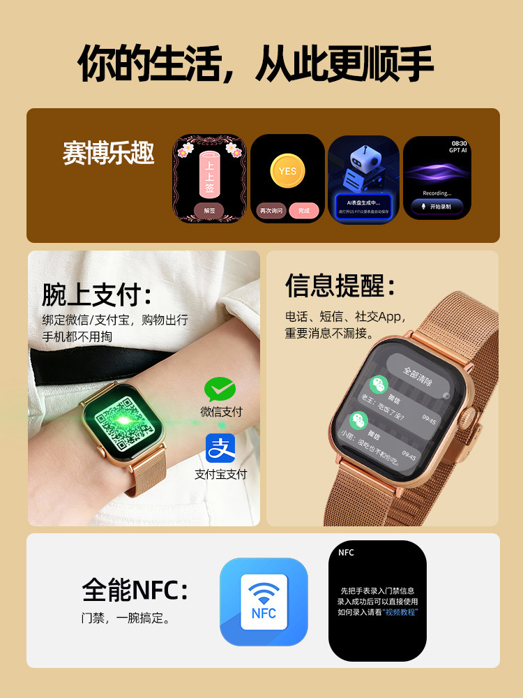 | Appearance Color | Rose Gold Mesh Steel [Bluetooth Calling/Wechat Chat/Dual Payment/Local Music/One-Key Recording/Ai Assistant/Movement & Health, Etc.],Silver Mesh Steel [Bluetooth Calling/Wechat Chat/Dual Payment/Local Music/One-Key Recording/Ai Assistant/Movement & Health, Etc.],Black Mesh Steel [Bluetooth Calling/Wechat Chat/Dual Payment/Local Music/One-Key Recording/Ai Assistant/Movement & Health, Etc.] |