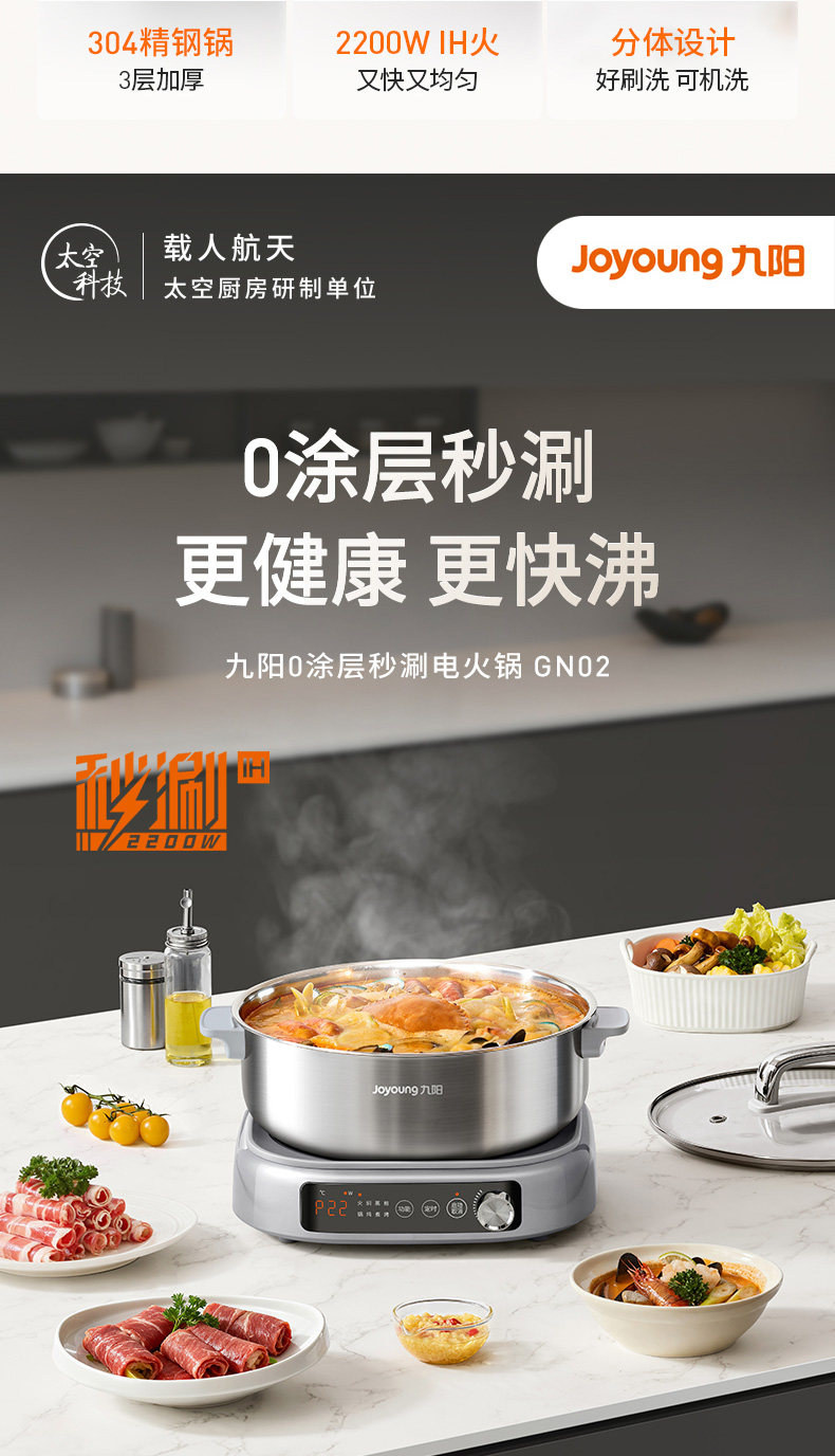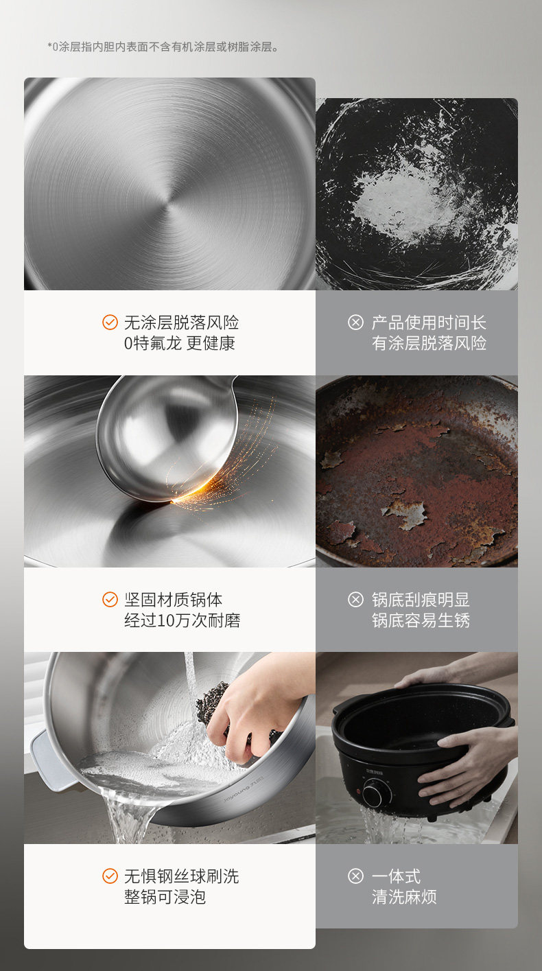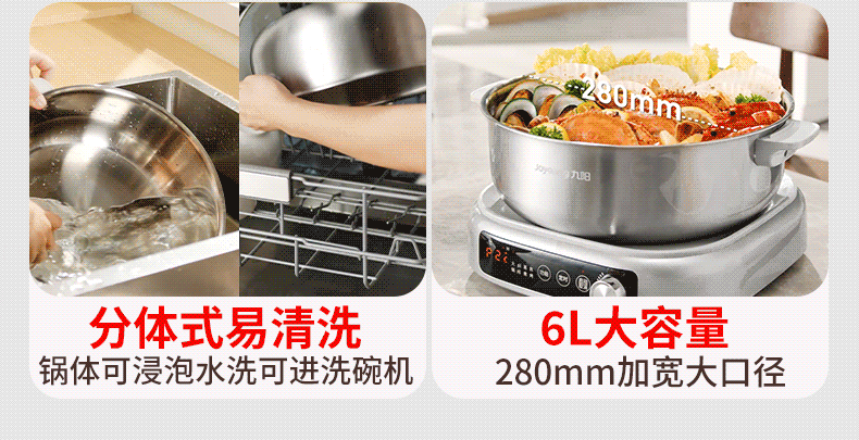 Joyoung 0-Coating Electric Hot Pot Ih Instant Hot Pot Detachable Household Stainless Steel Multifunctional Electric Cooking Pot Large Capacity New