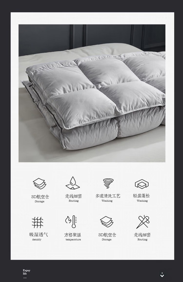 Muji 100% White Goose down Feather Quilt Autumn and Winter Quilt Core Warm Thickened Air Conditioning Quilt Single Bed Bedding