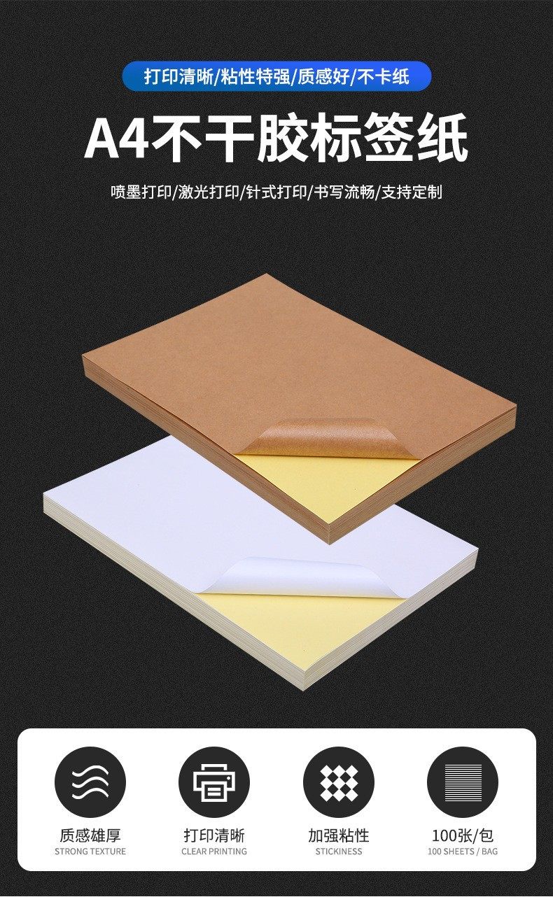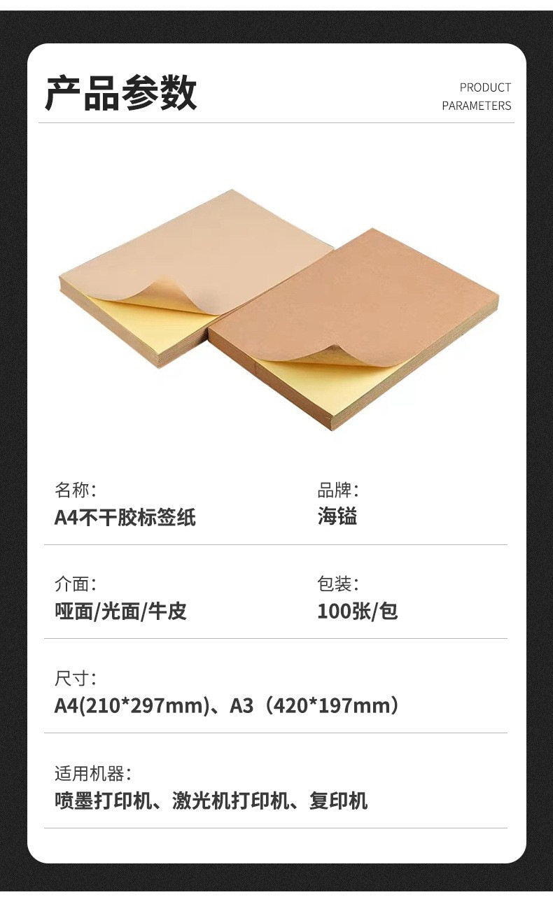 A4 Dark Brown Kraft Paper Label Printing Paper, Self-Adhesive Stickers, Matte Surface, Strong Adhesive, Self-Adhesive Printing Paper Wholesale, Large Self-Adhesive Label Paper, Self-Adhesive White Blank Paper with Adhesive Backing