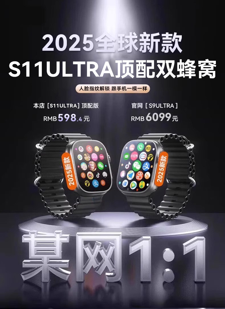 [2025 New Honeycomb Edition]Huaqiangbei S11Ultra Top-Tier Version Watchs10 Smart Phone Watch with Sim Card Support, Downloadable, for Teenagers, Adults, Women, Men, Sports, Official Store, Genuine Product