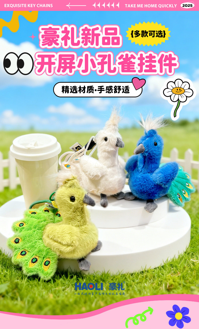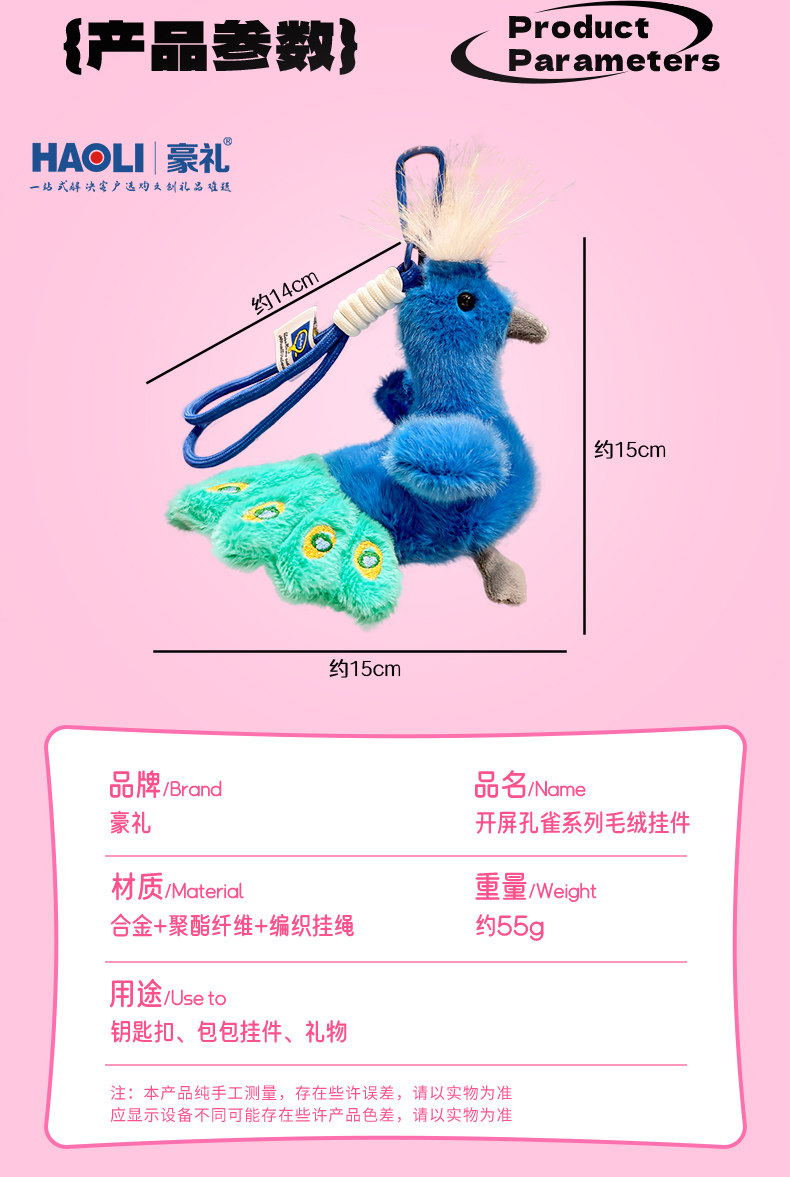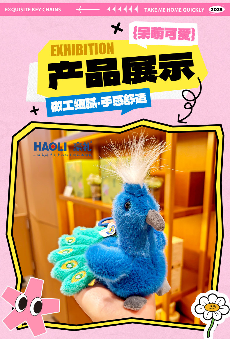 Exquisite Peacock Plush Doll Keychain Backpack Pendant Gift for Girls Cartoon Bag Decoration