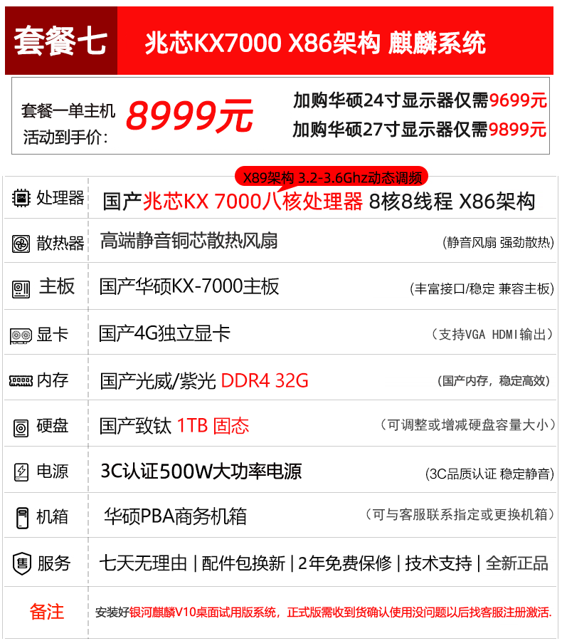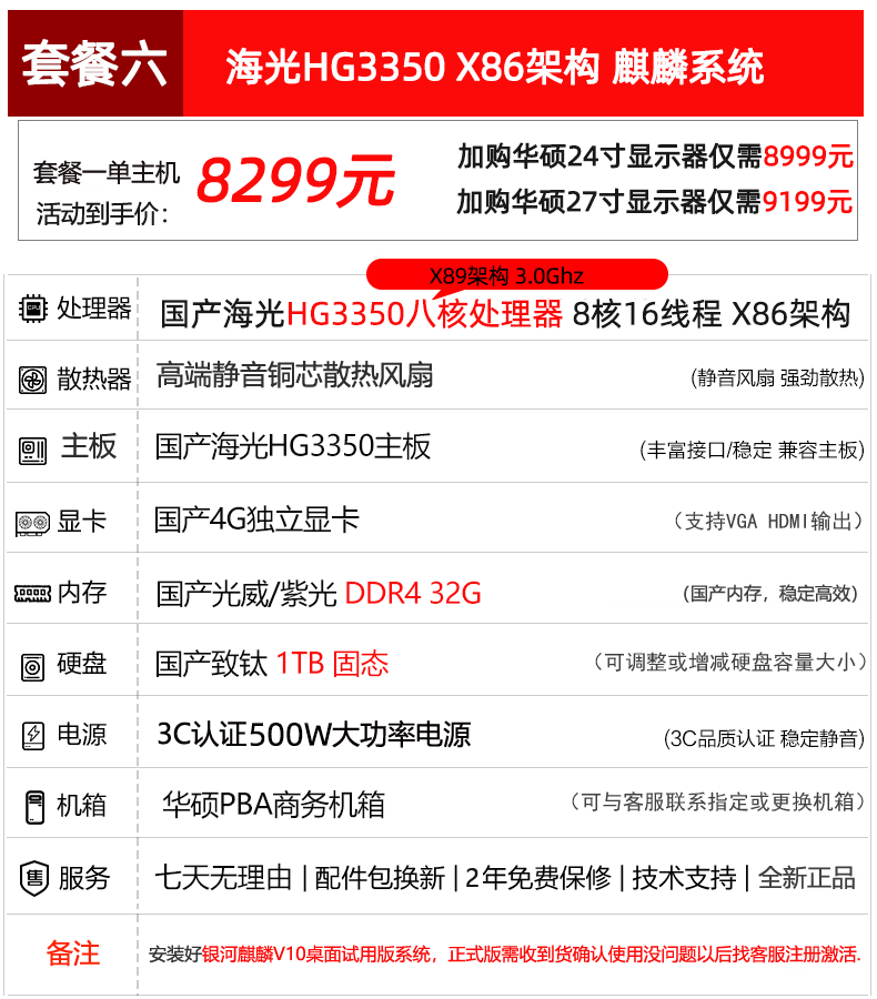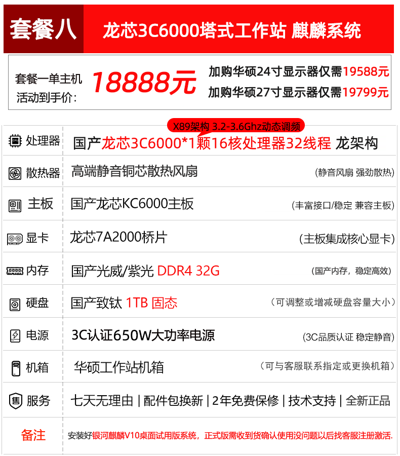 | Color Classification | 1. Domestic X86 Zhaoxin 6780A Kirin System,2. Domestic Arm Kunpeng 920 Eight-Core Kirin System,Three Domestic Loongson Architecture 3A6000 Kirin System,4. Domestic Arm Feiteng D2000 Eight-Core Kirin System,5. Domestic Arm Feiteng D3000 Eight-Core Kirin System,Six Domestic X86 Hai Guang Hg3350 Octa-Core Kirin System,7. Domestic X86 Megachip Kx7000 Eight-Core Kirin System,8. Domestic Loongson 3C6000 16-Core with Kunlun Os |
