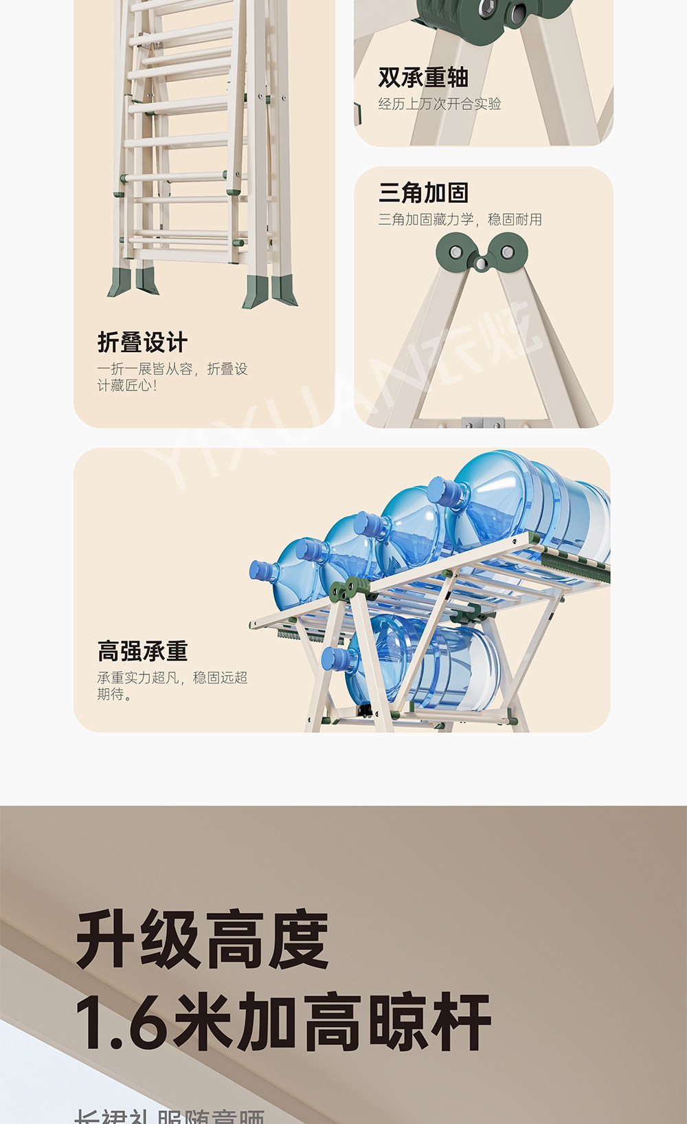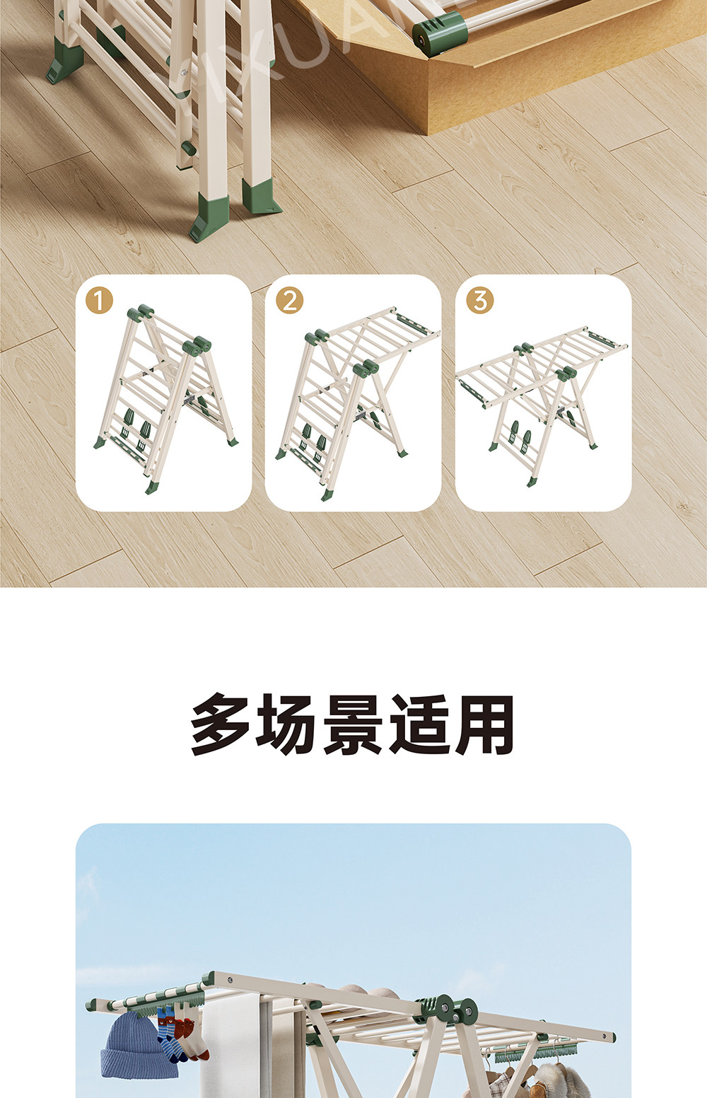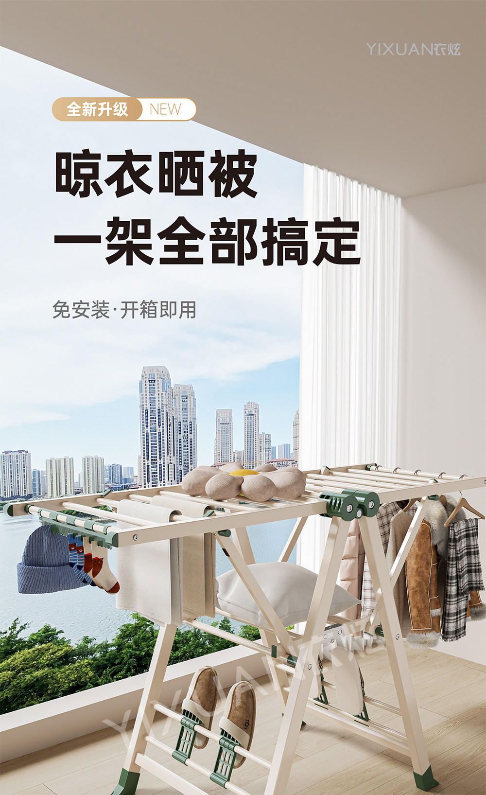 Floor-Standing Clothes Drying Rack for Home Use, Balcony Foldable Cream-Style Baby Clothes Drying Rod, Indoor and Outdoor Clothes Hanging Rod, Quilt Drying Magic Tool