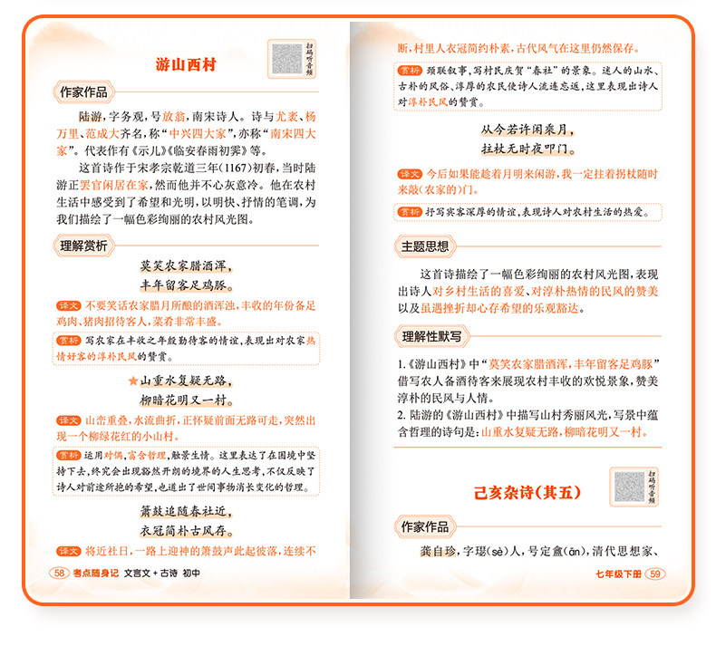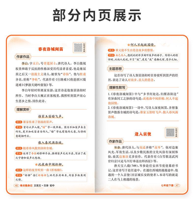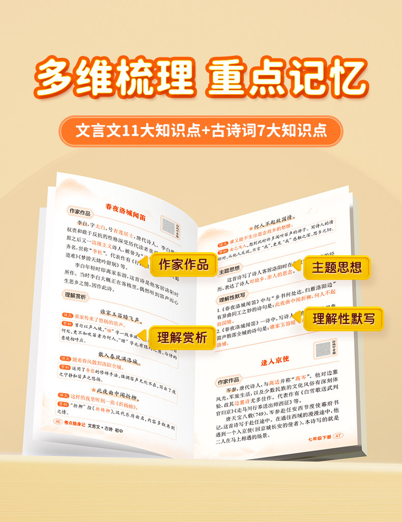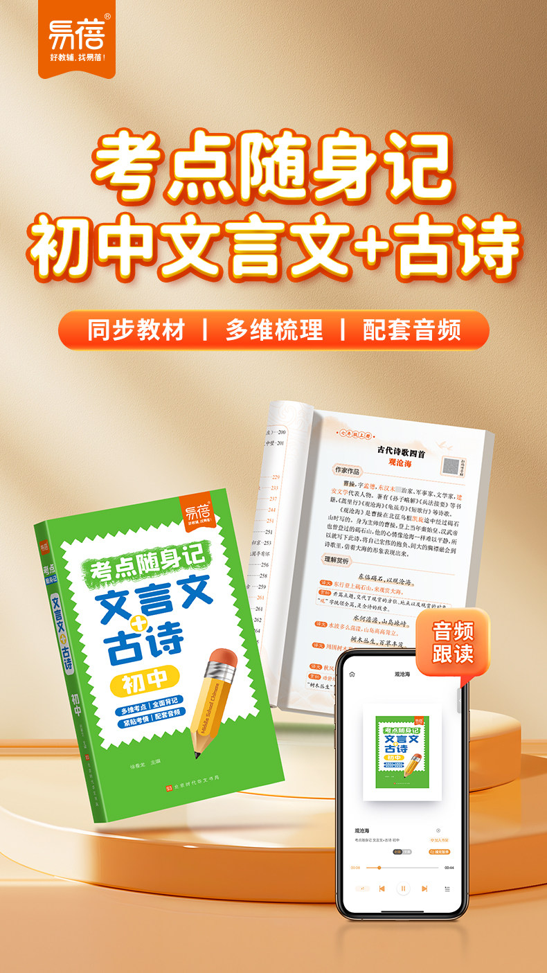 [Yi Bei]Essential Ancient Poems and Classical Chinese Texts for Middle School Grades 7-9: a Pocket Guide for Exam Preparation, Mini Pocket Book for Middle School Students, Comprehensive Review and Practice Manual for Basic Knowledge of Ancient Poetry and Literature for Grades 7, 8, and 9