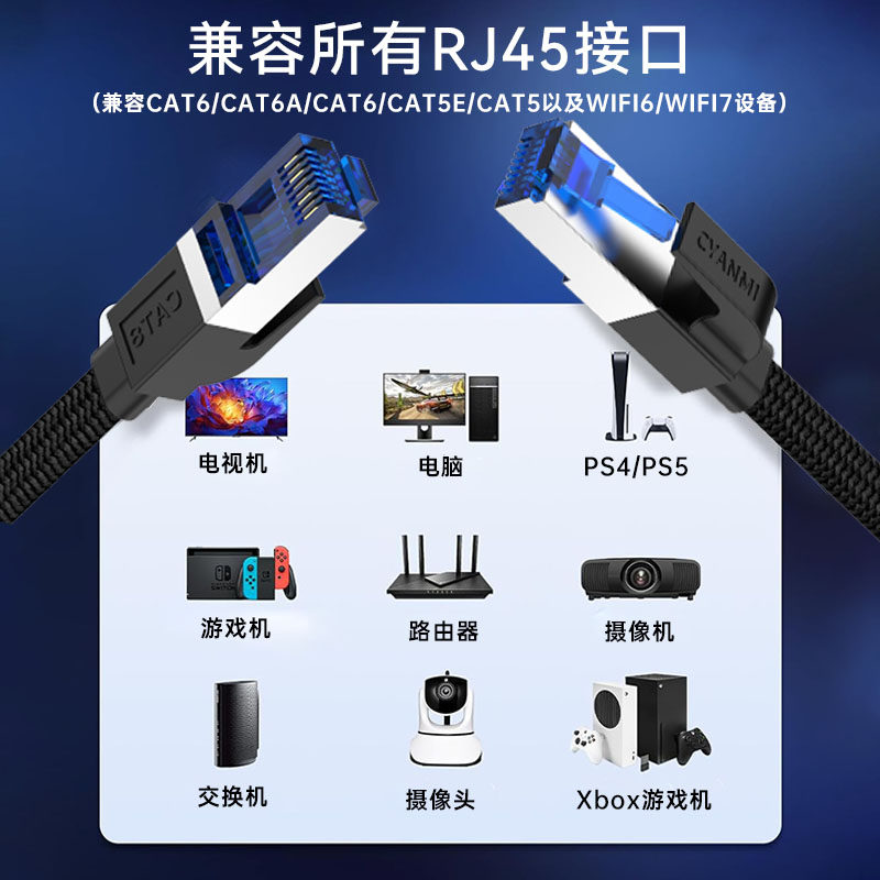Cyanmi Category 8 Network Cable, Flat and Flexible, 10 Gigabit, Category 8, Category 7, Broadband Shielded Connection, Computer Network Cable, Invisible