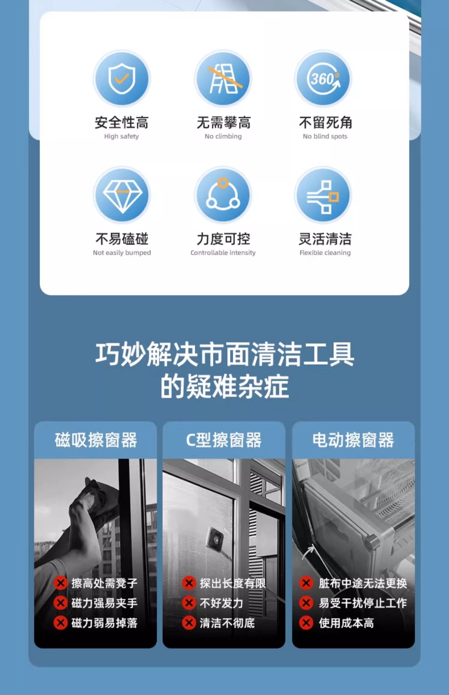 Japanese Glass Cleaning Tool for Home Use, New Model for High-Rise Window Cleaning, Outdoor Housekeeping, Double-Sided Cleaning Squeegee, Special for Cleaning