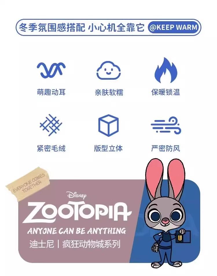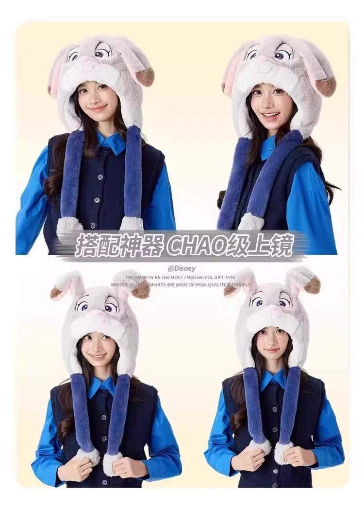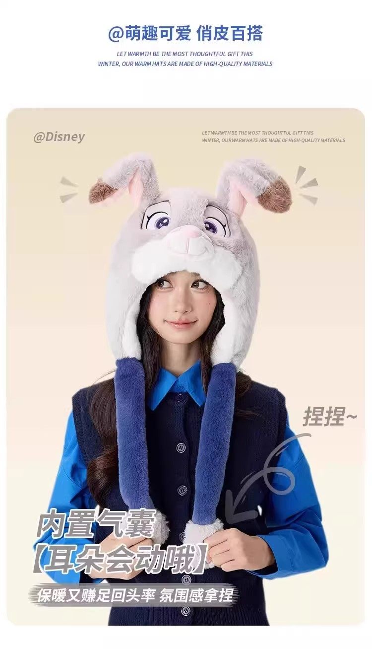 Disney Autumn and Winter Warm Hat Judy Nick with Ears That Move When You Pinch Them, Cute Couple, Zootopia