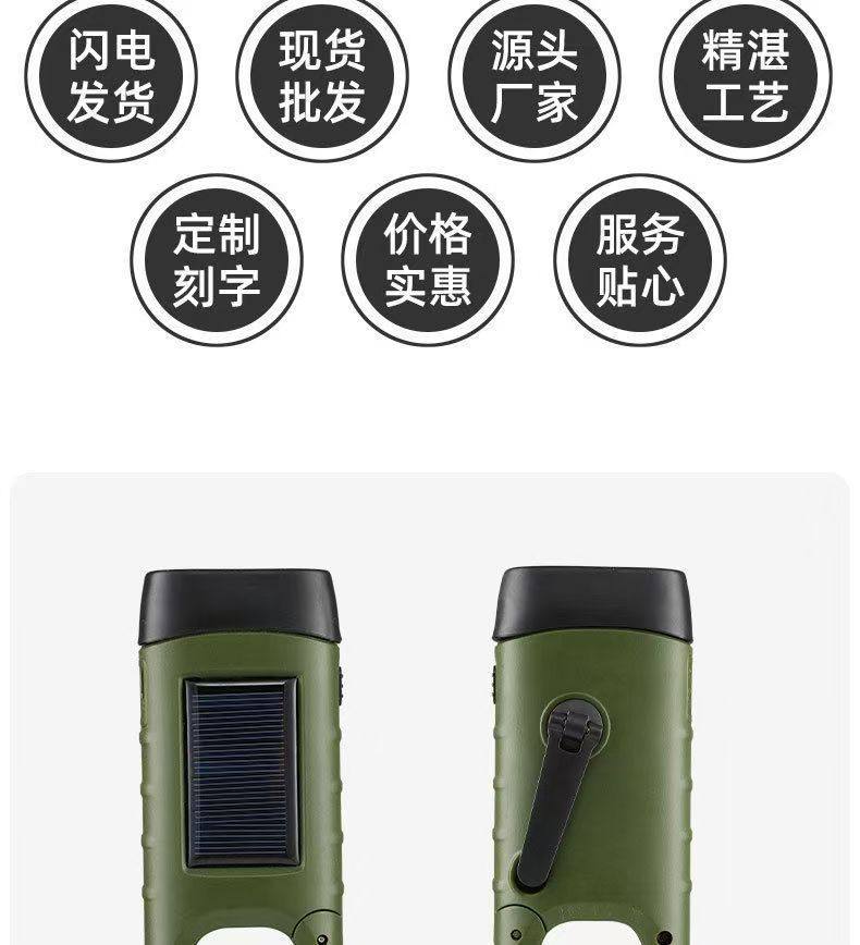 Flashlight with Hand Crank Power Generation, Solar Power Generation, Rechargeable Led Light, Multifunctional Flashlight, Ultra-Long Battery Life, Strong Light