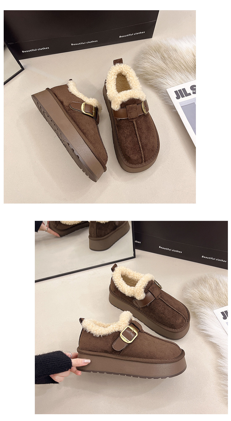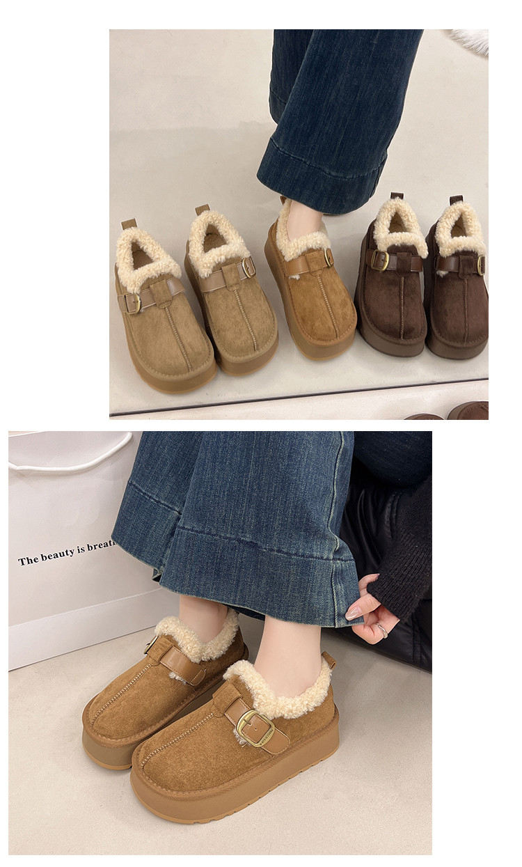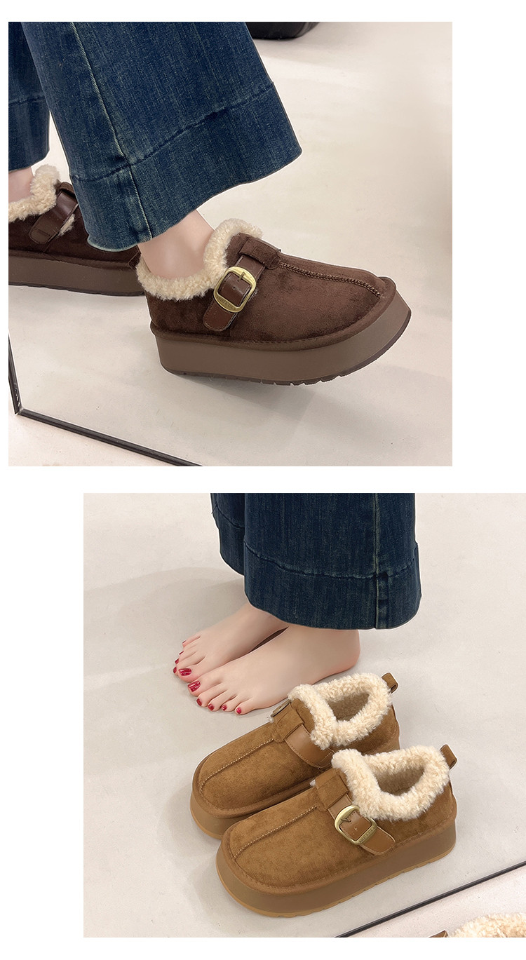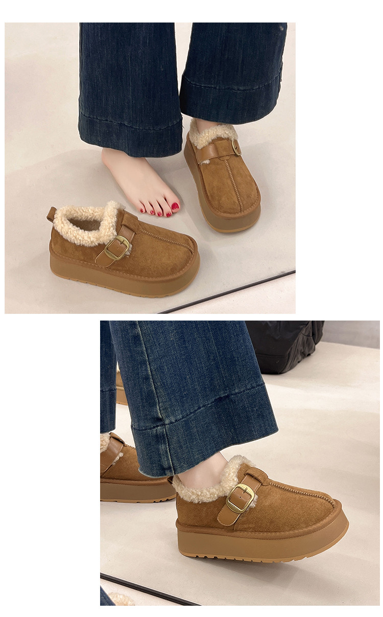 Thick-Soled Height-Increasing Plush Birkenstock-Style Women's Shoes 2025 New Winter Slip-On Warm Furry Snow Boots Cotton Shoes Size 34