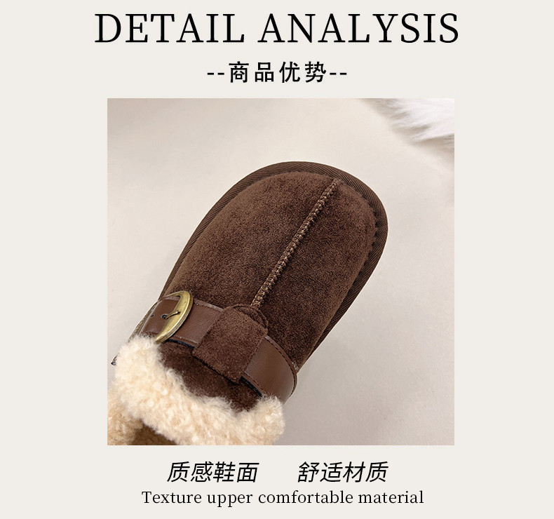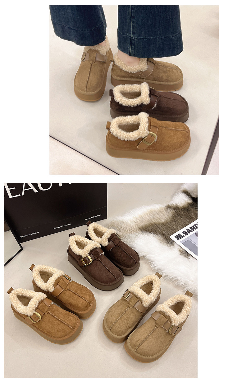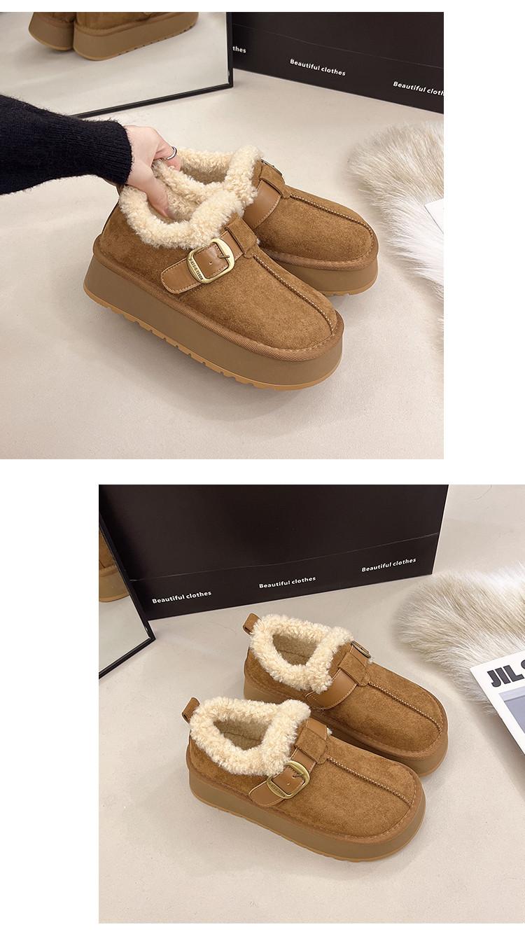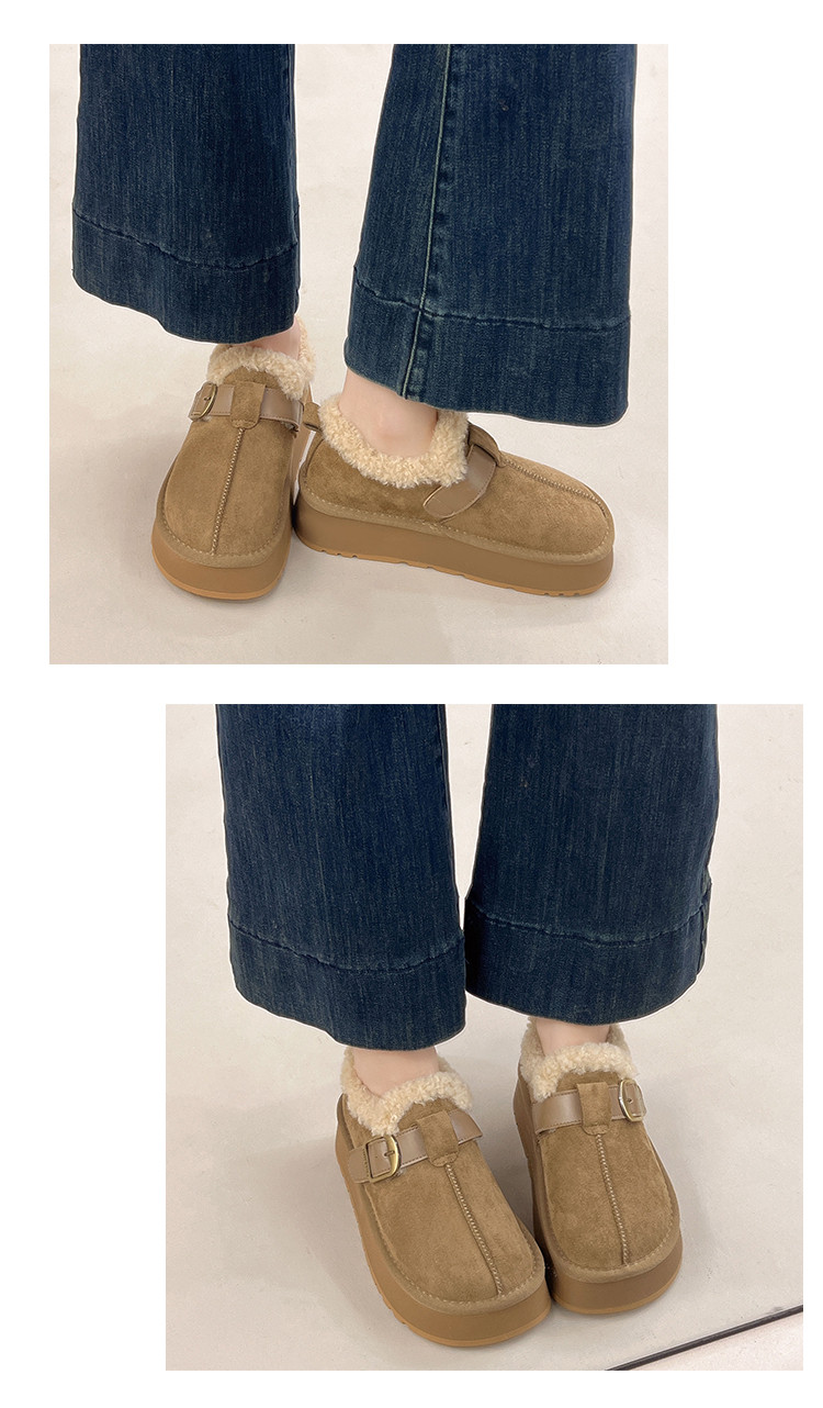 Thick-Soled Height-Increasing Plush Birkenstock-Style Women's Shoes 2025 New Winter Slip-On Warm Furry Snow Boots Cotton Shoes Size 34