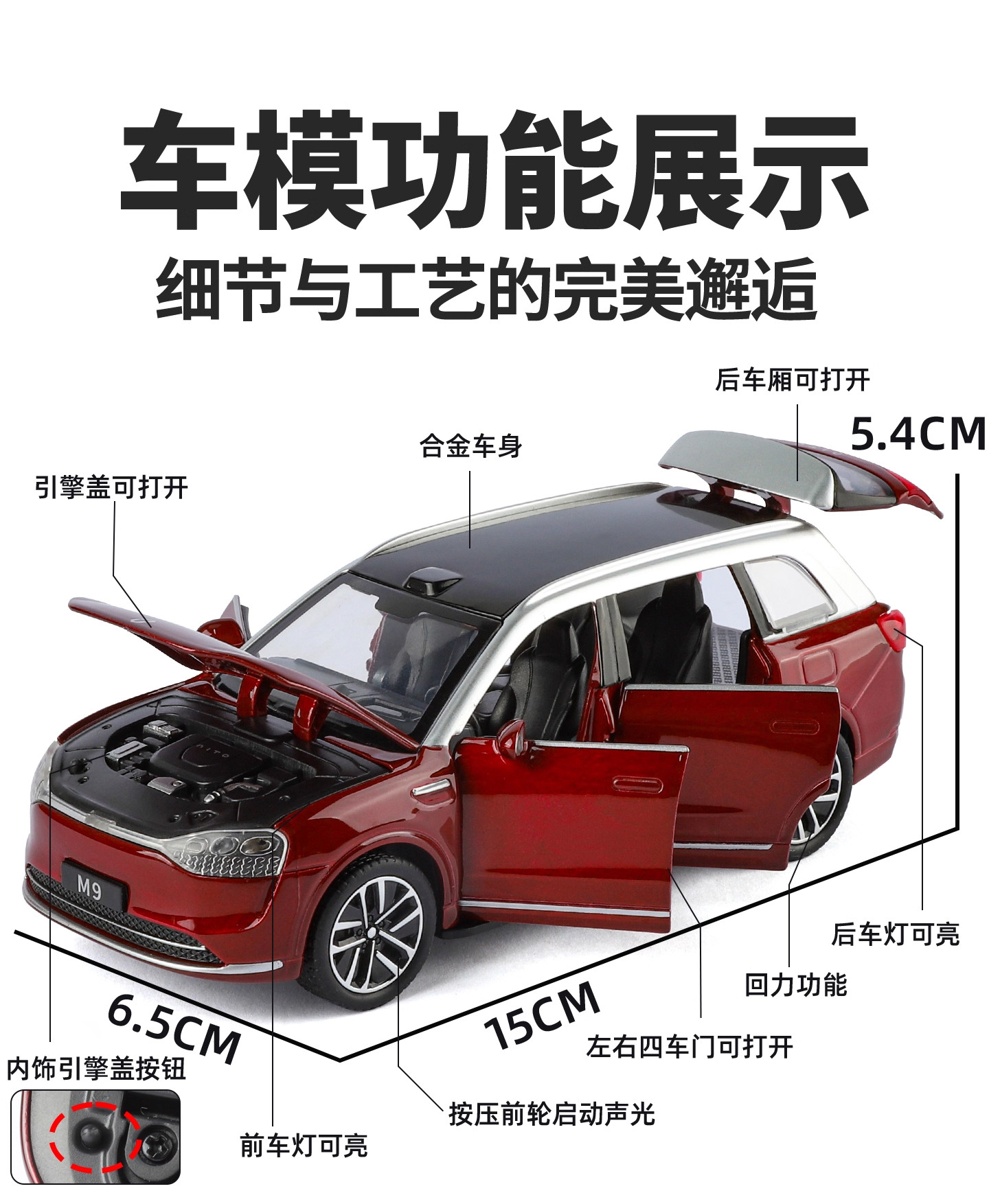 Sailaisi Wenjie M9 Car Model Alloy Car Model Simulation Suv New Energy Vehicle Children's Toy Car for Boys