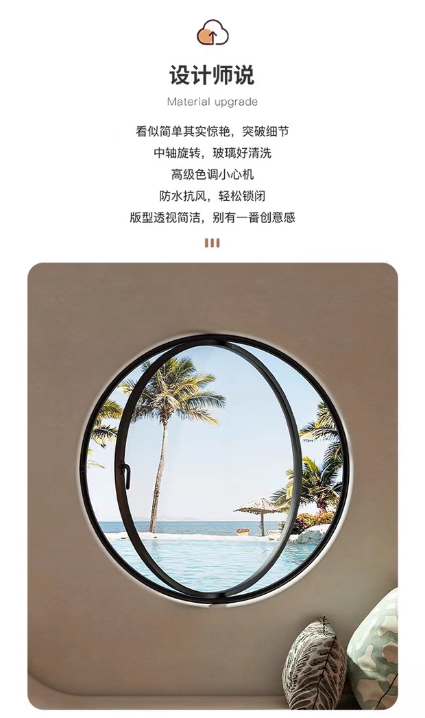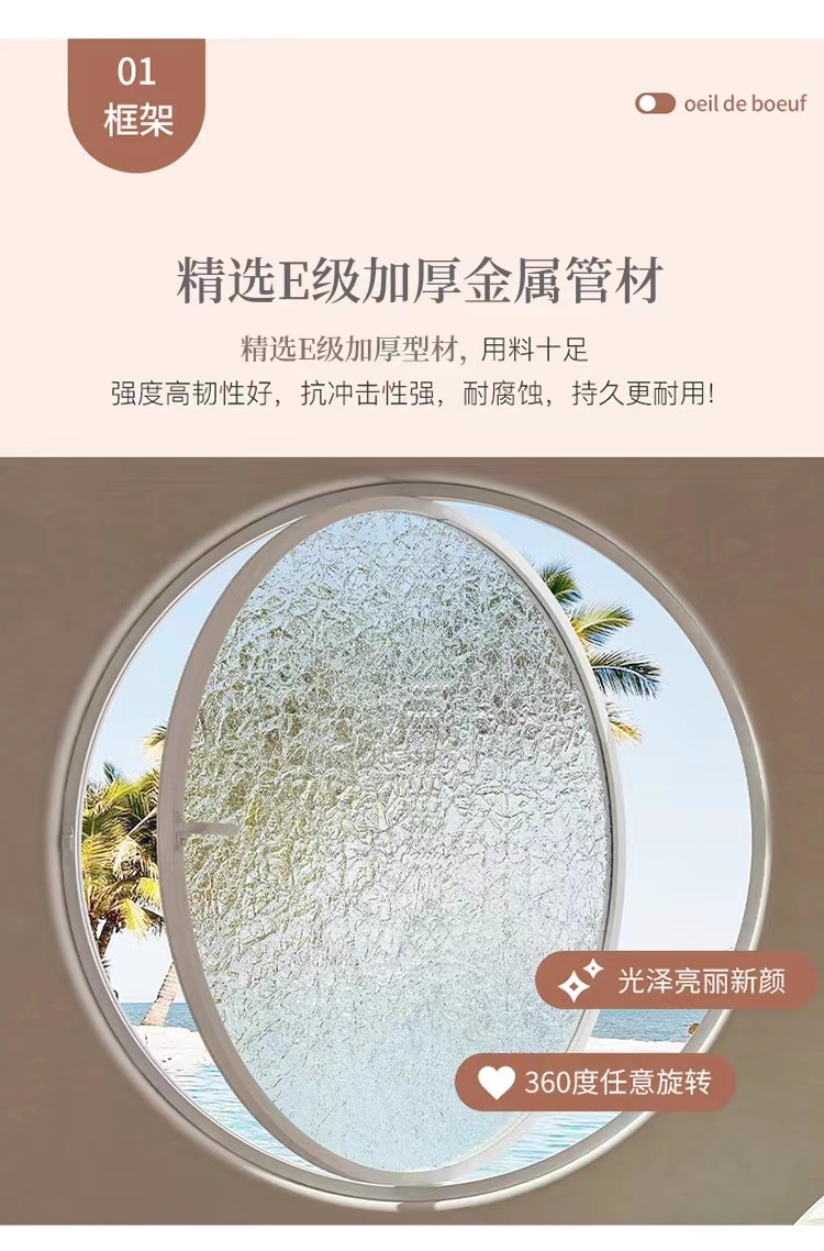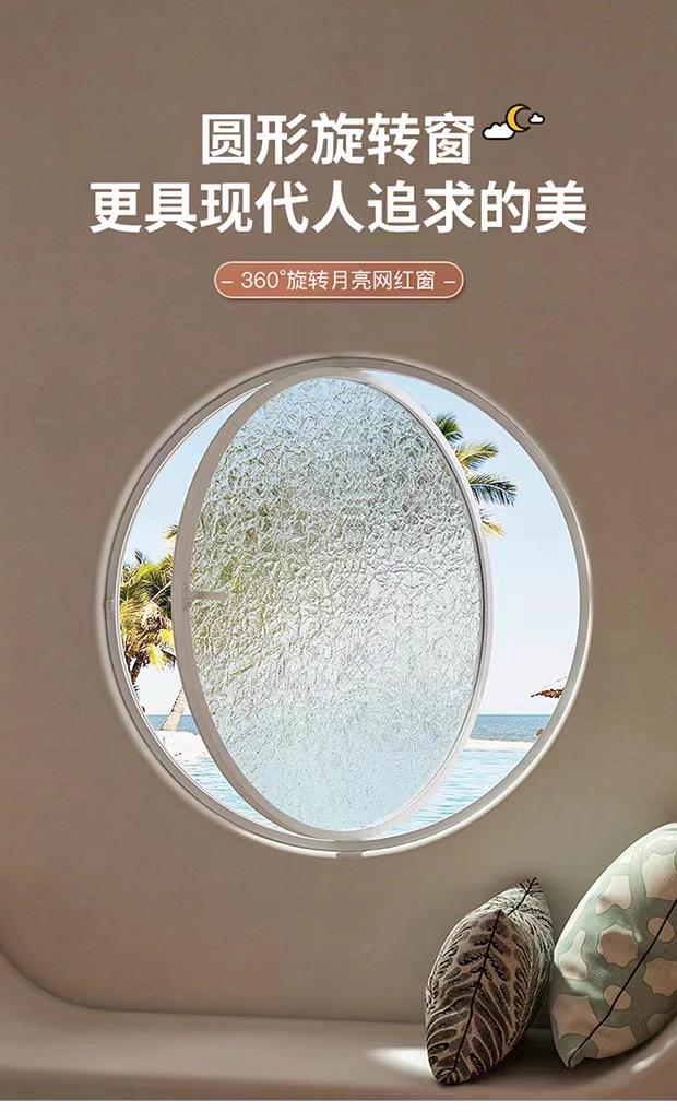 Arc-Shaped Window with Central Axis Rotation, Round Window, Moon Window, Indoor Circular Glass Window, Loft View Round Window Manufacturer