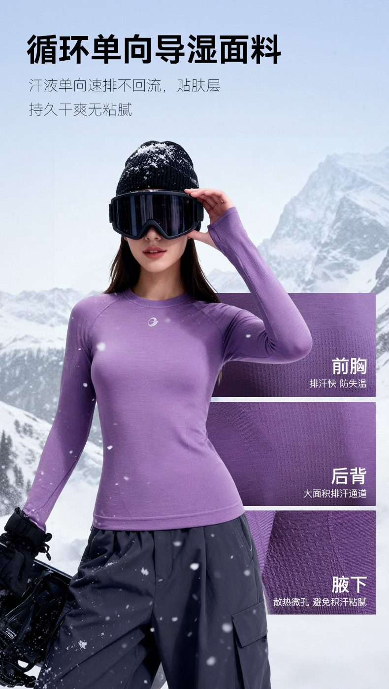 Golovejoy Merino Wool Ski Quick-Drying Clothing for Women, Outdoor Sports Warm Slim-Fitting Top for Men