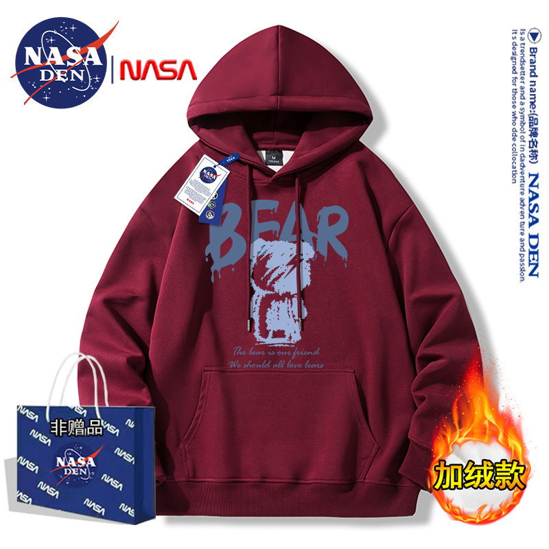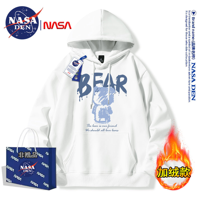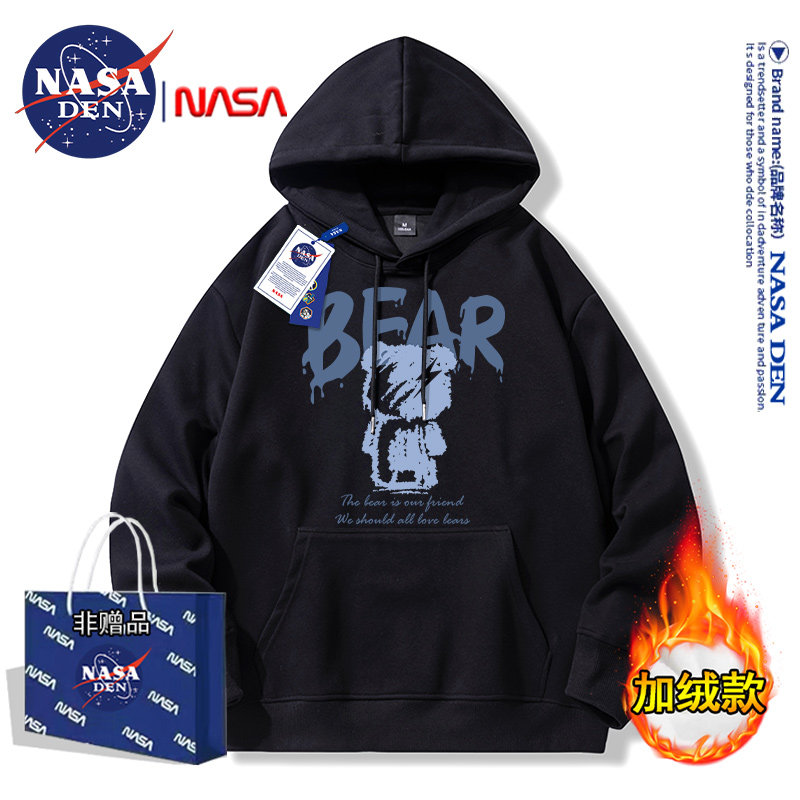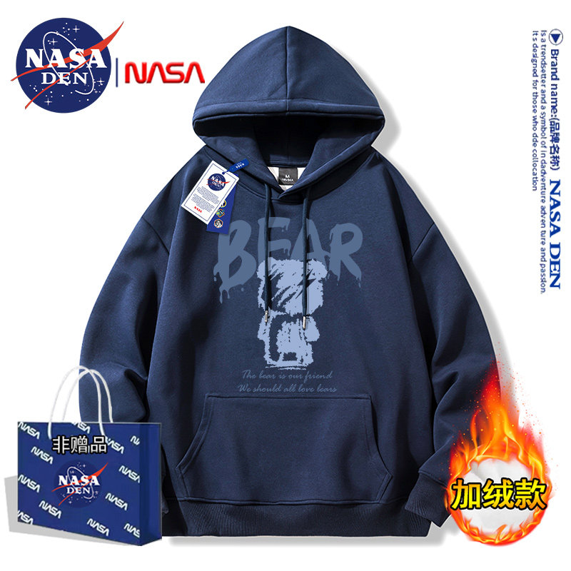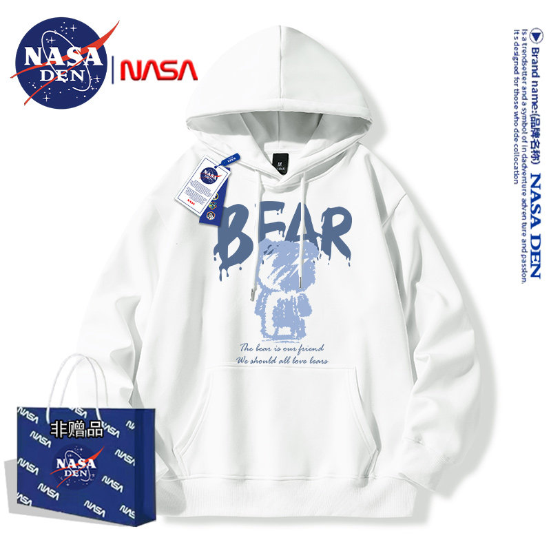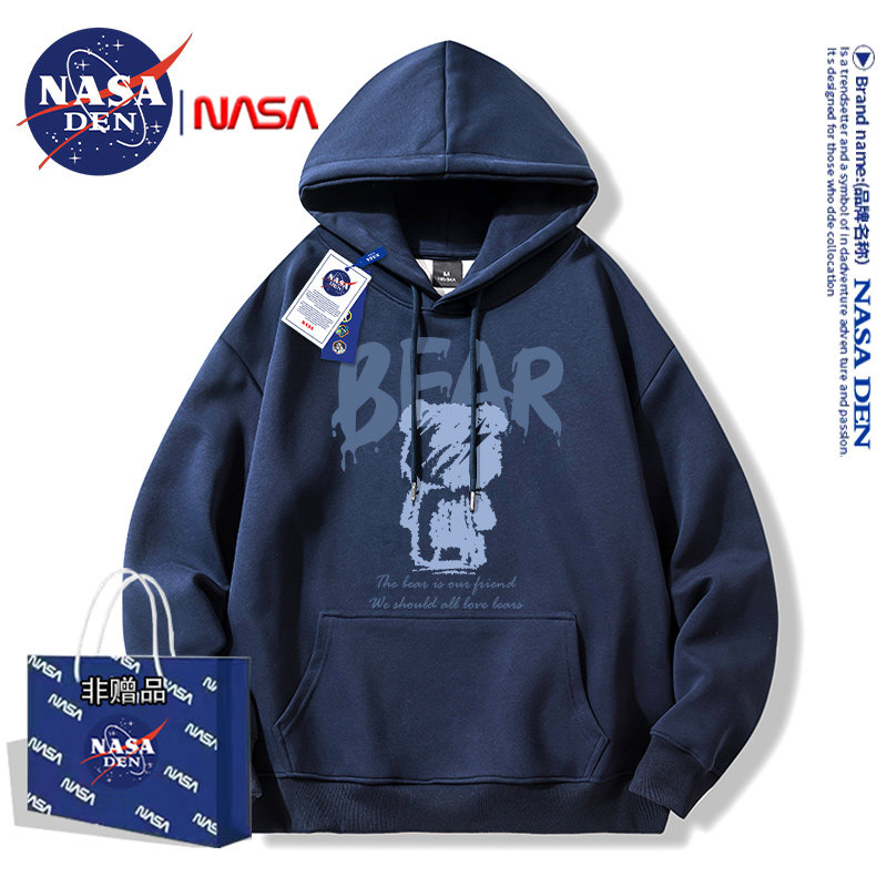 Nasa Collaboration Japanese-Style Simple Heavyweight Long-Sleeve Sweatshirt for Men and Women, Fashionable Casual Loose Versatile Hooded Top