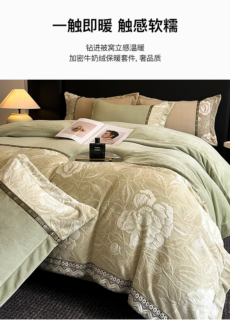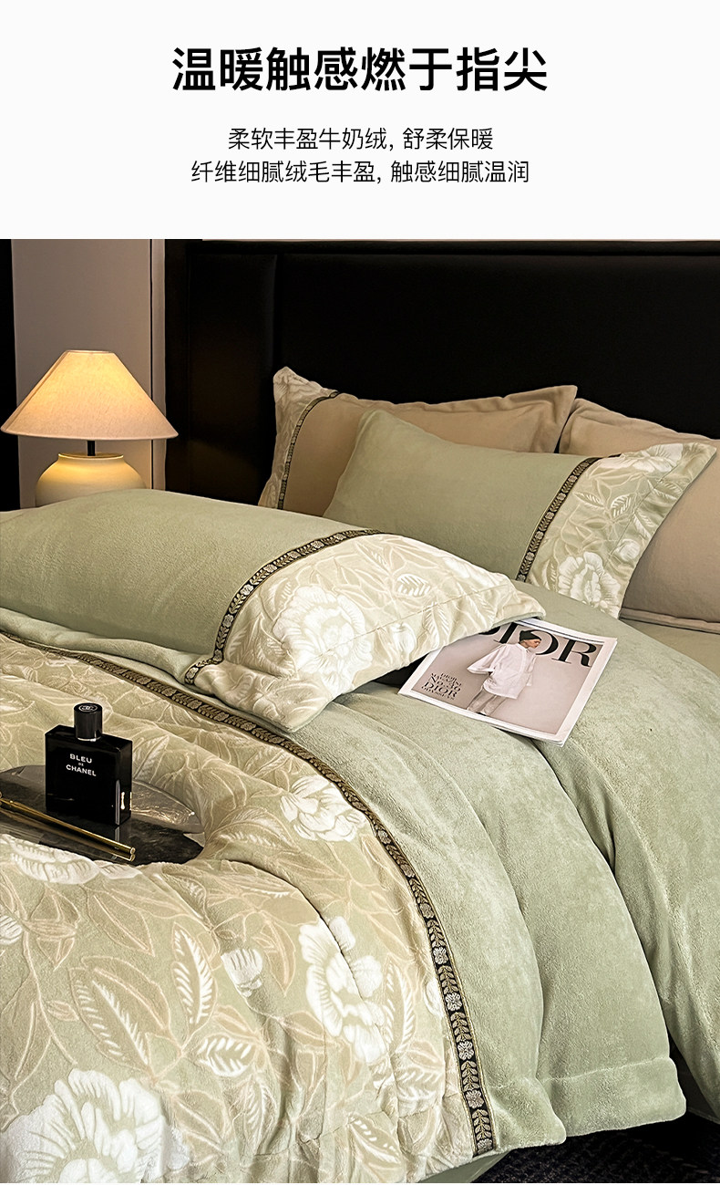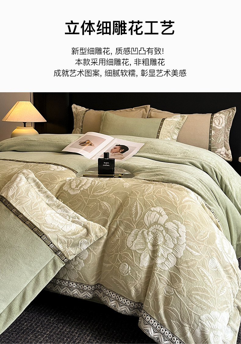 Winter Carved Milk Velvet Four-Piece Bedding Set 2025 New Double-Sided Coral Fleece Duvet Cover Thickened Bed Sheet 4A