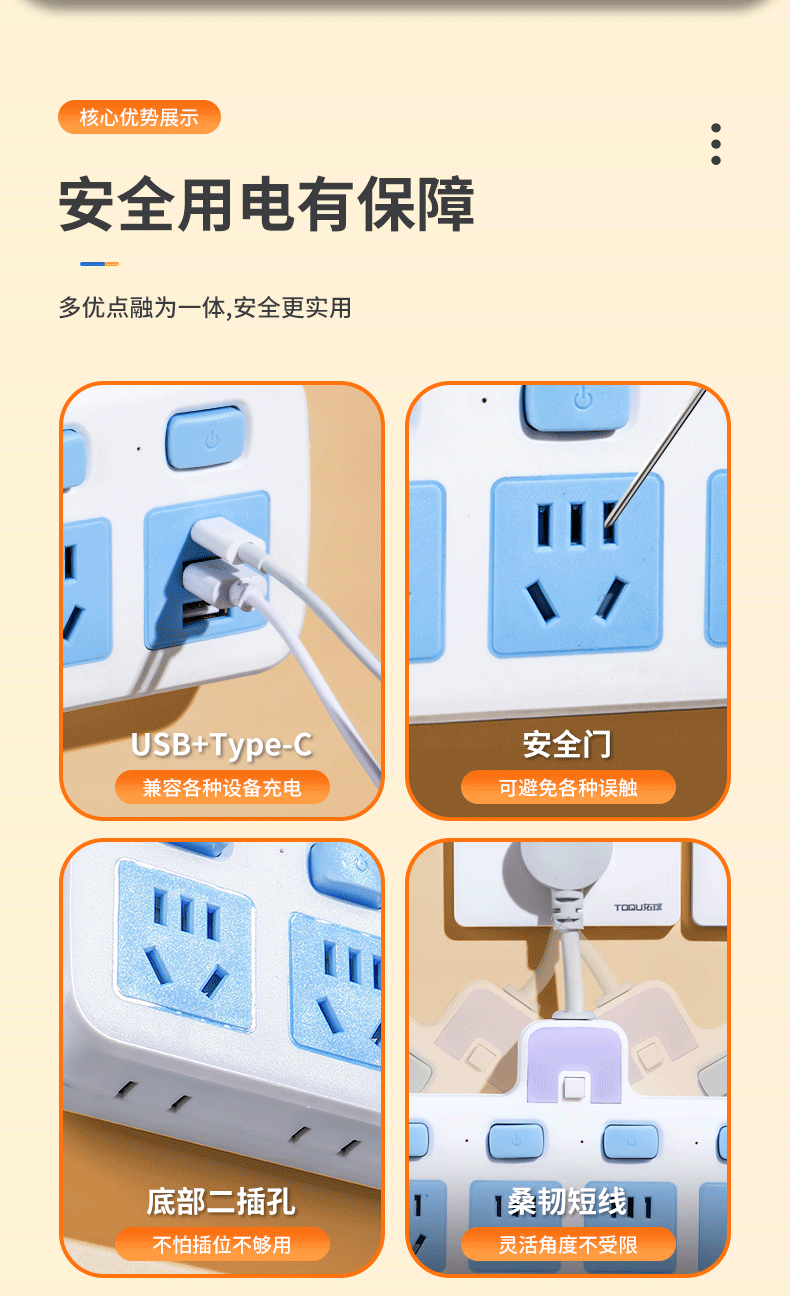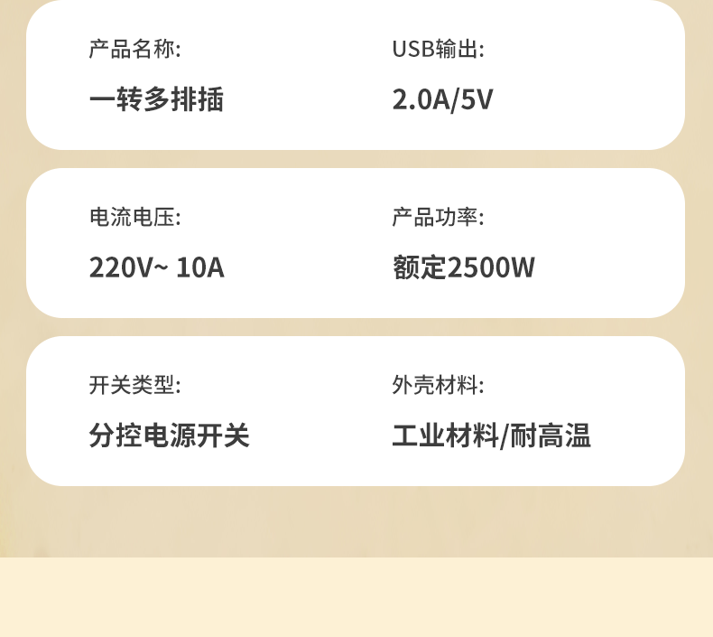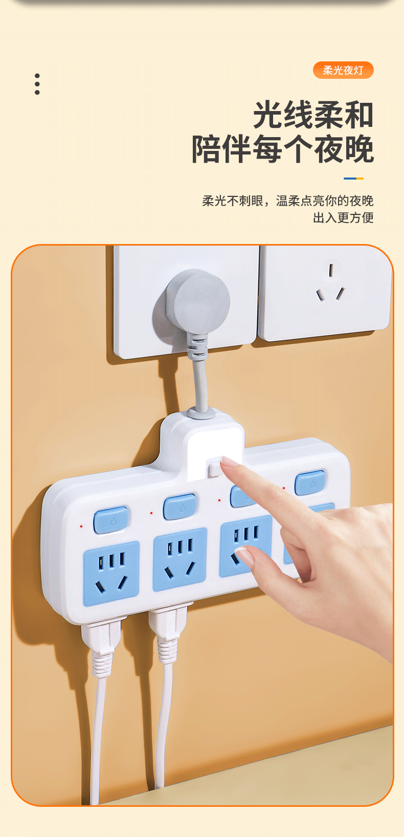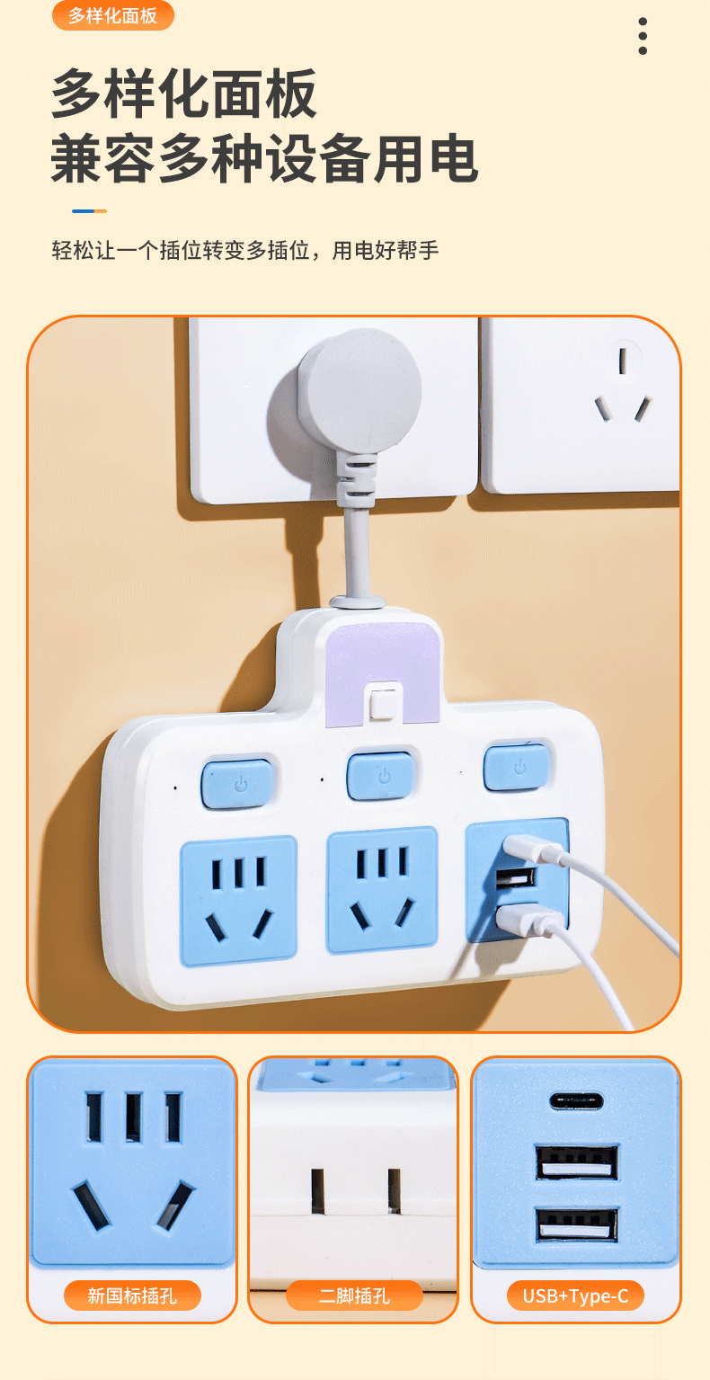 | Color Classification | Two Positions (2500W) with Bottom Plug,Three Positions (2500W) with Bottom Plug,Four Positions (2500W) with Bottom Plug,Five Positions (2500W) with Bottom Plug,Two Positions + Night Light (2500W) with Bottom Plug,Three Positions + Night Light (2500W) with Bottom Plug,Four-Outlet Power Strip with Night Light (2500W) and Grounded Plug,Five Positions + Night Light (2500W) with Bottom Plug,Two Positions + USB (2500W) with Bottom Plug,Three Positions + USB (2500W) with Bottom Plug,Four-Outlet Power Strip with USB (2500W) and Grounded Plug,Five Positions + USB (2500W) with Bottom Plug,Two-Way USB Night Light (2500W) with Bottom Outlet,Three-Outlet Power Strip with USB Ports and Night Light (2500W) - Includes Grounded Plug,Four-Outlet Power Strip with USB Ports and Night Light (2500W) - Includes Grounded Outlet,Five-Way USB Power Strip with Night Light (2500W) and Grounded Outlet,Two Positions [No Switch/Light/Usb] (2500W) |