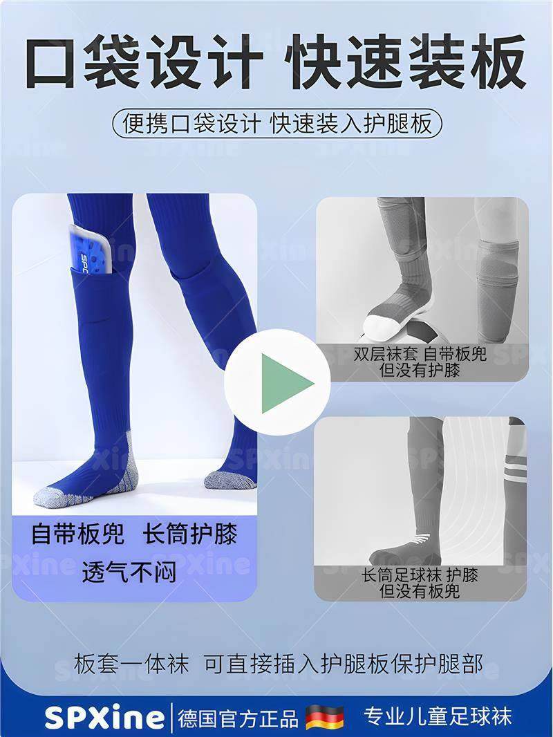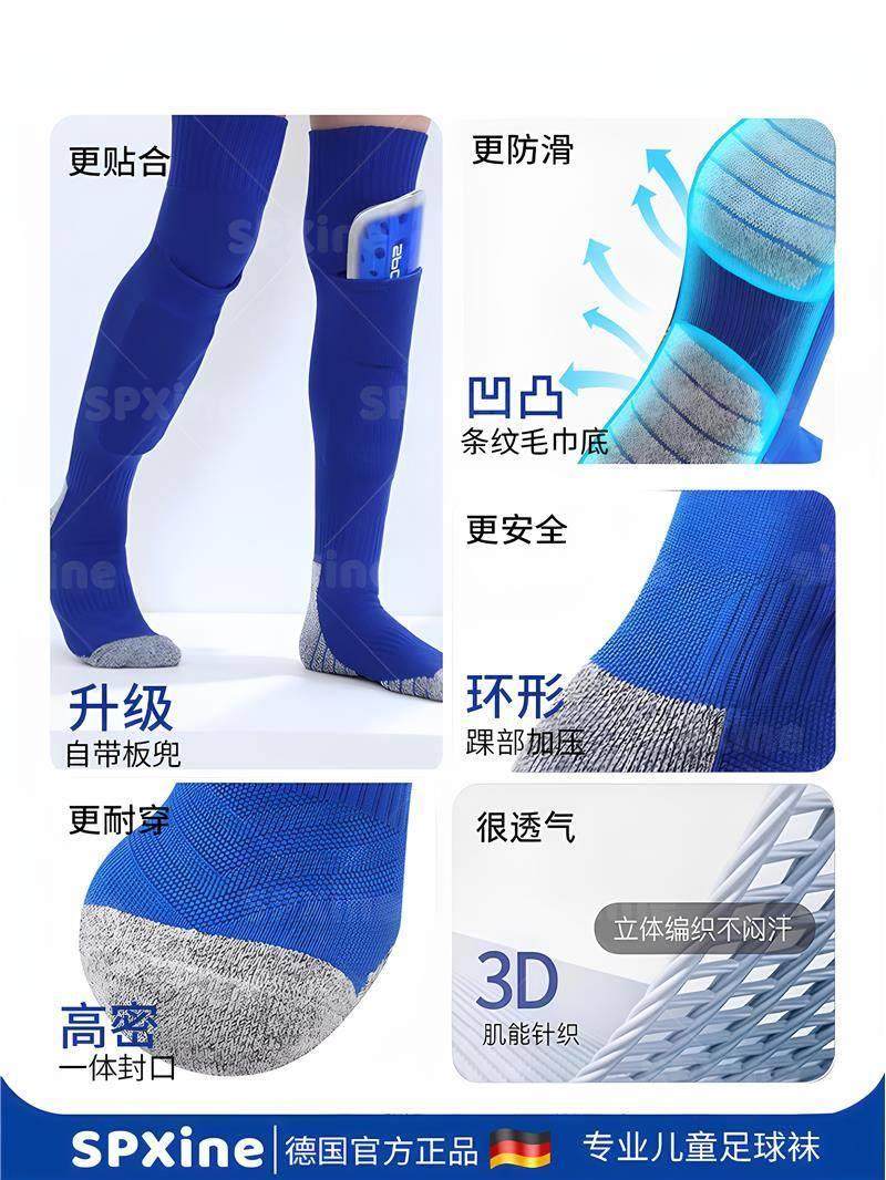 Children's Soccer Socks with Shin Guards, Boys' Long Tube Socks for Elementary School Students, Professional Competition Non-Slip Special Socks for Training, Over-The-Knee