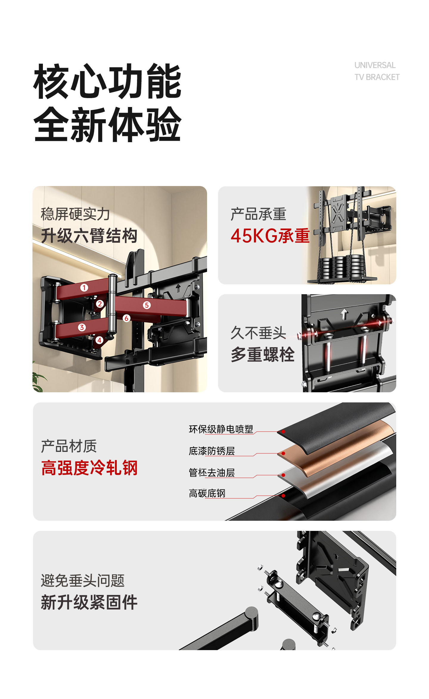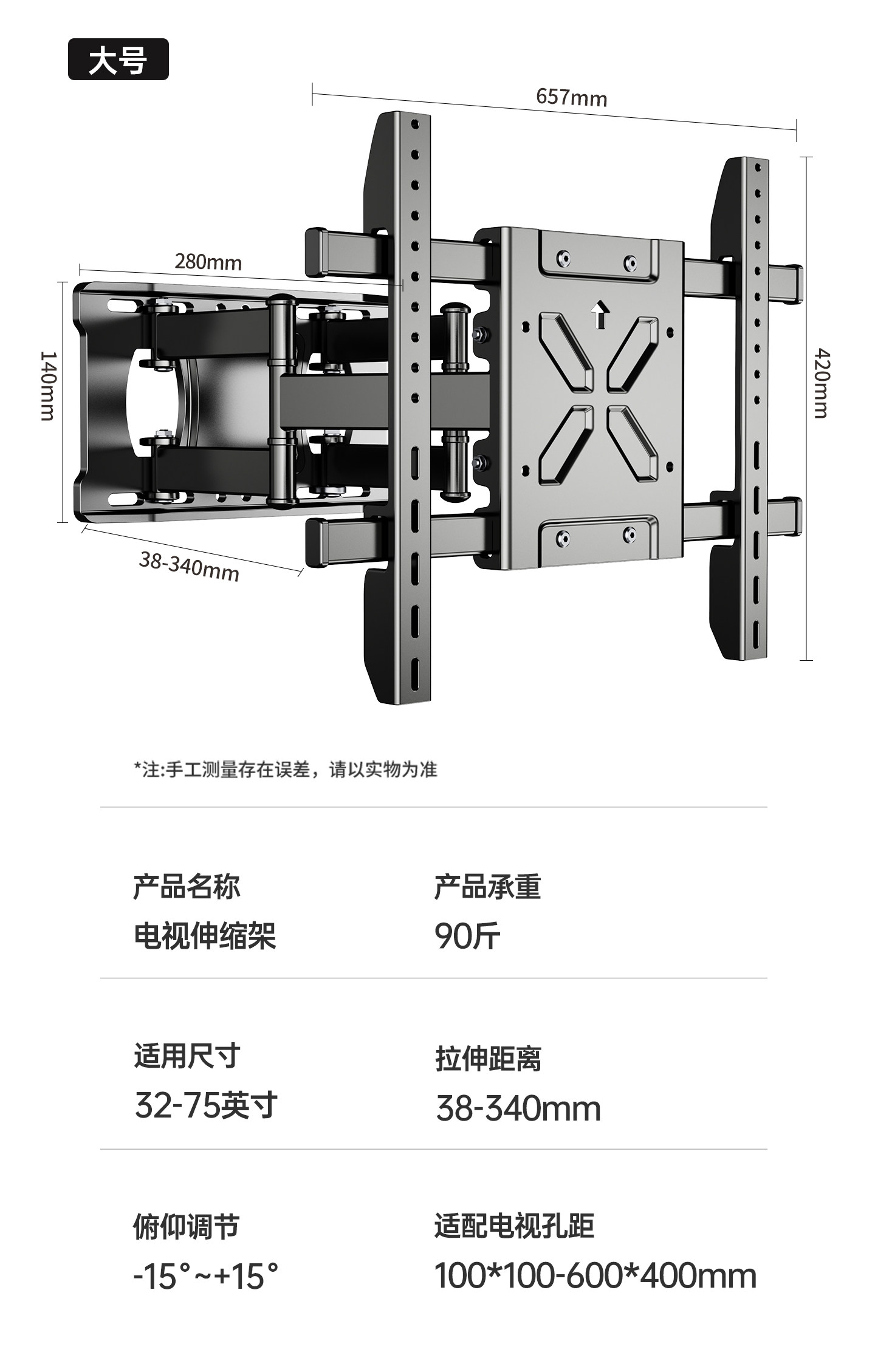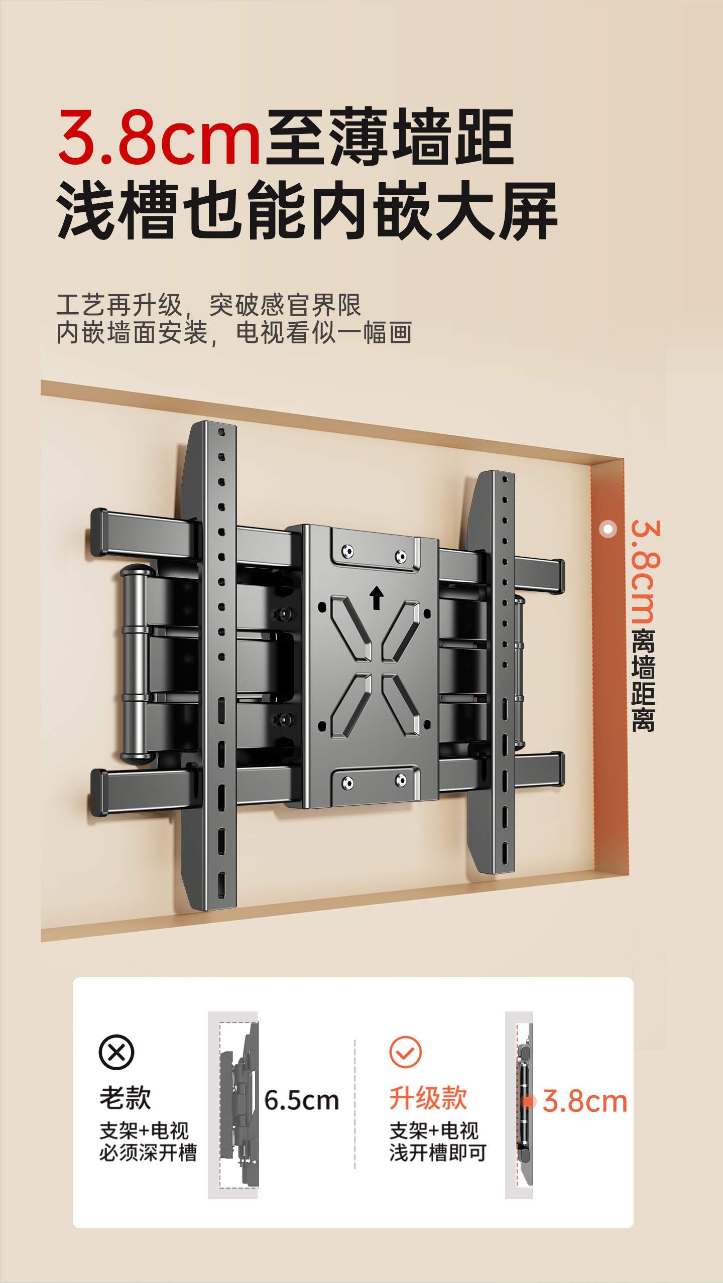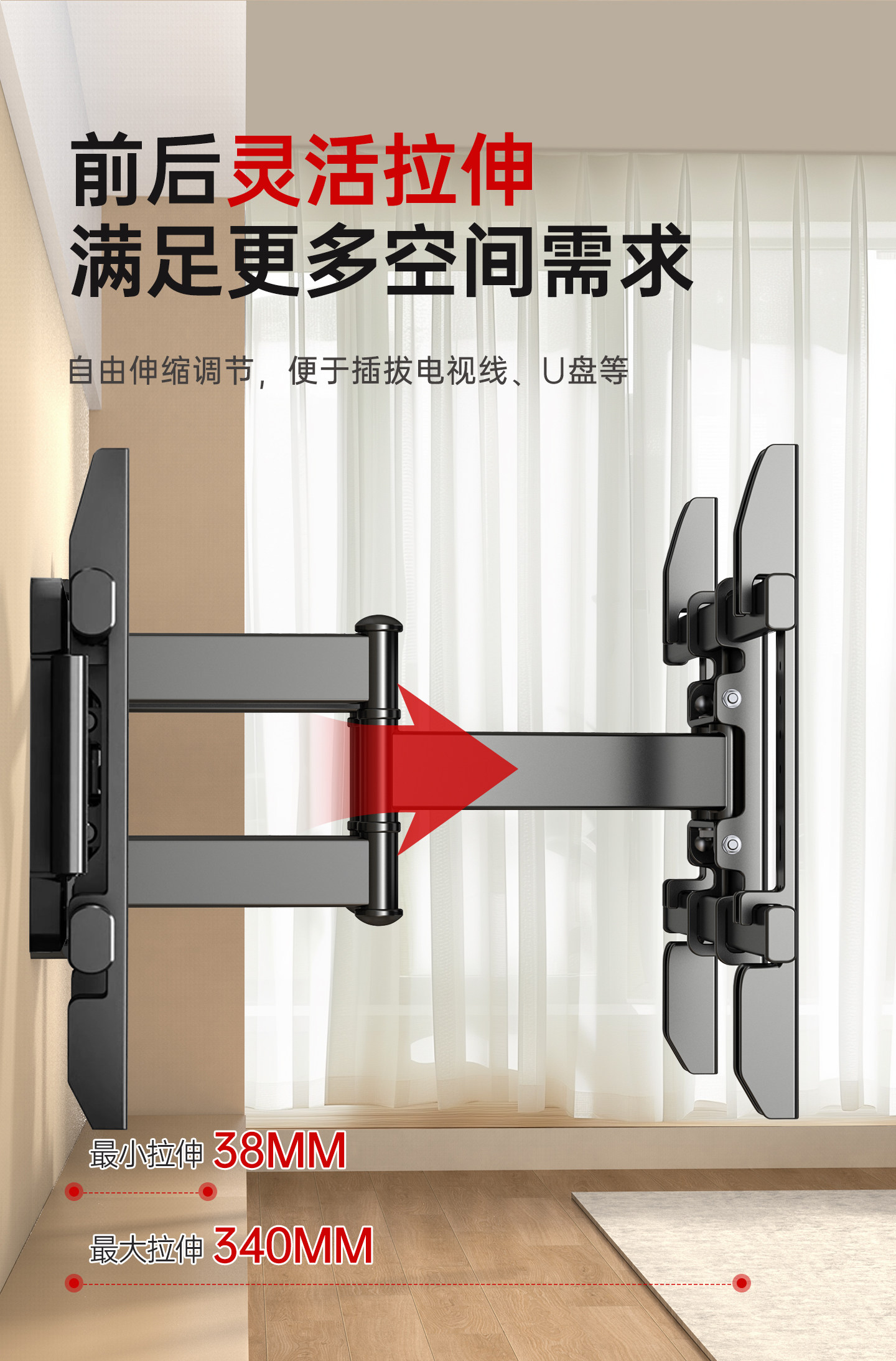 Ultra-Thin Tv Telescopic Mount Rotating Wall Bracket Suitable for Xiaomi Hisense Skyworth Tcl 657585100inch