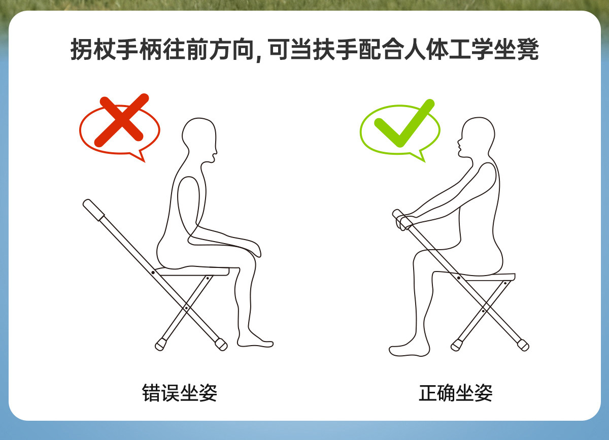 Elderly Walking Stick Stool, Cane, Crutch, Can Be Used for Sitting, Multifunctional, Non-Slip, Walking Aid, Lightweight Folding Stool, Portable Cane Chair