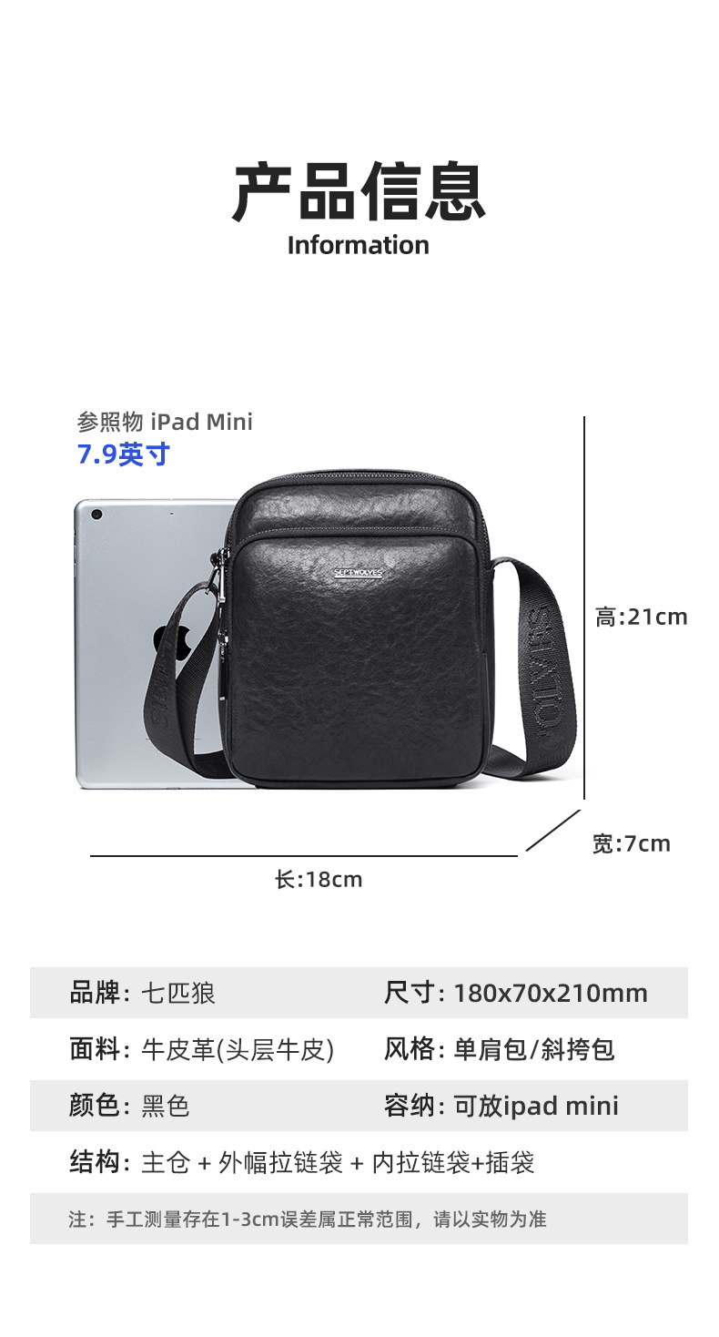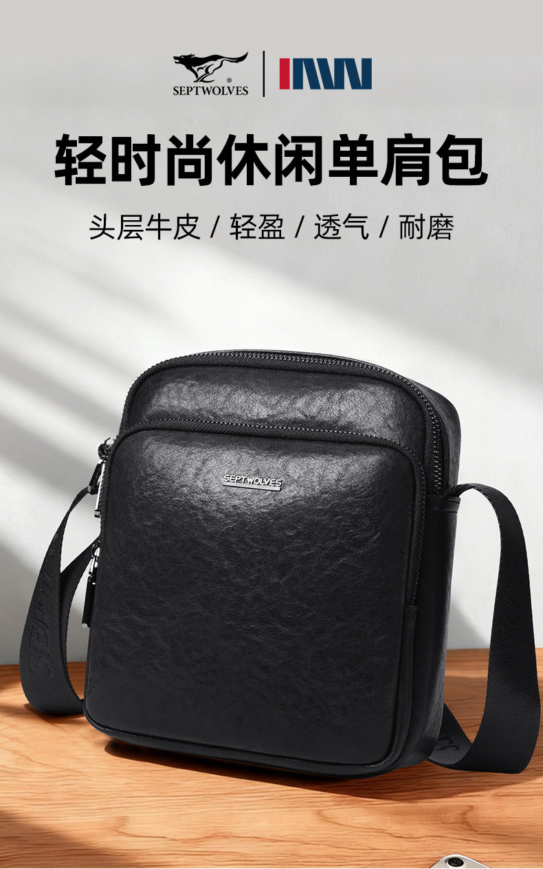 Septwolves Men's Shoulder Bag Genuine Leather 2025 New High-End Business Crossbody Bag Portable Small Backpack for Going Out