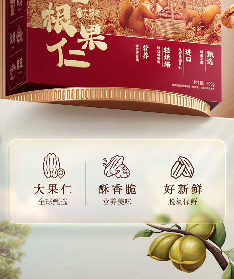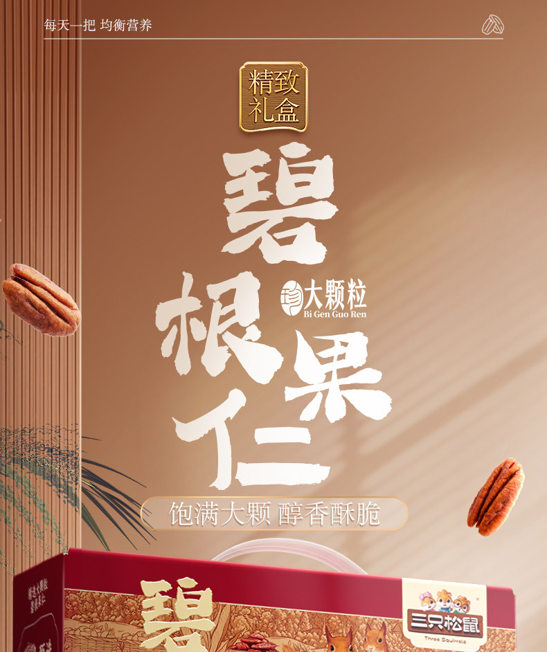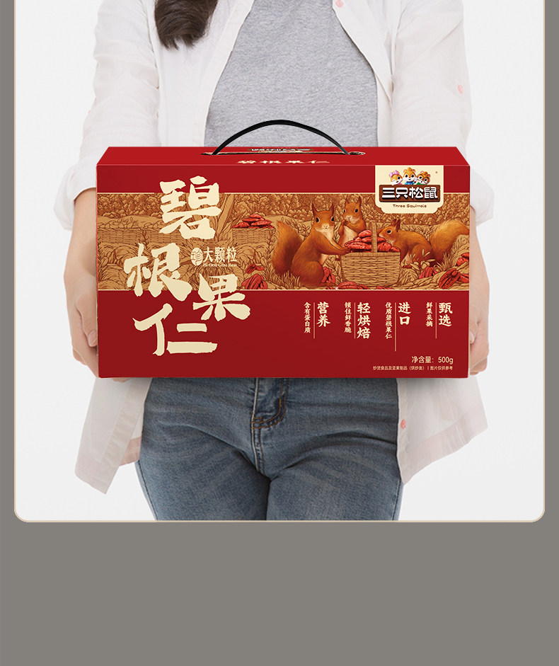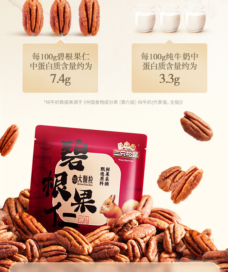 [Recommended by the Host] Three Squirrels Pecan Nuts 500g Box Large Kernels Rich Flavor Snack Healthy and Leisurely