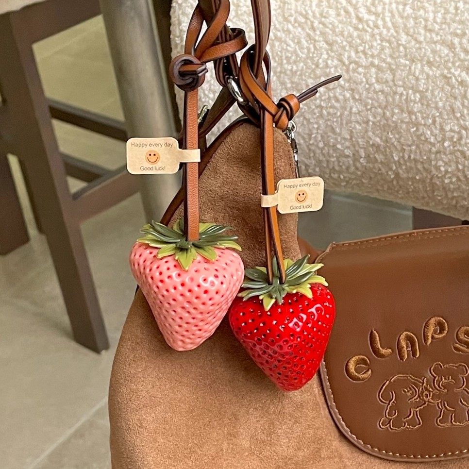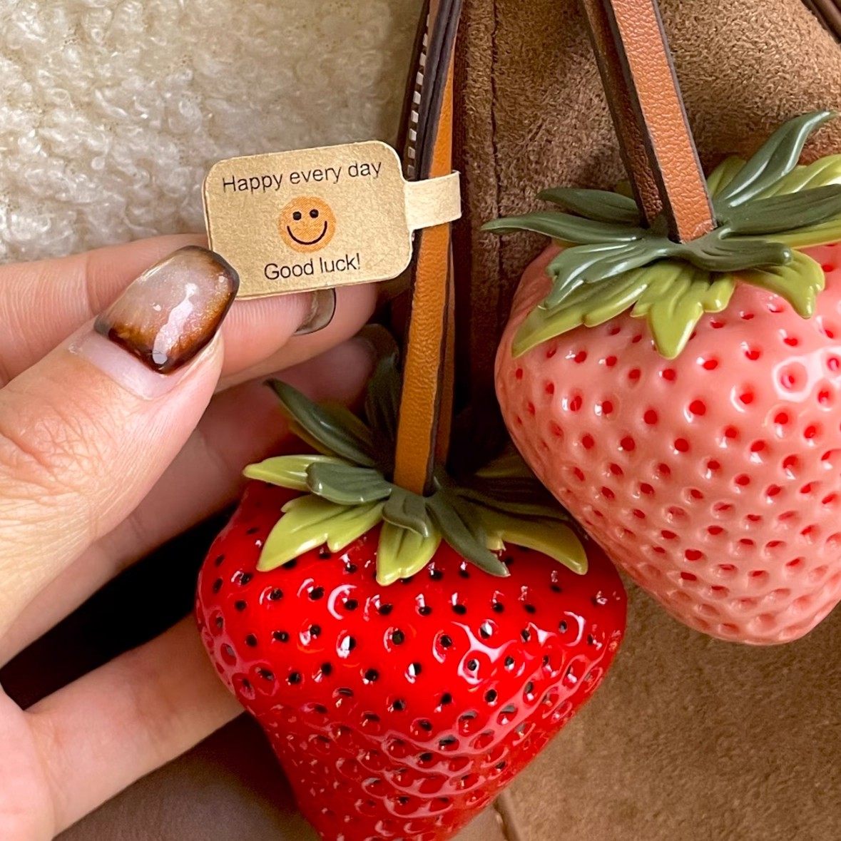 [A Big Strawberry]Resin 3D Sweet Car Keychain Decoration Gift for Couples and Best Friends