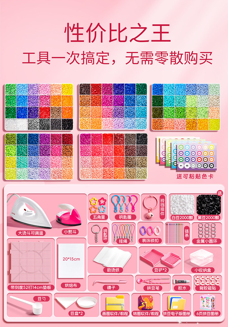 | Color Classification | 【Basic Starter Kit】24 Colors of Polymer Clay Beads + Black & White Beads,【Basic Starter Kit】48 Color Beads + Black & White Beads,【Basic Starter Kit】72 Color Beads + Black & White Beads,【Basic Starter Kit】96 Color Beads + Black & White Beads,【Basic Starter Kit】120 Color Beads + Black & White Beads,【Deluxe Tool Kit】24-Color Mosaic Beads + Black & White Beads,【Deluxe Tool Kit】48-Color Mosaic Beads + Black & White Beads,【Deluxe Tool Kit】72-Color Mosaic Beads + Black & White Beads,【Deluxe Tool Kit】96 Color Beads + Black & White Beads,【Deluxe Tool Kit】120 Color Beads + Black & White Beads,【Mini Iron + Basic Tool Kit】24 Color Patchwork Beads + Black & White Beads,【Mini Iron + Basic Tool Kit】48 Color Patchwork Beads + Black & White Beads,【Mini Iron + Basic Tool Kit】72 Color Patchwork Beads + Black & White Beads,【Mini Iron + Basic Tool Kit】96 Color Patchwork Beads + Black & White Beads,【Mini Iron + Basic Tool Kit】120 Color Patchwork Beads + Black & White Beads,【Mini Iron + Deluxe Tool Kit】24 Color Patchwork Beads + Black & White Beads,【Mini Iron + Deluxe Tool Kit】48 Color Patchwork Beads + Black & White Beads,【Mini Iron + Deluxe Tool Kit】72 Color Patchwork Beads + Black & White Beads,【Mini Iron + Deluxe Tool Kit】96 Color Bead Set + Black & White Beads,【Mini Iron + Deluxe Tool Kit】120 Color Beads + Black & White Beads,【Large Iron + Basic Tool Kit】24 Color Patchwork Beads + Black & White Beads,【Large Iron + Basic Tool Kit】48 Color Patchwork Beads + Black & White Beads,【Large Iron + Basic Tool Kit】72 Color Patchwork Beads + Black & White Beads,【Large Iron + Basic Tool Kit】96 Color Bead Set + Black & White Beads,【Large Iron + Basic Tool Kit】120 Color Patchwork Beads + Black & White Beads,【Large Iron + Deluxe Tool Kit】24 Color Patchwork Beads + Black & White Beads,【Large Iron + Deluxe Tool Kit】48 Color Bead Mix + Black & White Beads,【Large Iron + Deluxe Tool Kit】72 Color Patchwork Beads + Black & White Beads,【Large Iron + Deluxe Tool Kit】96 Color Bead Set + Black & White Beads,【Large Iron + Deluxe Tool Kit】120 Color Patchwork Beads + Black & White Beads,Storage Box [Upgraded Bottled + Small Iron + Basic Tool Kit] 24 Colors of Spelled Beans + Black and White Beans,Storage Box [Upgraded Bottled + Small Iron + Basic Tool Kit] 48 Colors of Spelled Beans + Black and White Beans,Storage Box [Upgraded Bottled + Small Iron + Basic Tool Kit] 72 Colors of Spelled Beans + Black and White Beans,Storage Box [Upgraded Bottled + Small Iron + Basic Tool Kit] 96 Color Spelled Beans + Black and White Beans,Storage Box [Upgraded Bottled + Small Iron + Basic Tool Kit] 120 Colors of Spelled Beans + Black and White Beans,Storage Box [Upgraded Bottled + Large Iron + Luxury Tool Kit] 24 Colors of Spelled Beans + Black and White Beans,Storage Box [Upgraded Bottled + Large Iron + Luxury Tool Kit] 48 Colors of Spelled Beans + Black and White Beans,Storage Box [Upgraded Bottled + Large Iron + Luxury Tool Kit] 72 Colors of Spelled Beans + Black and White Beans,Storage Box [Upgraded Bottled + Large Iron + Luxury Tool Kit] 96 Color Spelled Beans + Black and White Beans,Storage Box [Upgraded Bottled + Large Iron + Luxury Tool Kit] 120 Colors of Spelled Beans + Black and White Beans |