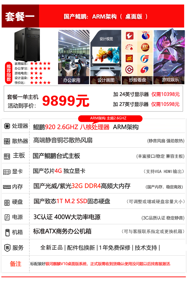 | Color Classification | 1. Domestic Arm Kunpeng 920 Eight-Core Desktop Kirin System,2. Domestic Arm Kunpeng 920*2 64 Cores,Three Domestic Arm Kunpeng 920*2 96 Cores,4. Domestic Arm Kunpeng 920*2 128 Cores |