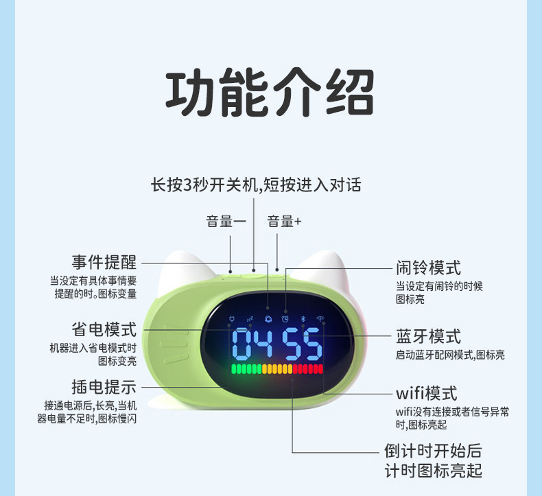 Poppy Bear Alarm Clock Ai Intelligent Robot Alarm Clock Voice Dialogue Children's Early Education English Learning Machine Educational Toy
